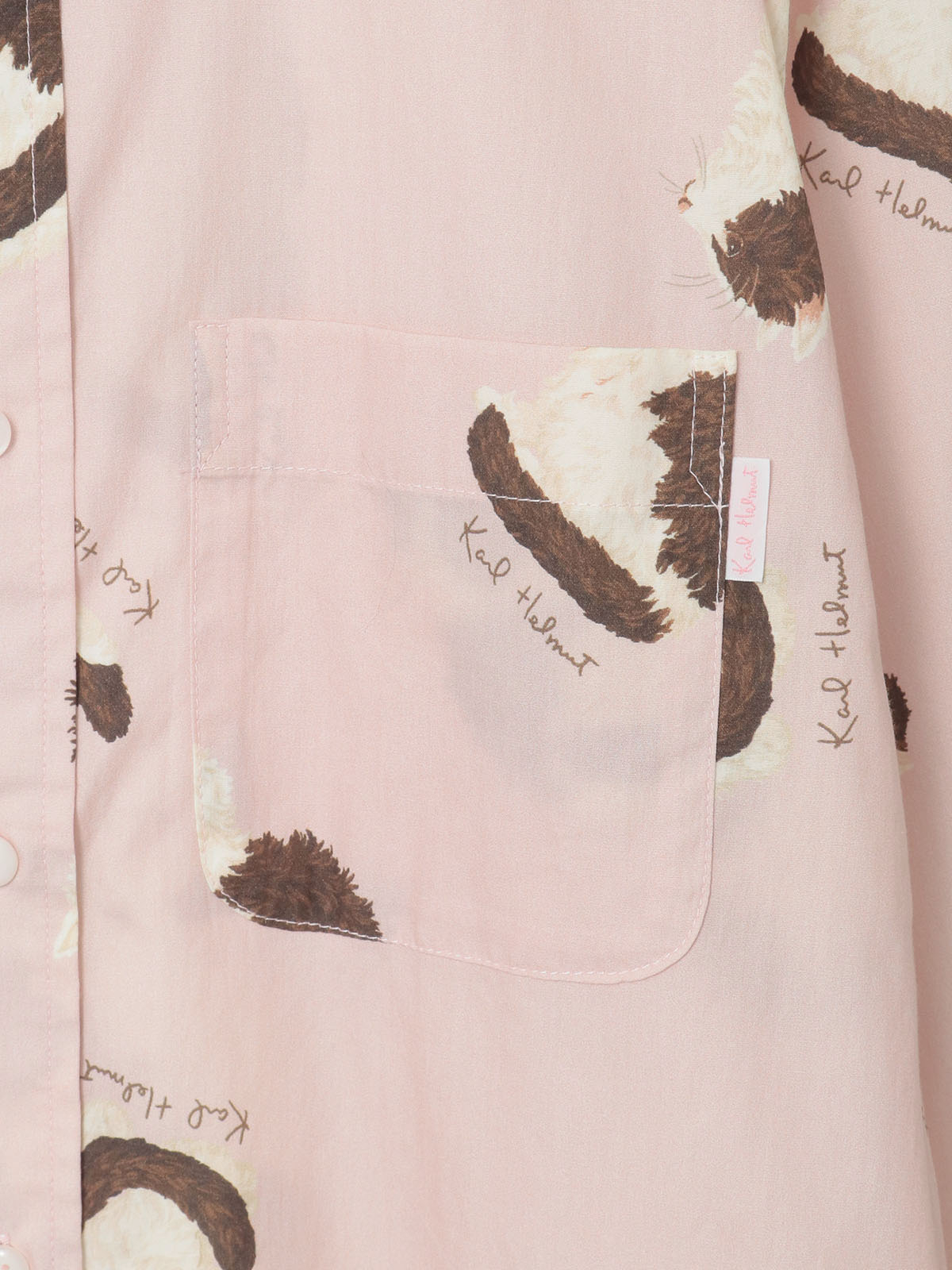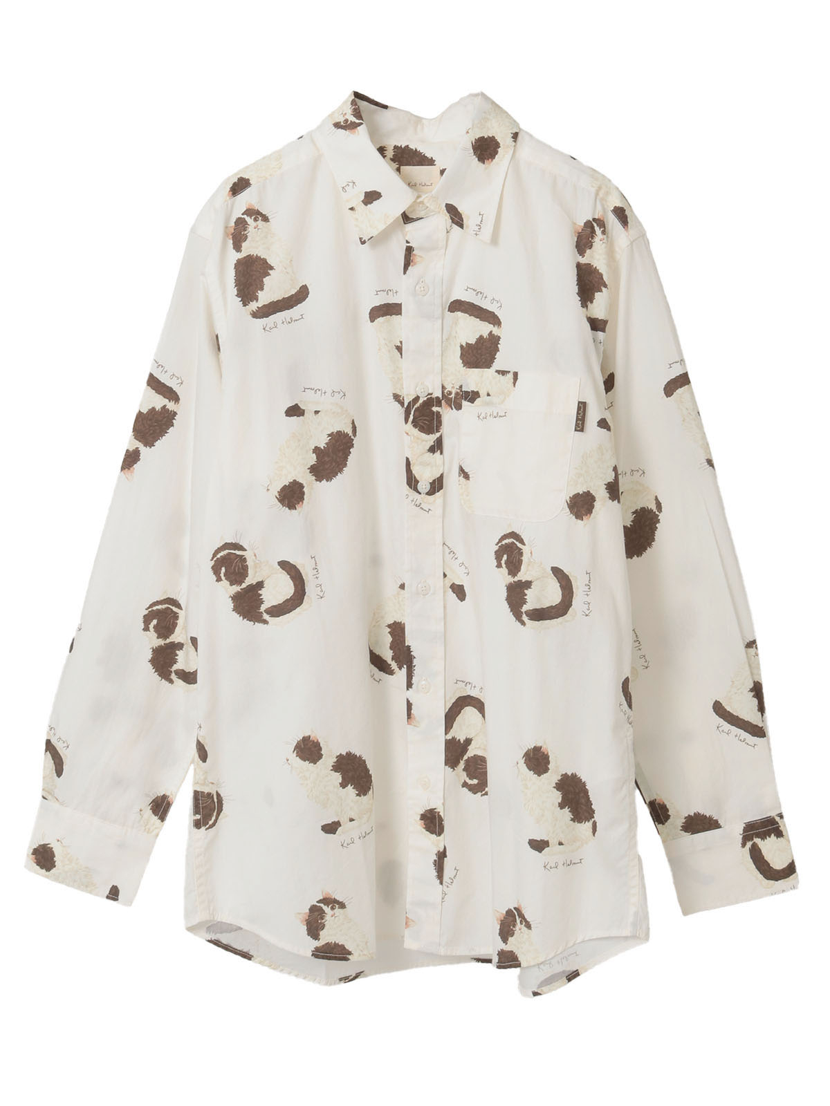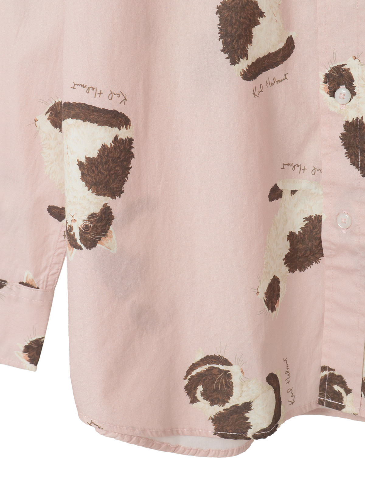 ふわふわの毛並みとあどけない表情がなんとも愛くるしい猫をモチーフにしたシャツブラウス。