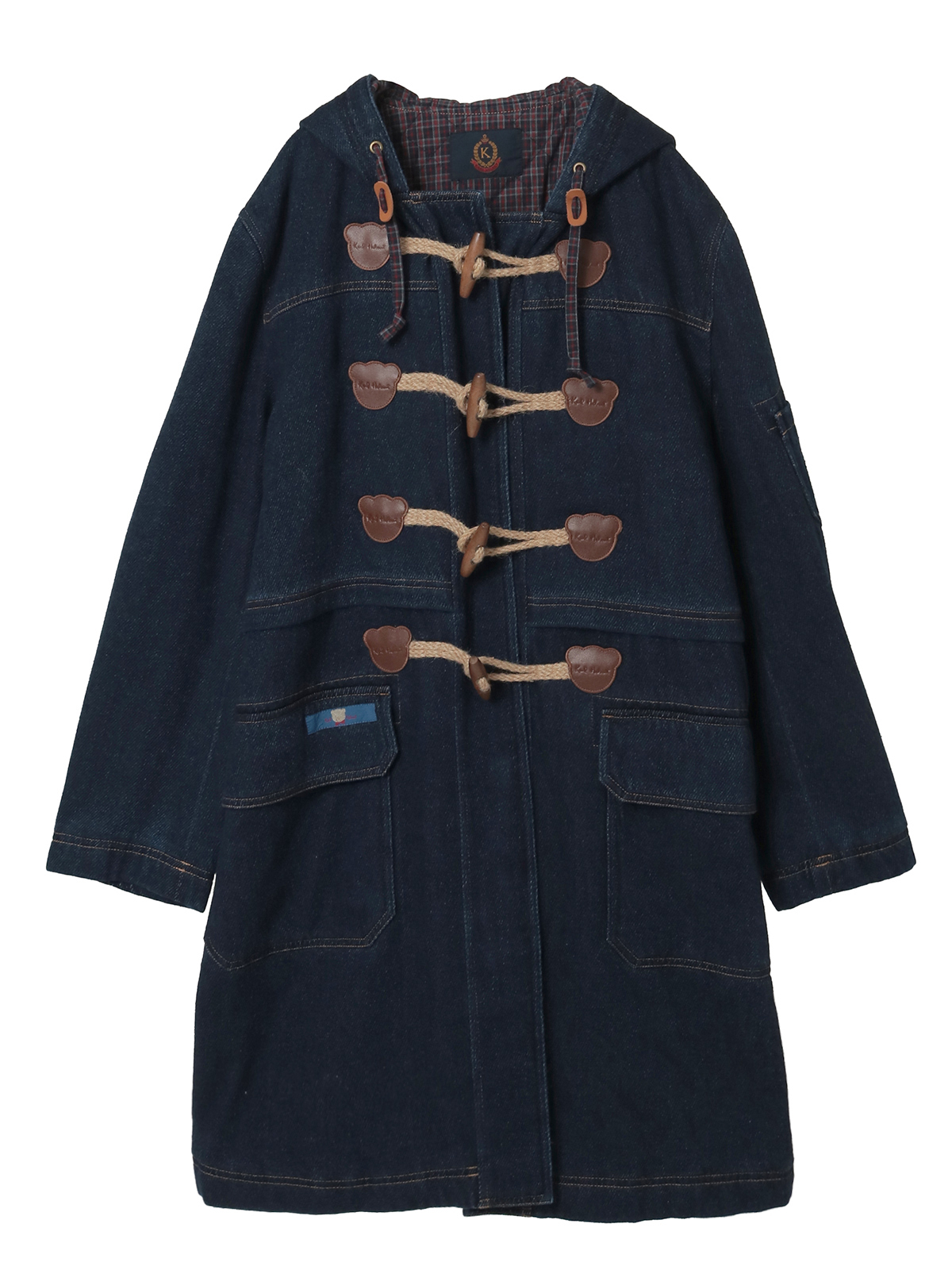 オリジナルで作製したクマシルエットを形取った革パッチがポイントのダッフルコート。