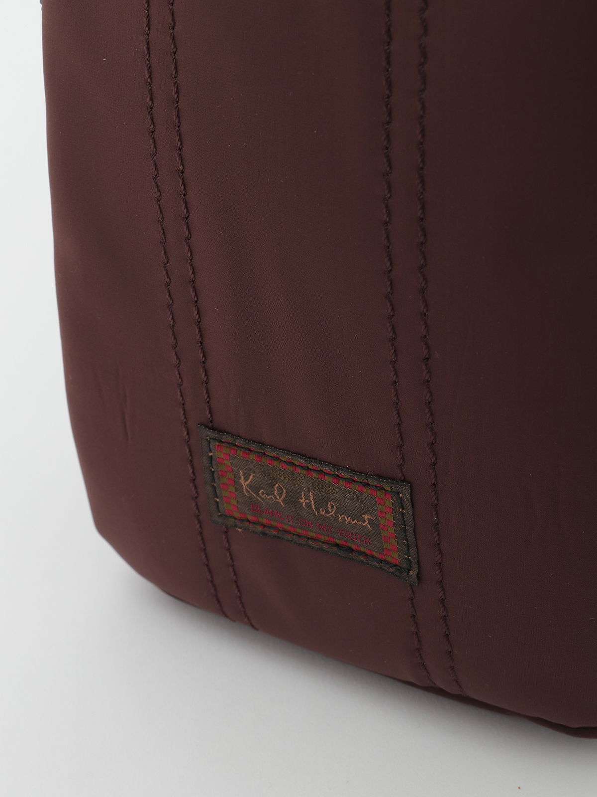 薄くて耐久性の高いナイロンポリウレタン地を使用。フロントにはロゴプリントと外ポケットにはロゴネームを添えてポイント使いに。
