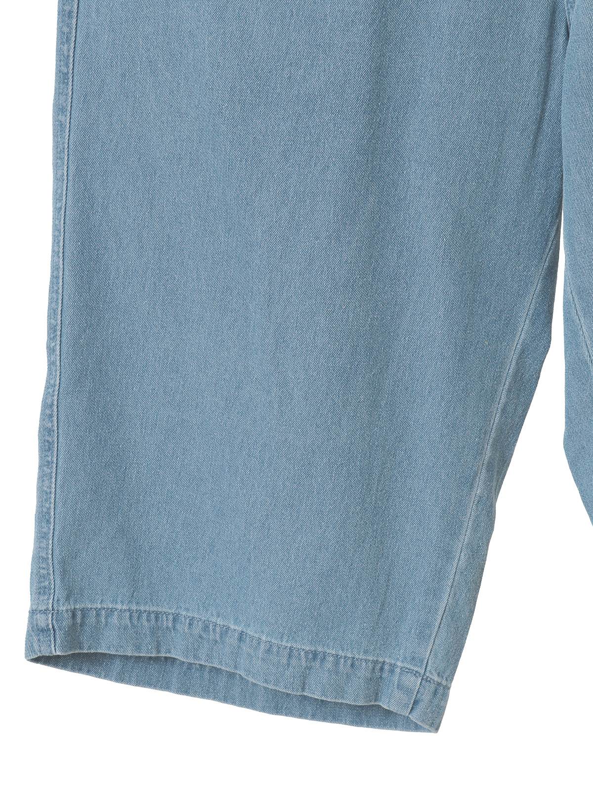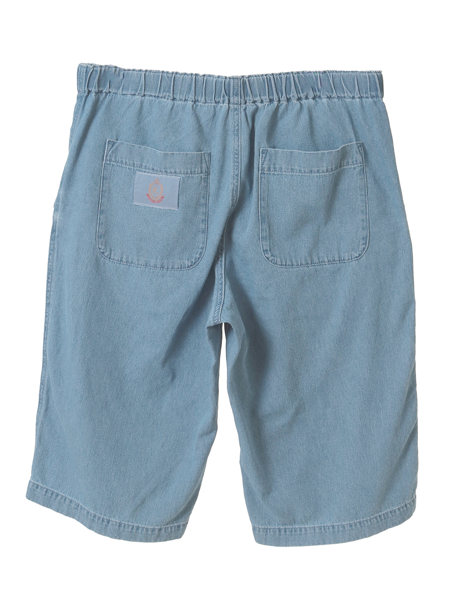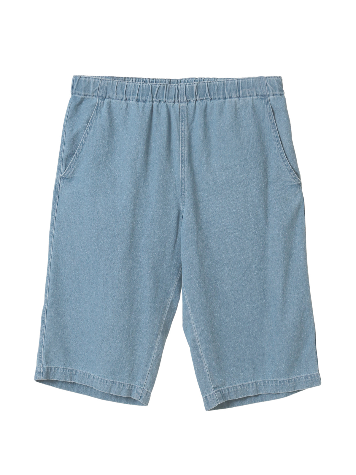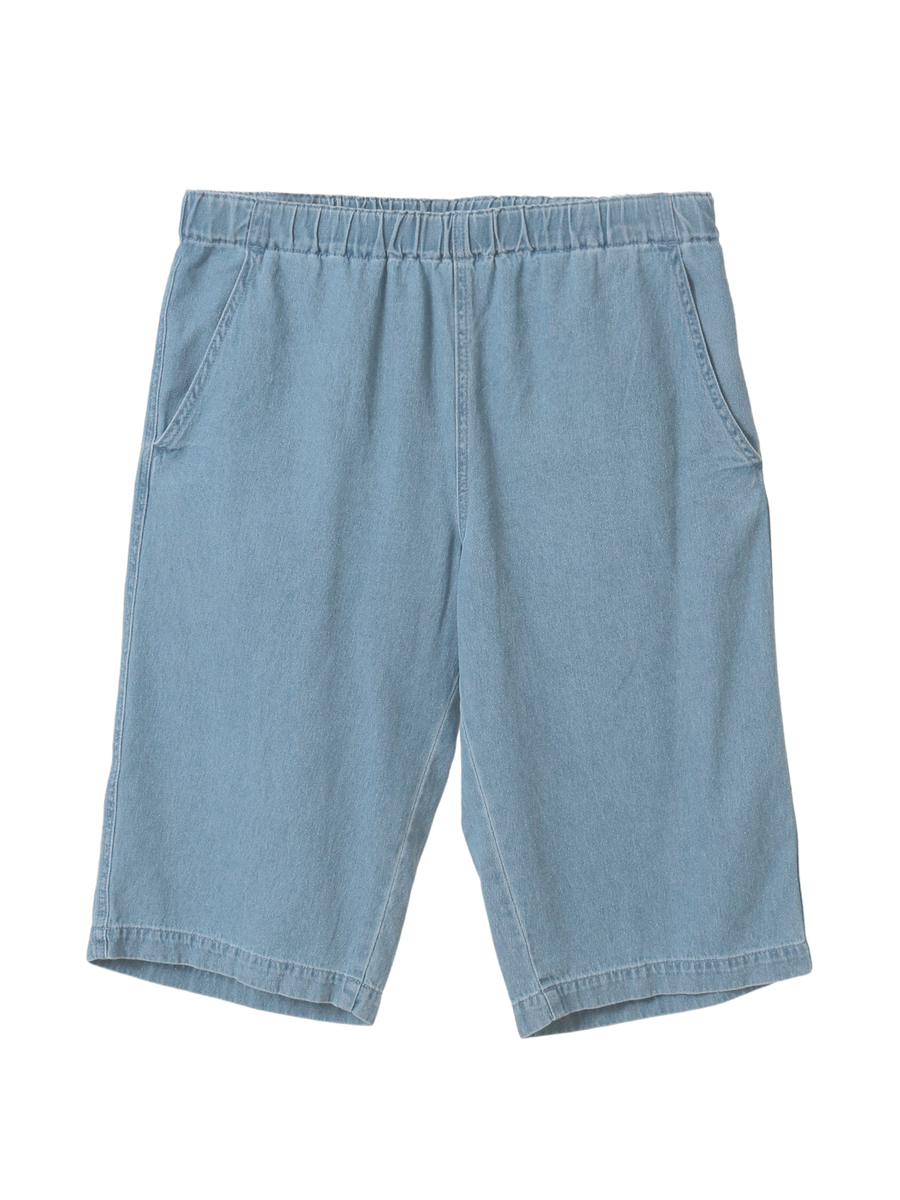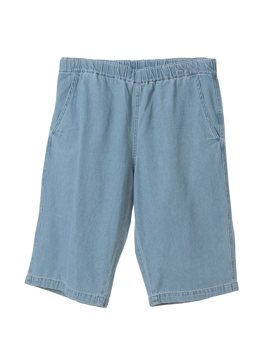 デニムは6オンスの薄手タイプなので汗ばむシーズンでも履きやすいタイプに。ウエスト部分は総ゴムなのでラクチンな履き心地です。
