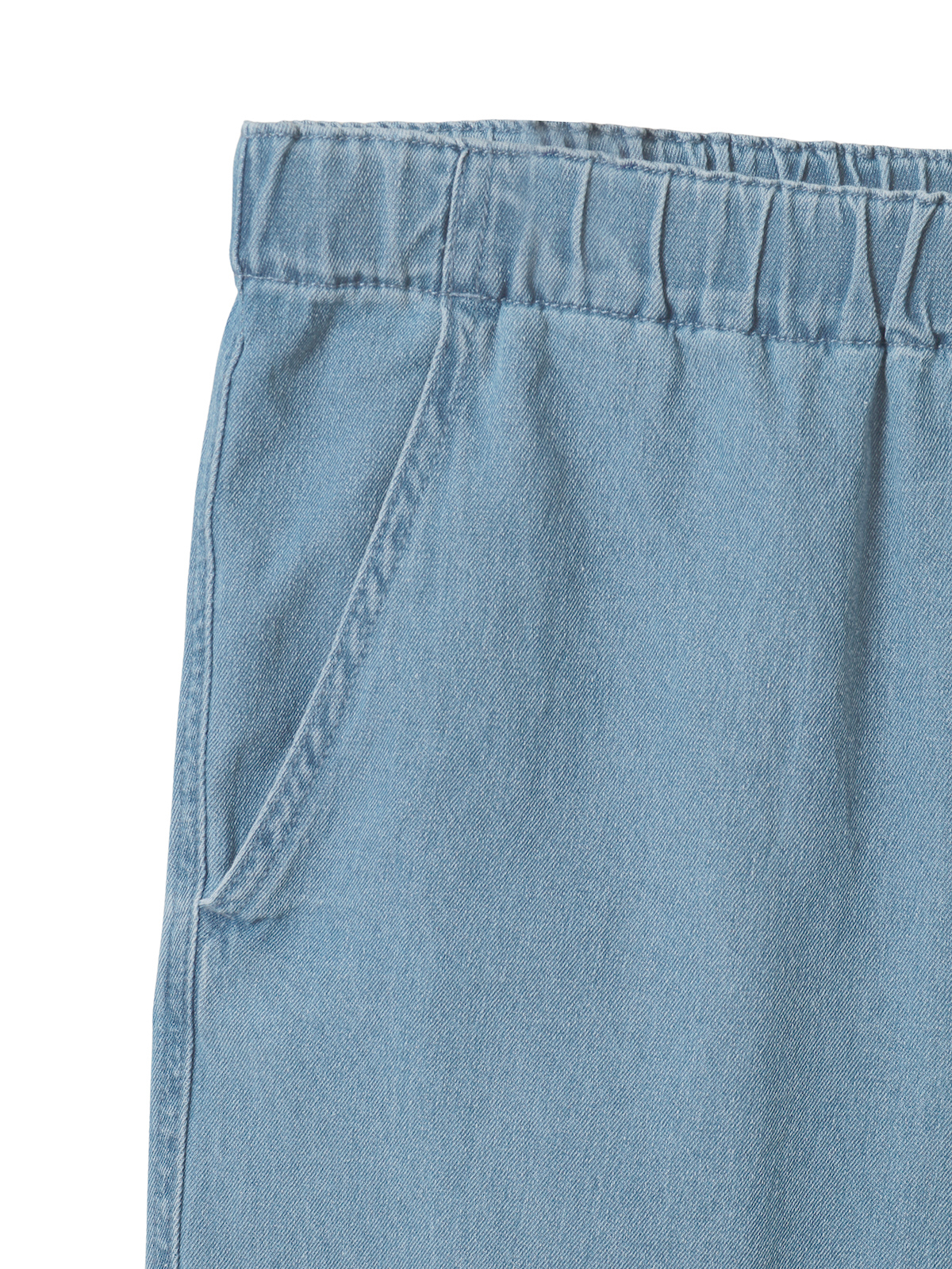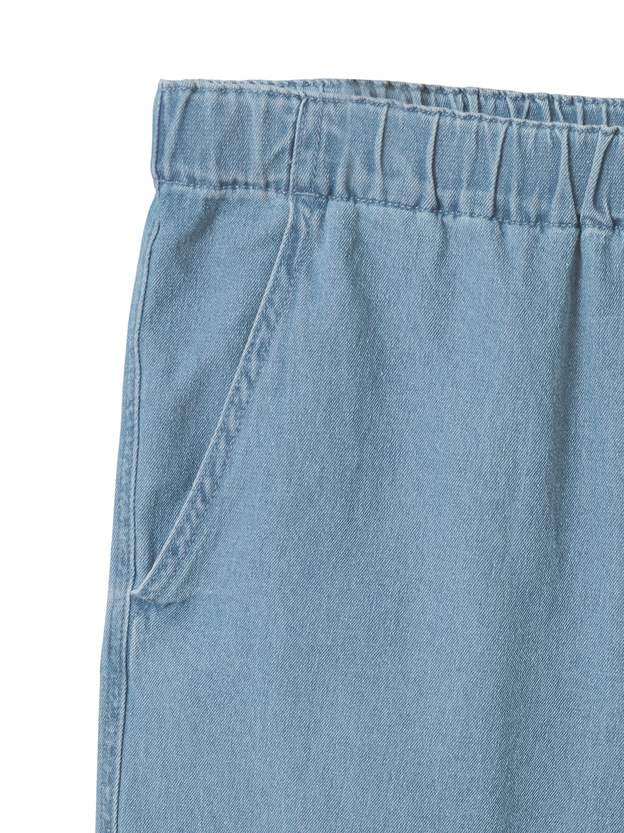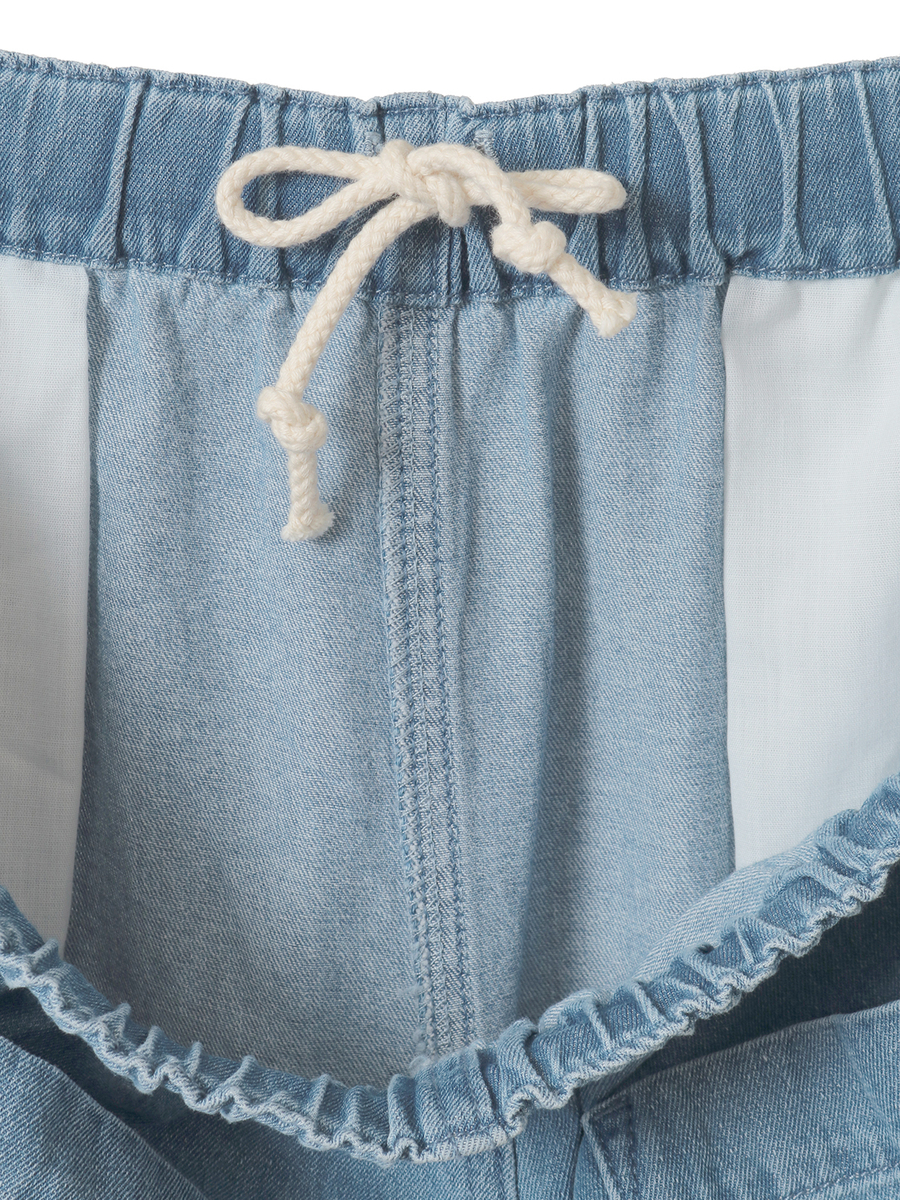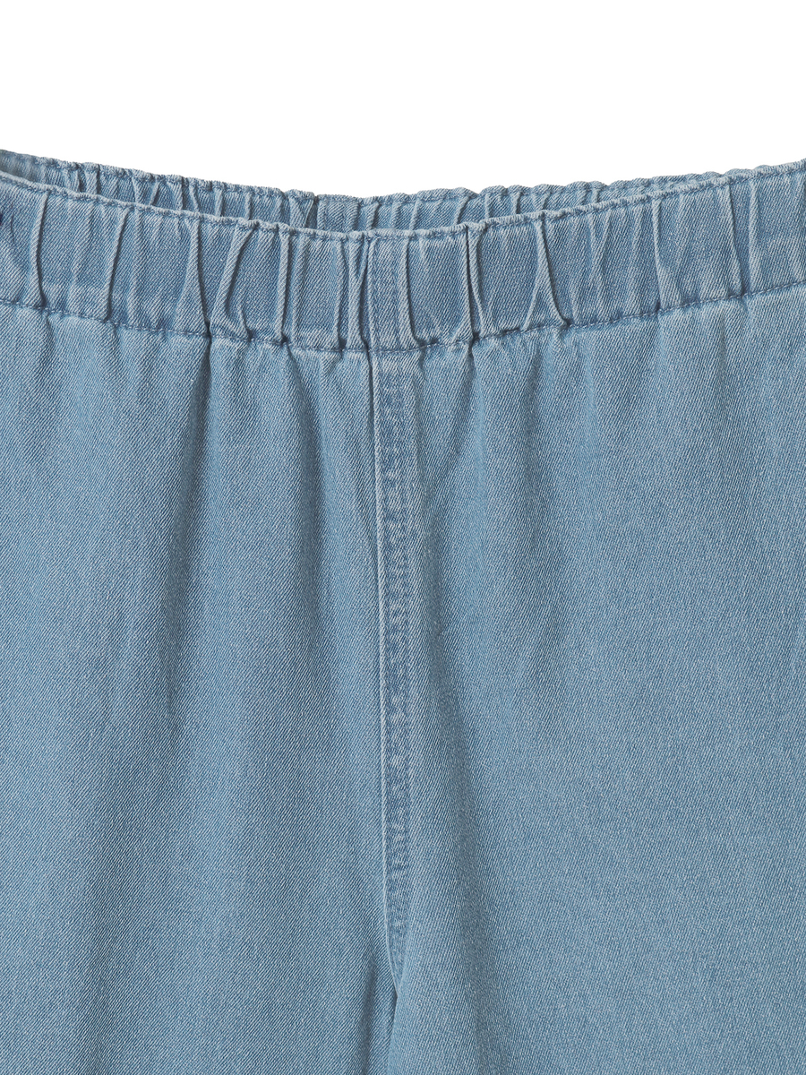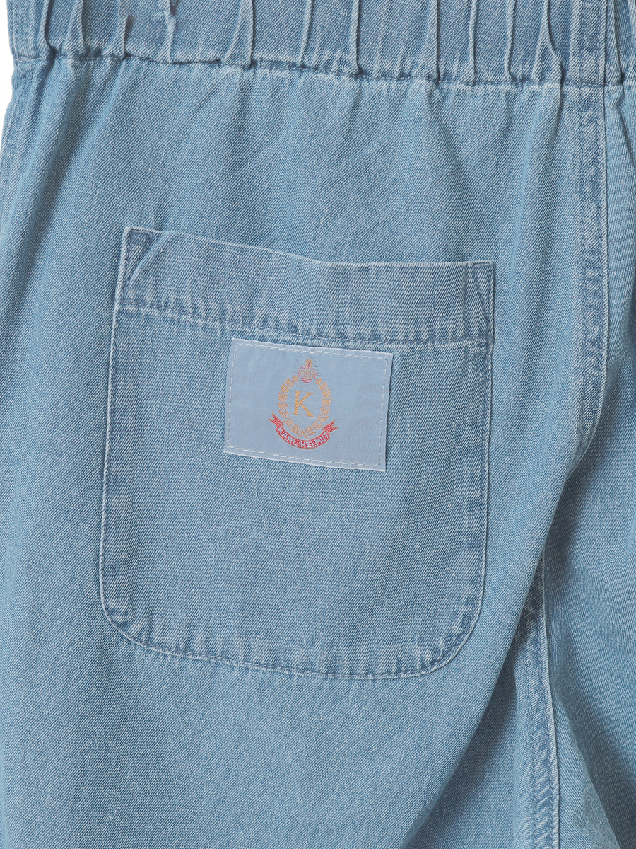 デニムは6オンスの薄手タイプなので汗ばむシーズンでも履きやすいタイプに。ウエスト部分は総ゴムなのでラクチンな履き心地です。