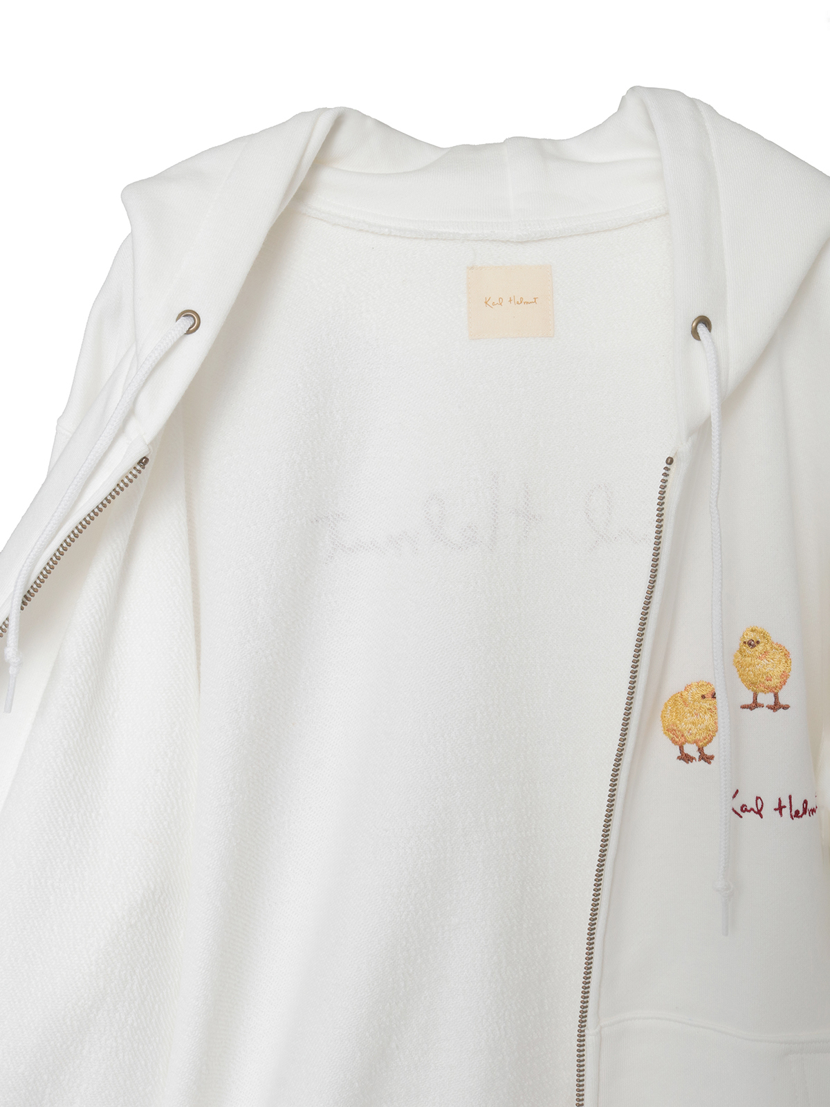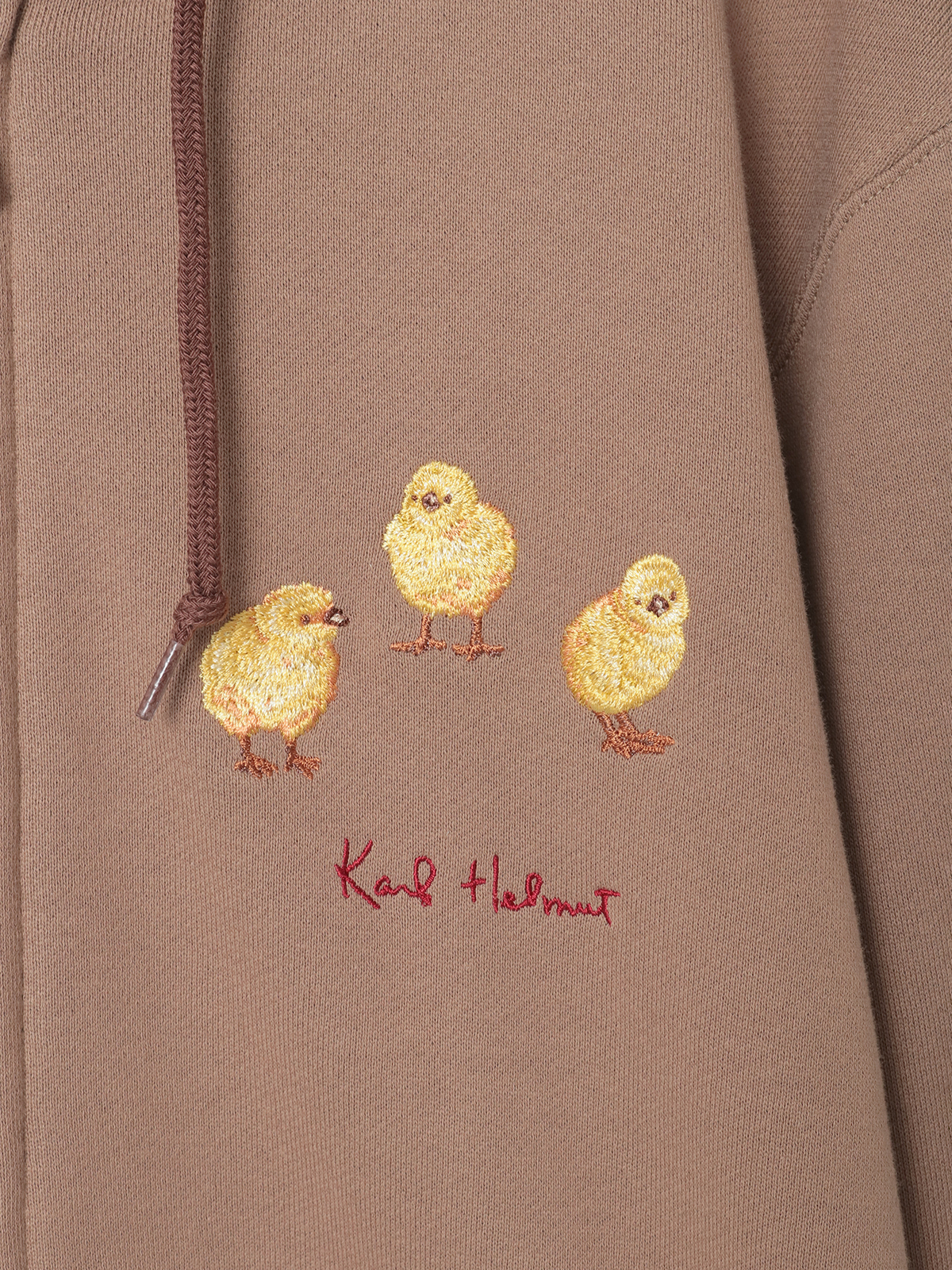 ころんと丸みを帯びたシルエットがなんとも可愛らしい”ひよこ”をモチーフに、3つ並べて胸もとにワンポイント刺繍を施した長袖パーカー。