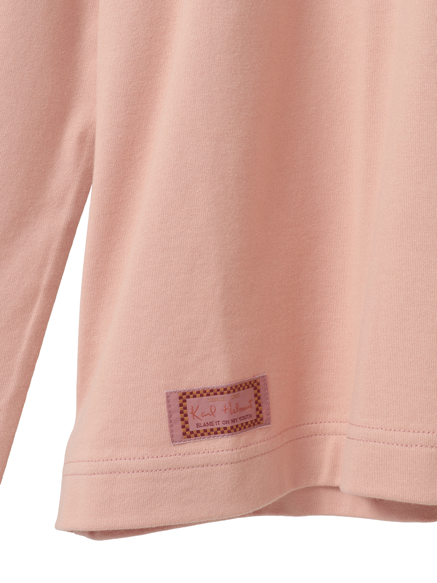 ハート型のアートのうえにはロゴ刺繍も添えて。さらに右サイドにはロゴネームもあしらってアクセントに。
