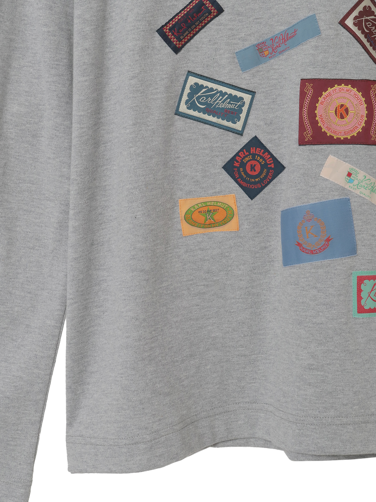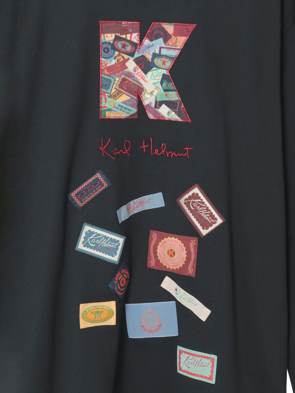 フロントに、Kロゴアップリケとさらにカールヘルムらしいネームワッペンをいっぱいカラフルに散りばめたデザインがインパクトたっぷりな長袖カットソー。