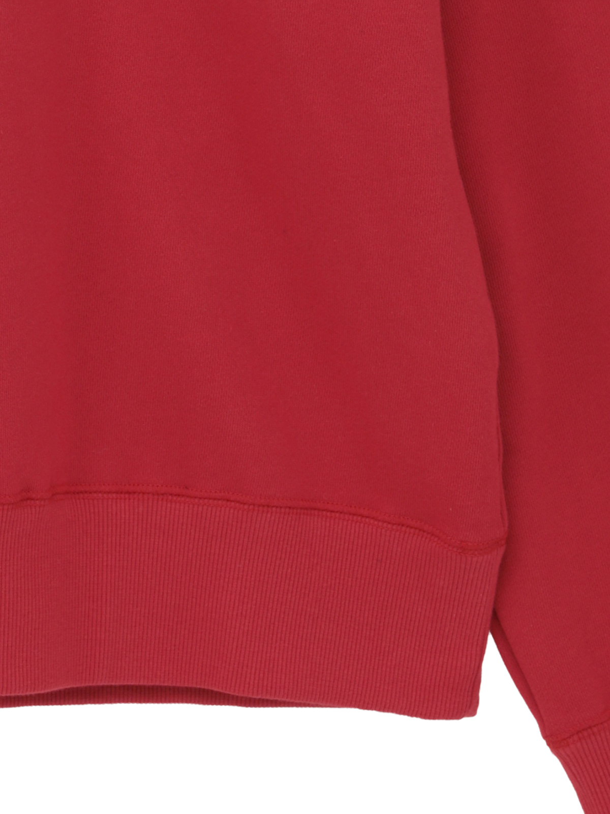 表面にはやや細目の30番手の糸を、裏面の裏毛部分には10番手の太い糸を使用しており、 裏毛部分も綺麗に整っており天然素材コットン100%の暖かさを感じられるとても着やすい素材感で、通年通してお楽しみいただけます。