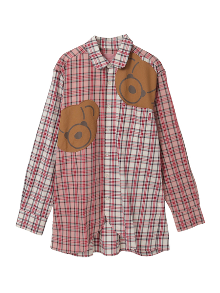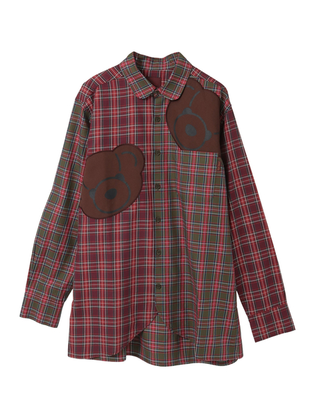 • くまアップリケ付きオリジナルタータンチェックシャツブラウス