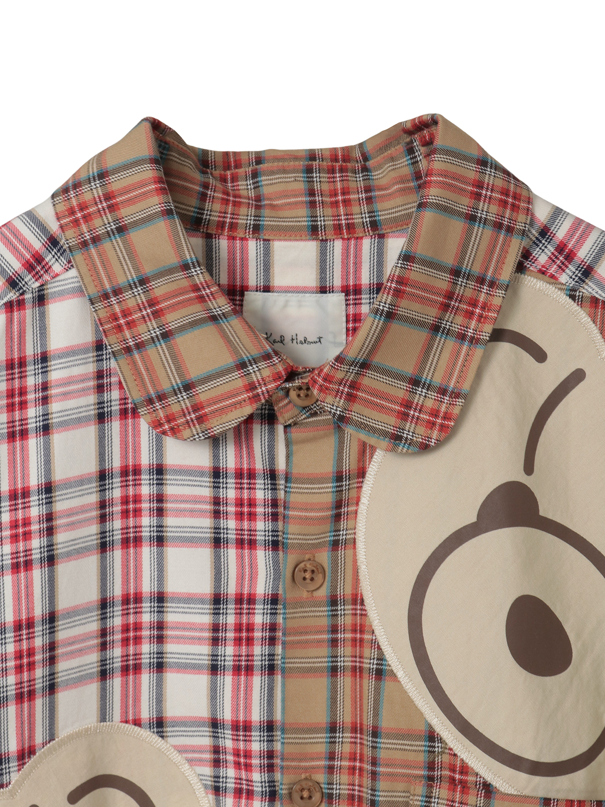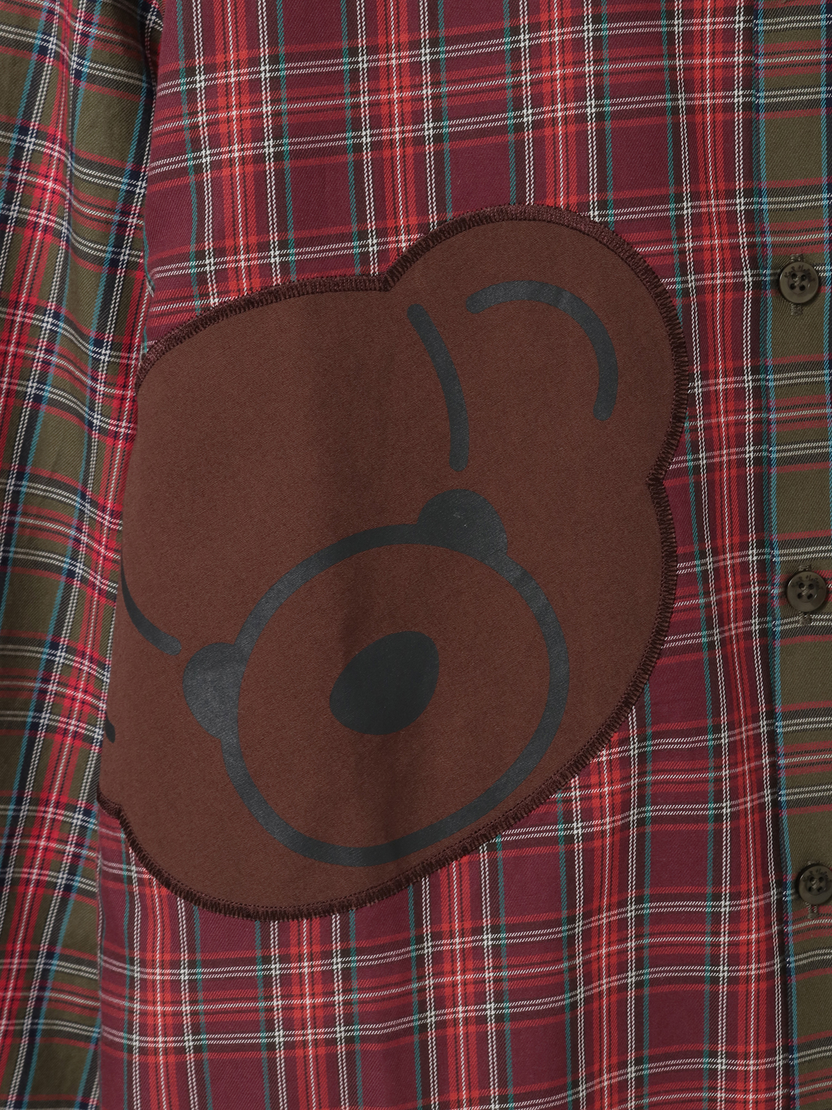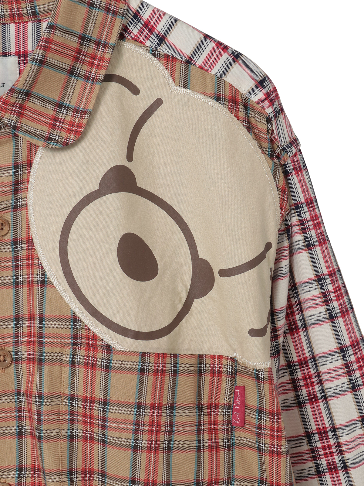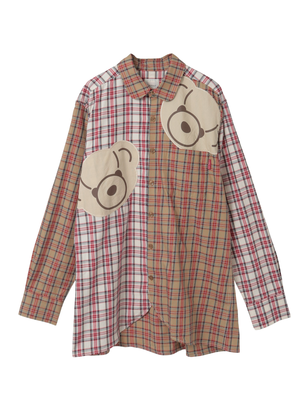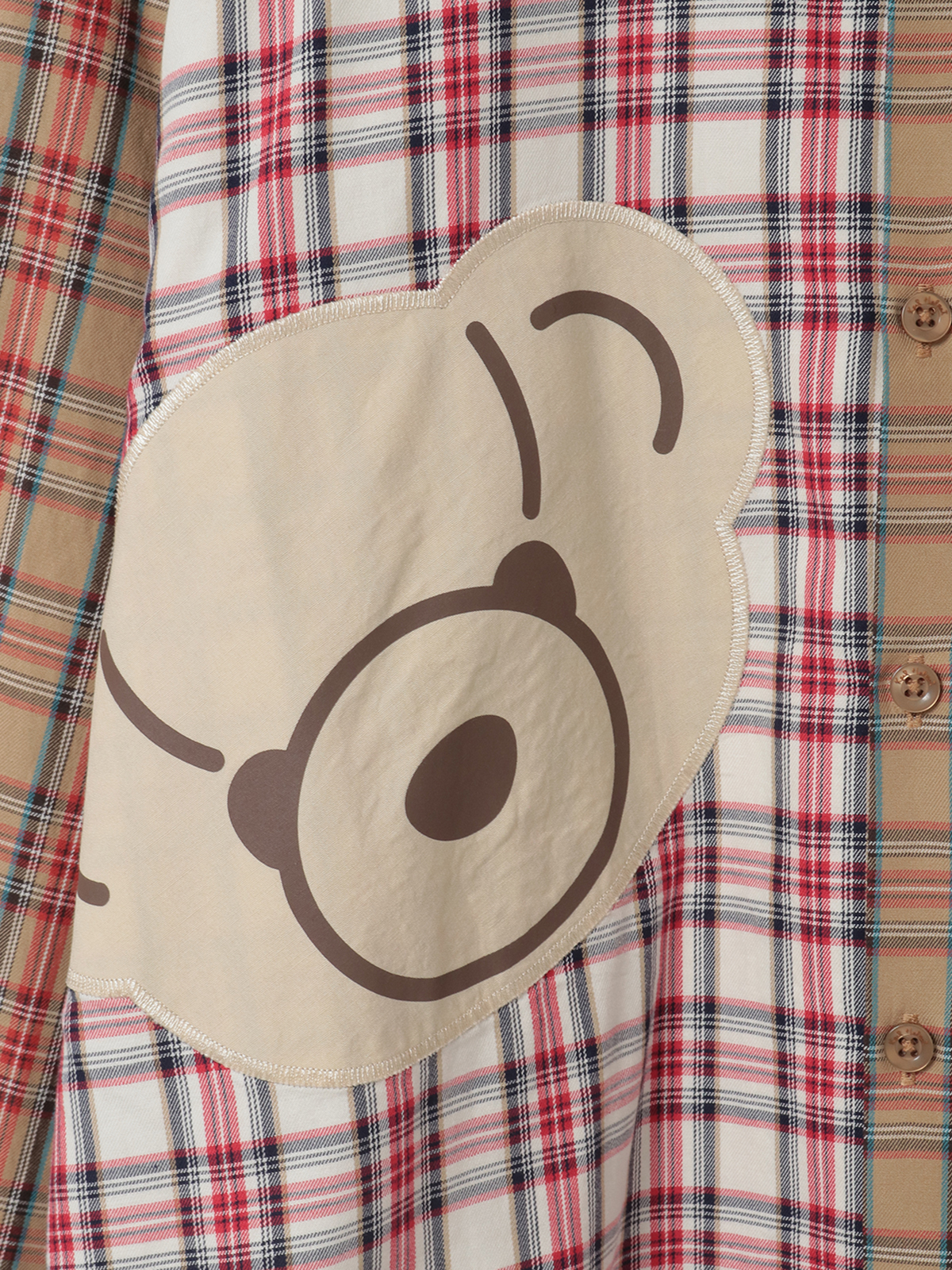 • くまアップリケ付きオリジナルタータンチェックシャツブラウス 詳細画像
