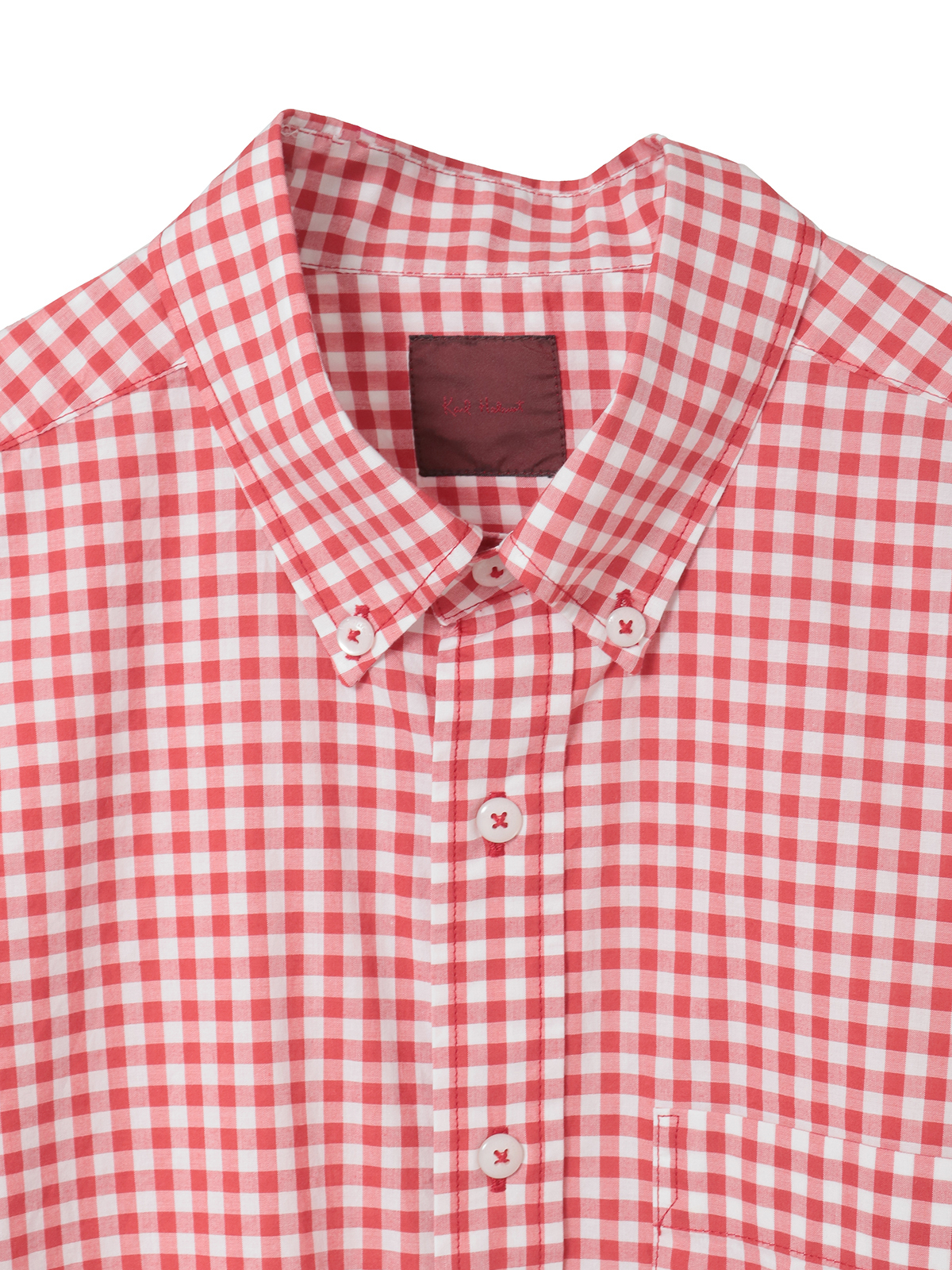 ボタンダウンのデザインで、カジュアルにもトラッドにも使えます。左胸のポケットにロゴネームを添えてワンポイントに。