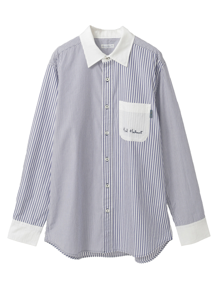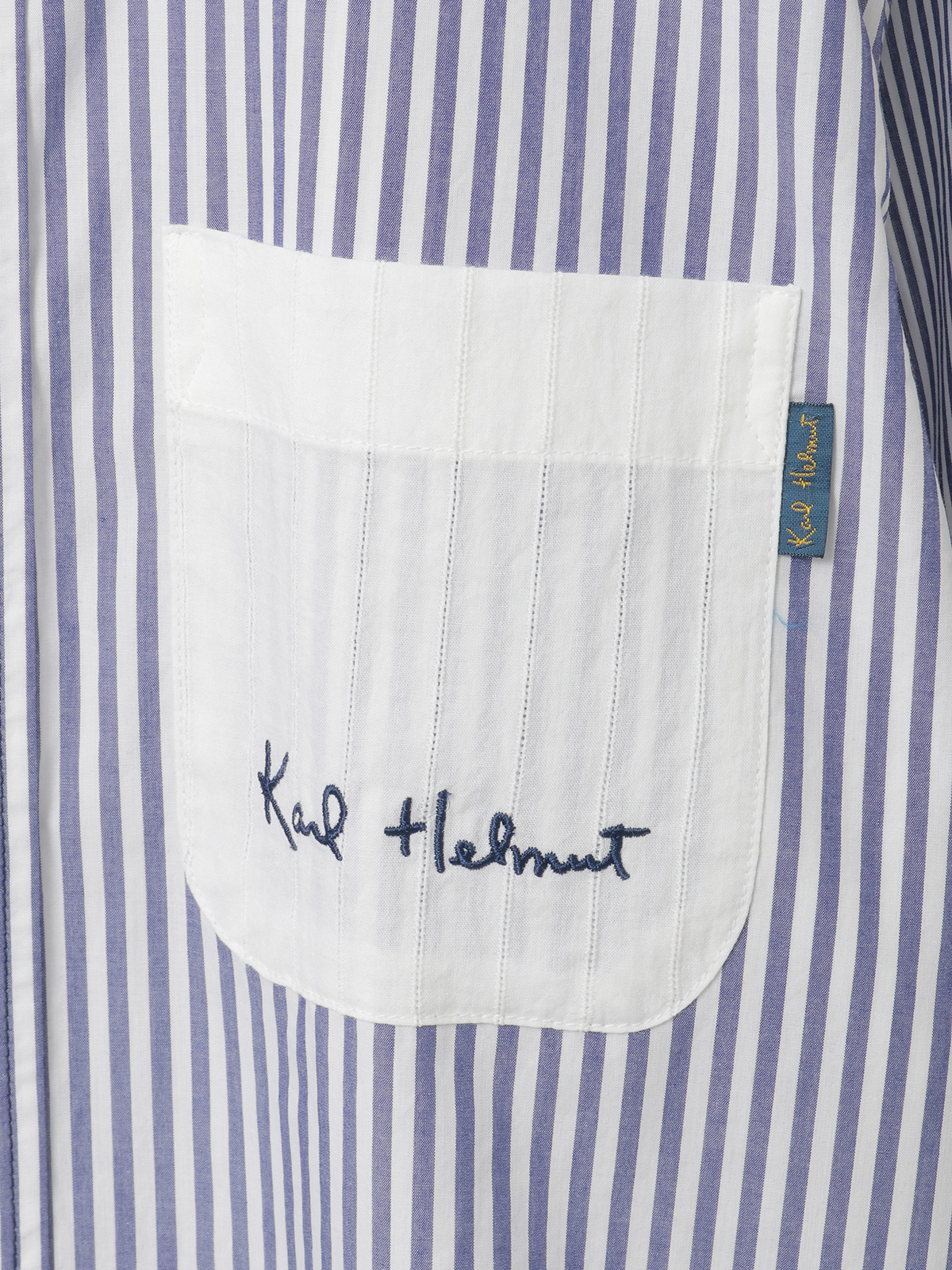ストライプパッチワークのものは、細さの違うロンドンストライプのものを掛け合わせて個性的に。カフスとポケットと衿のところには真っ白なドビーストライプをあしらって華やかに。