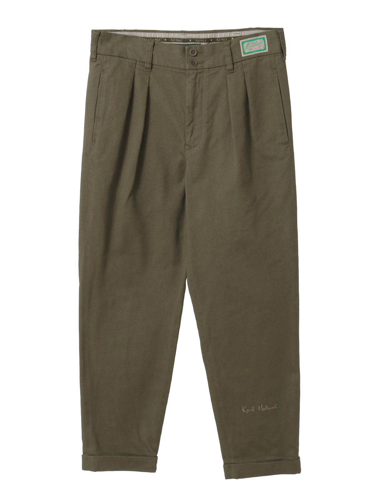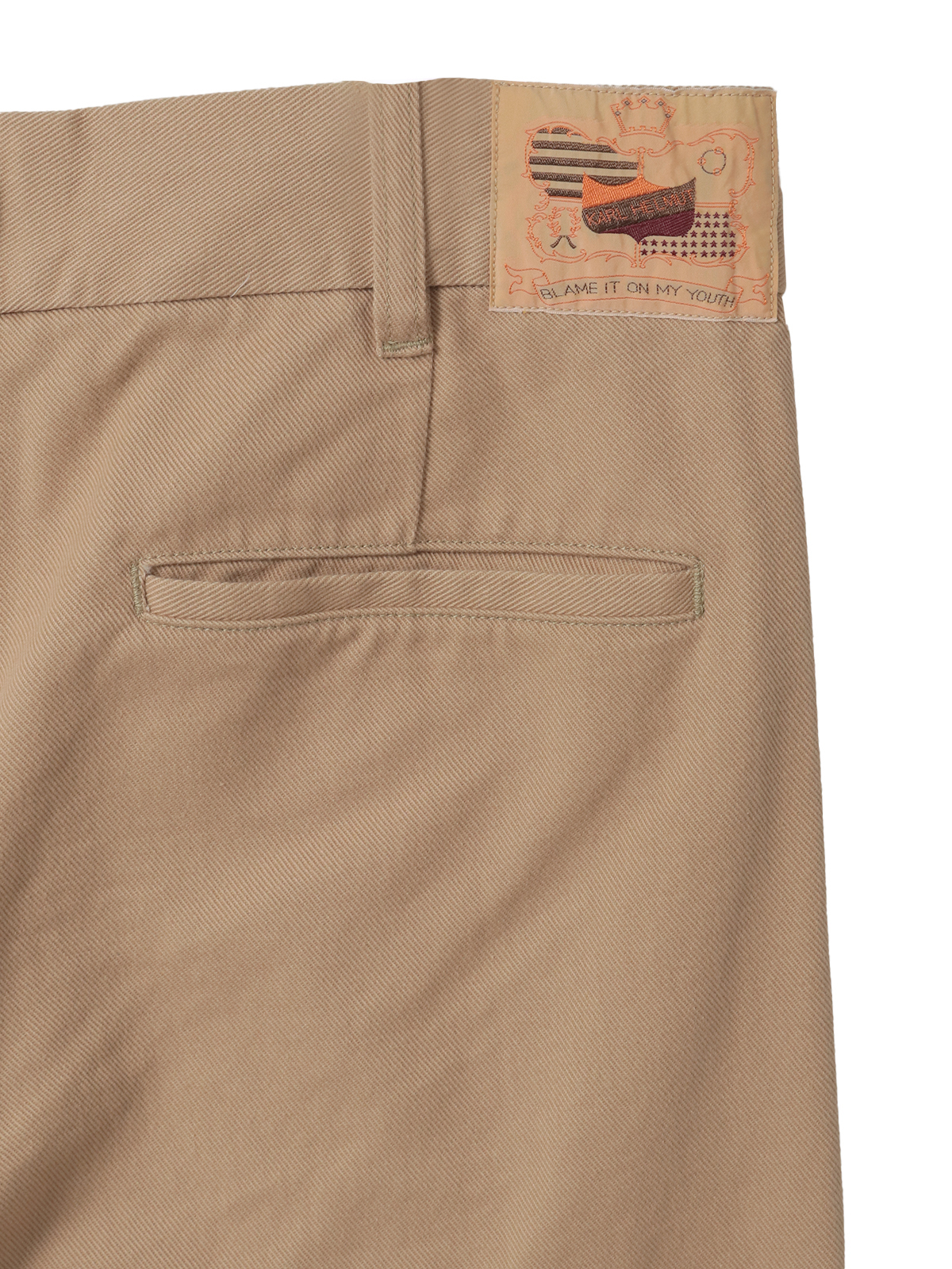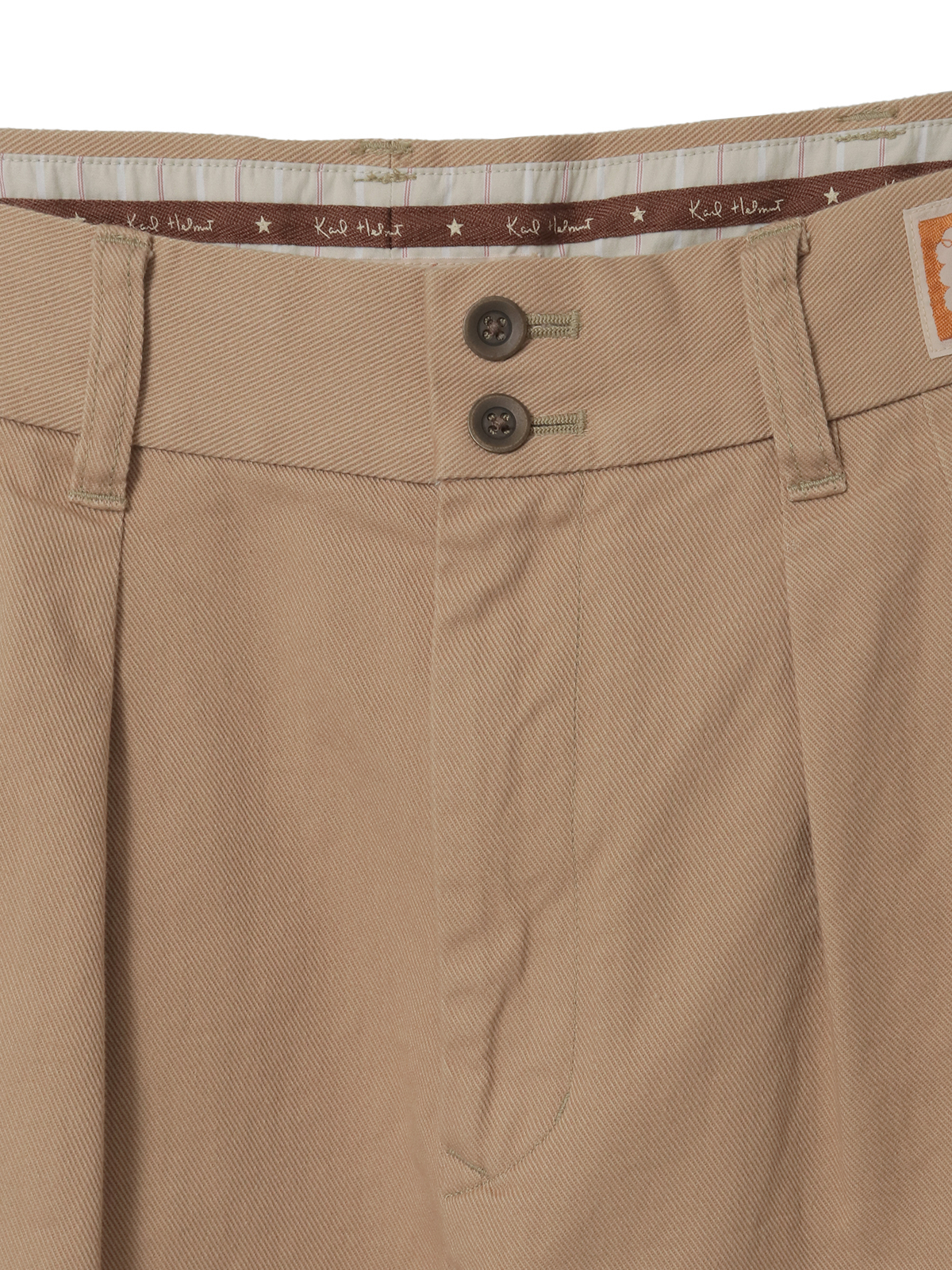 くったりとしてしなやかな風合いになるバイオタンブラー加工を施した厚手のカツラギのようなクラシックドリルを使用。着合わせのしやすさと履き心地のよさが魅力です。