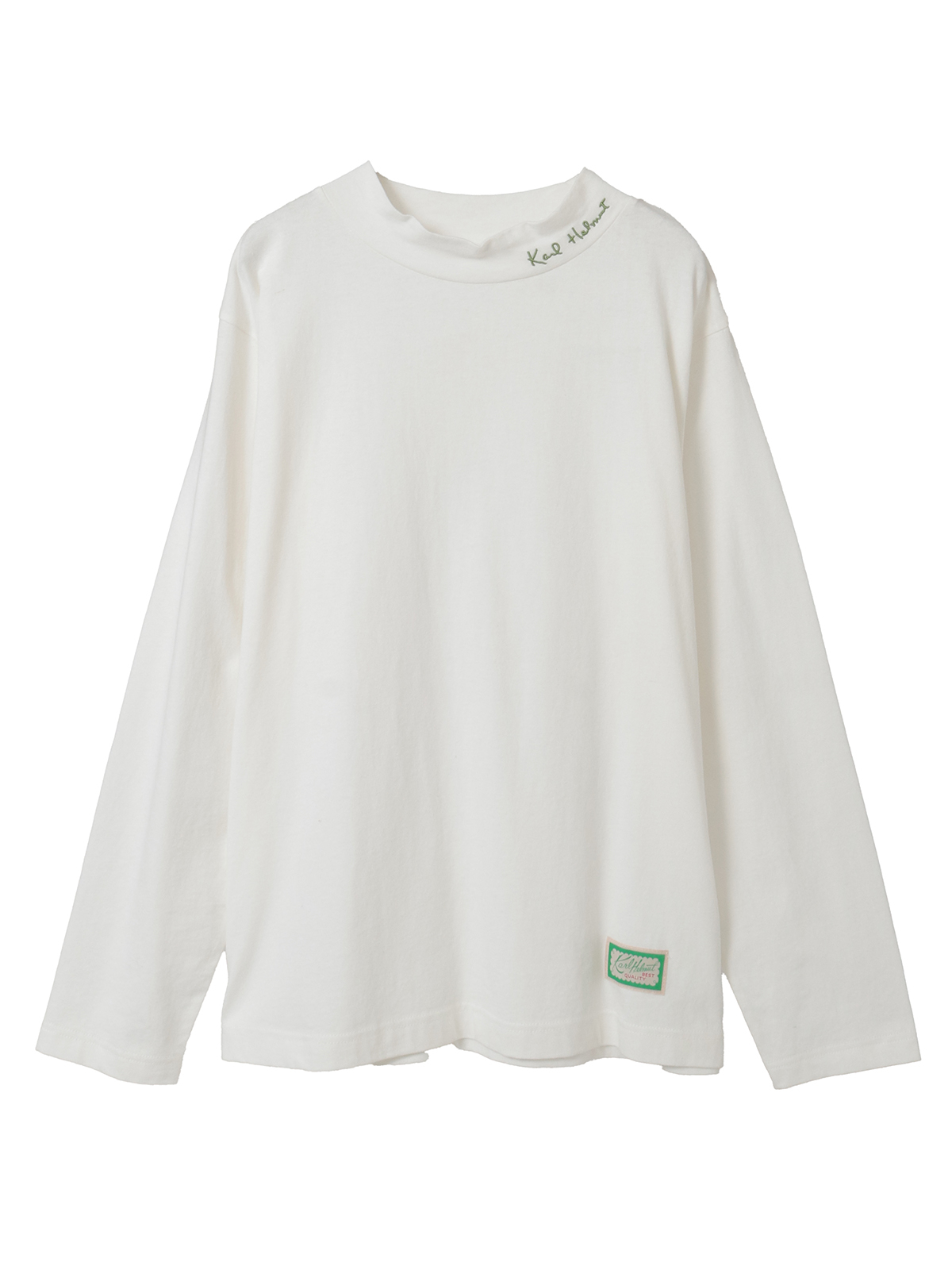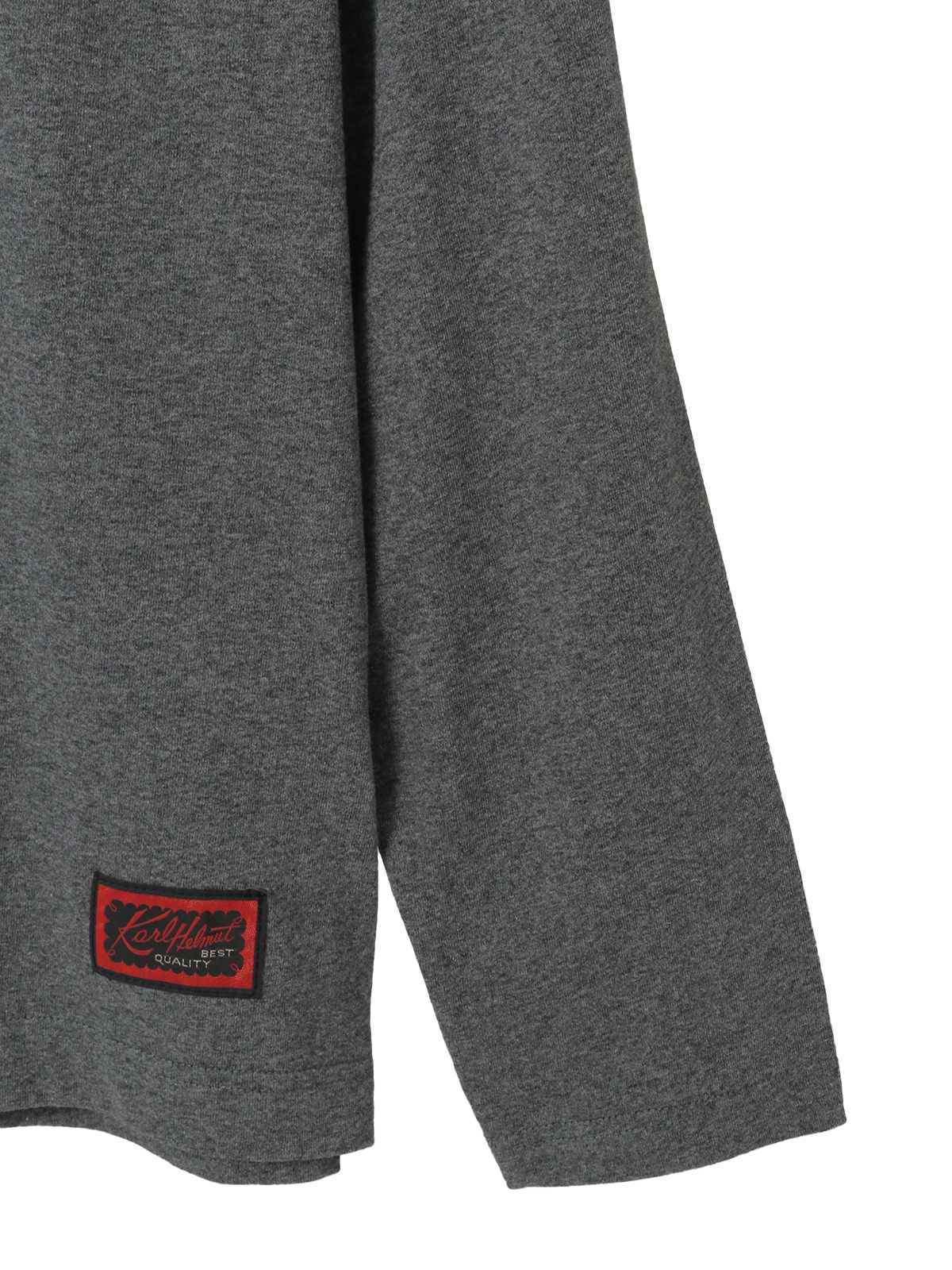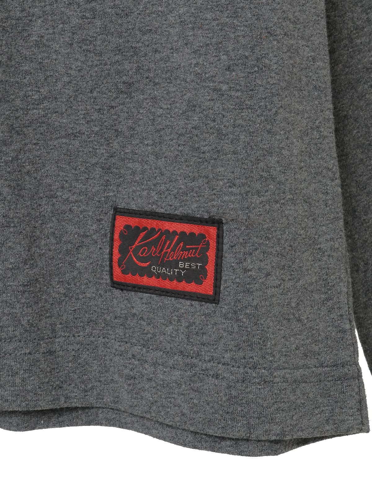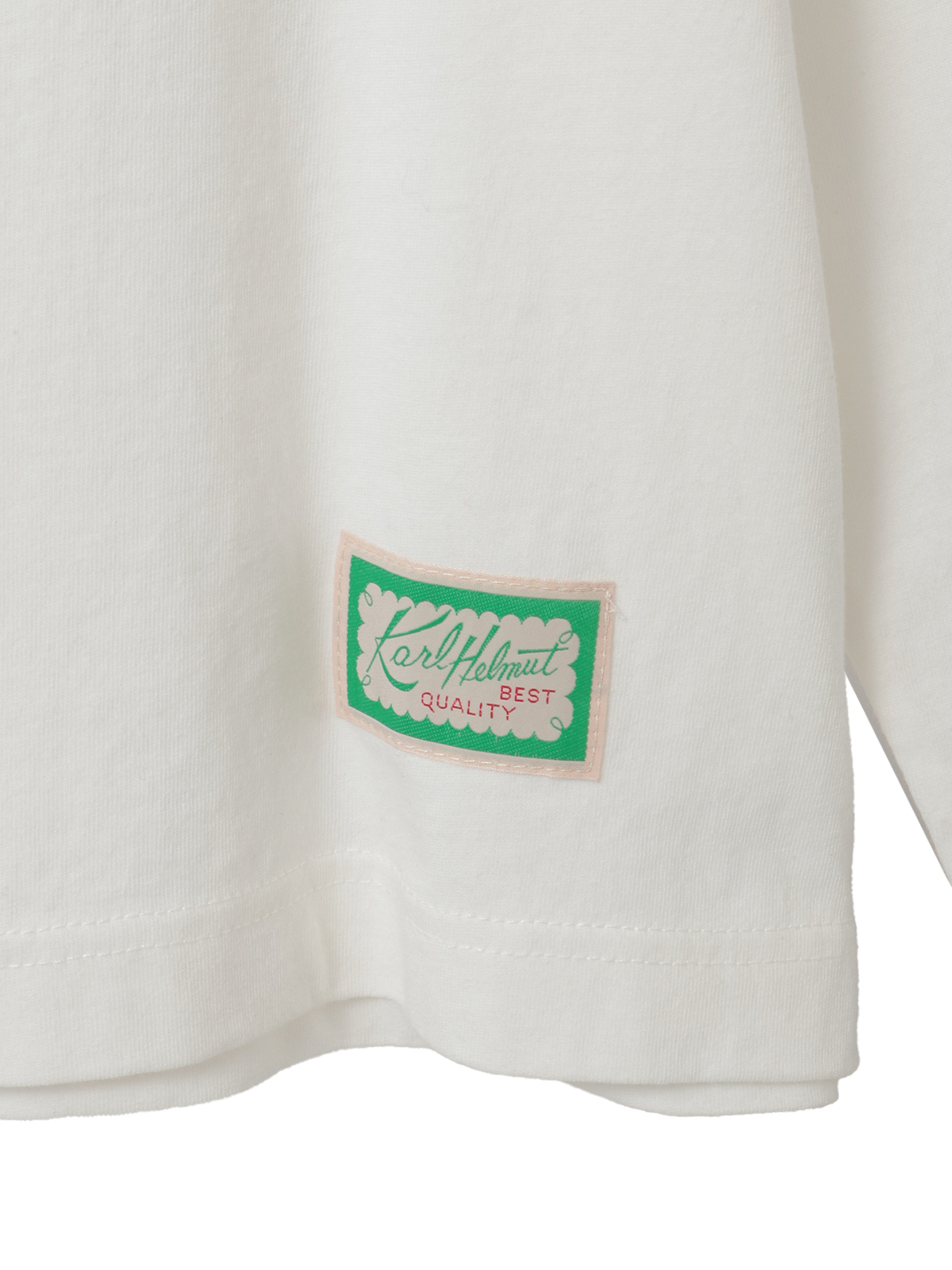 ネックのところにはロゴのワンポイント刺繍と、裾まわりにネームワッペンをあしらってカールヘルムらしさをトッピング。