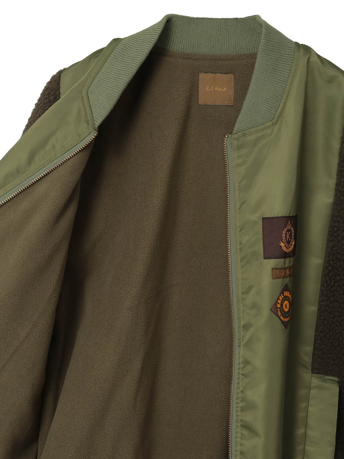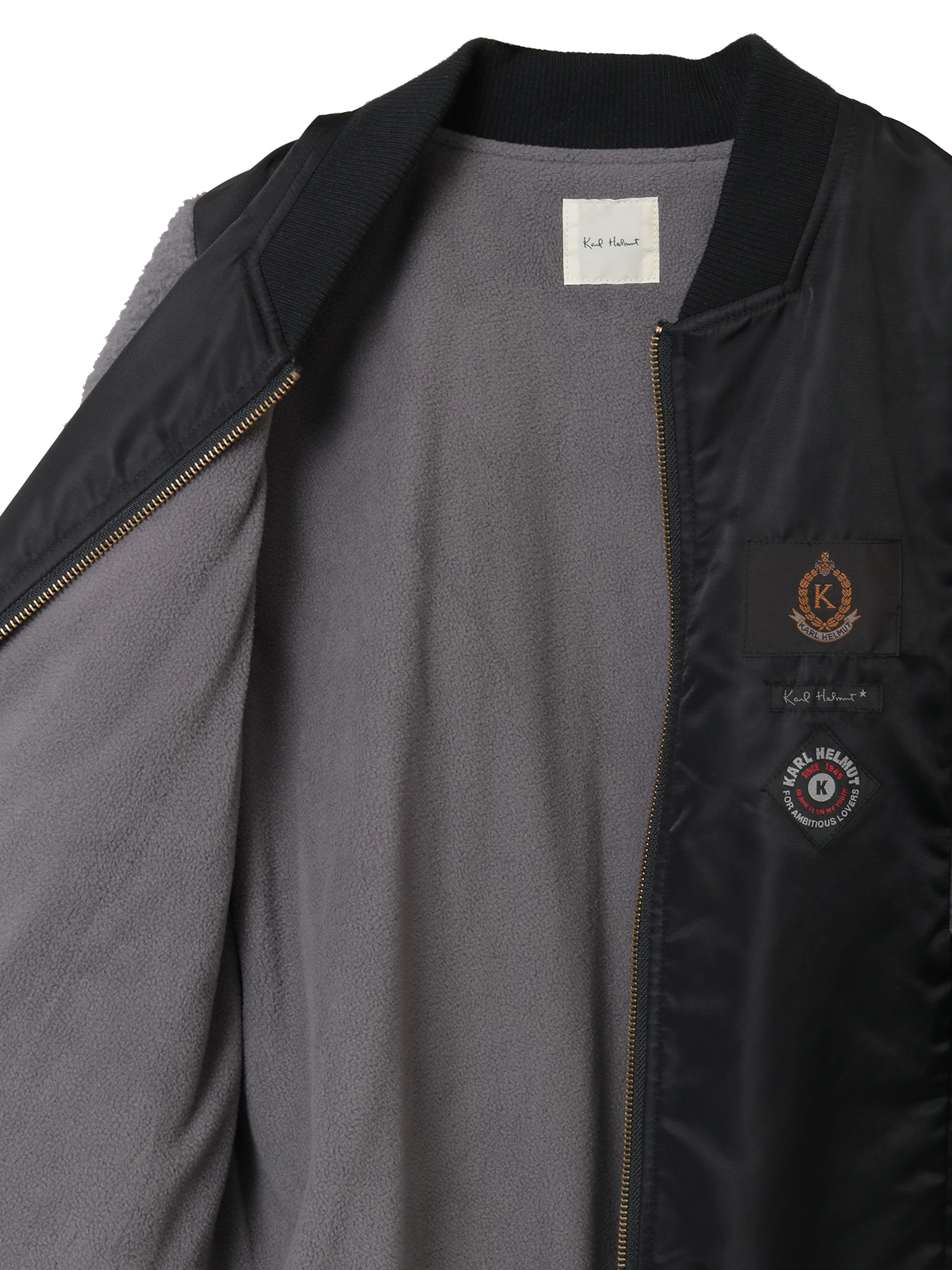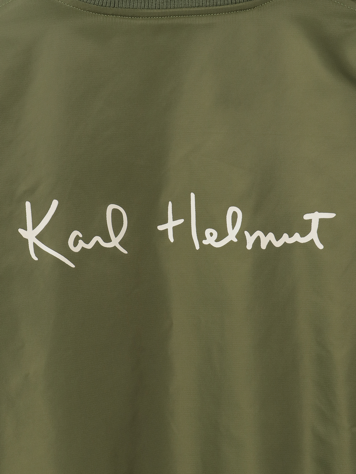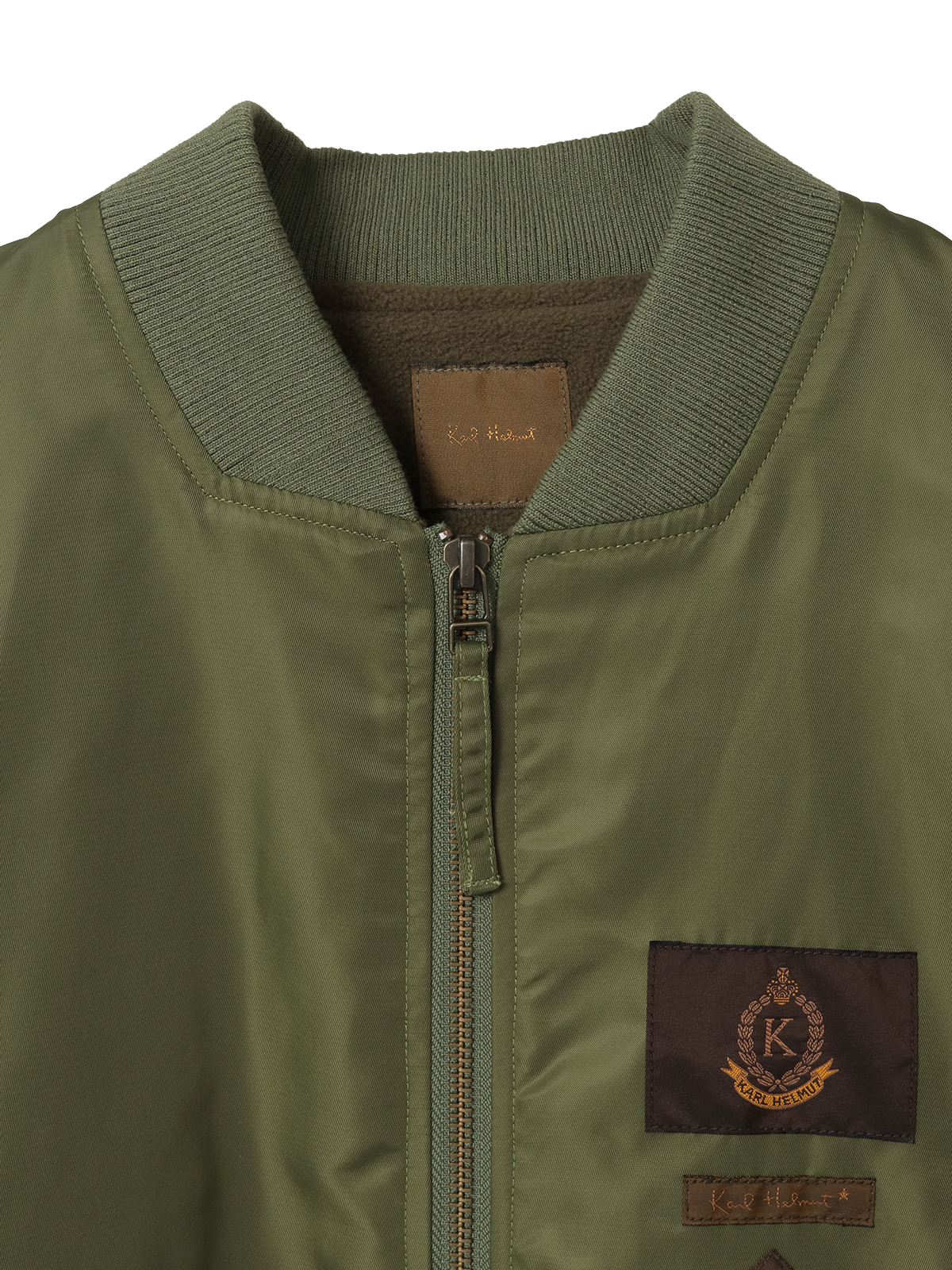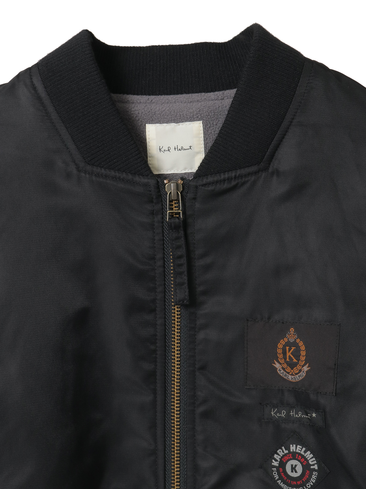 ネックのところにはロゴのワンポイント刺繍と、裾まわりにネームワッペンをあしらってカールヘルムらしさをトッピング。