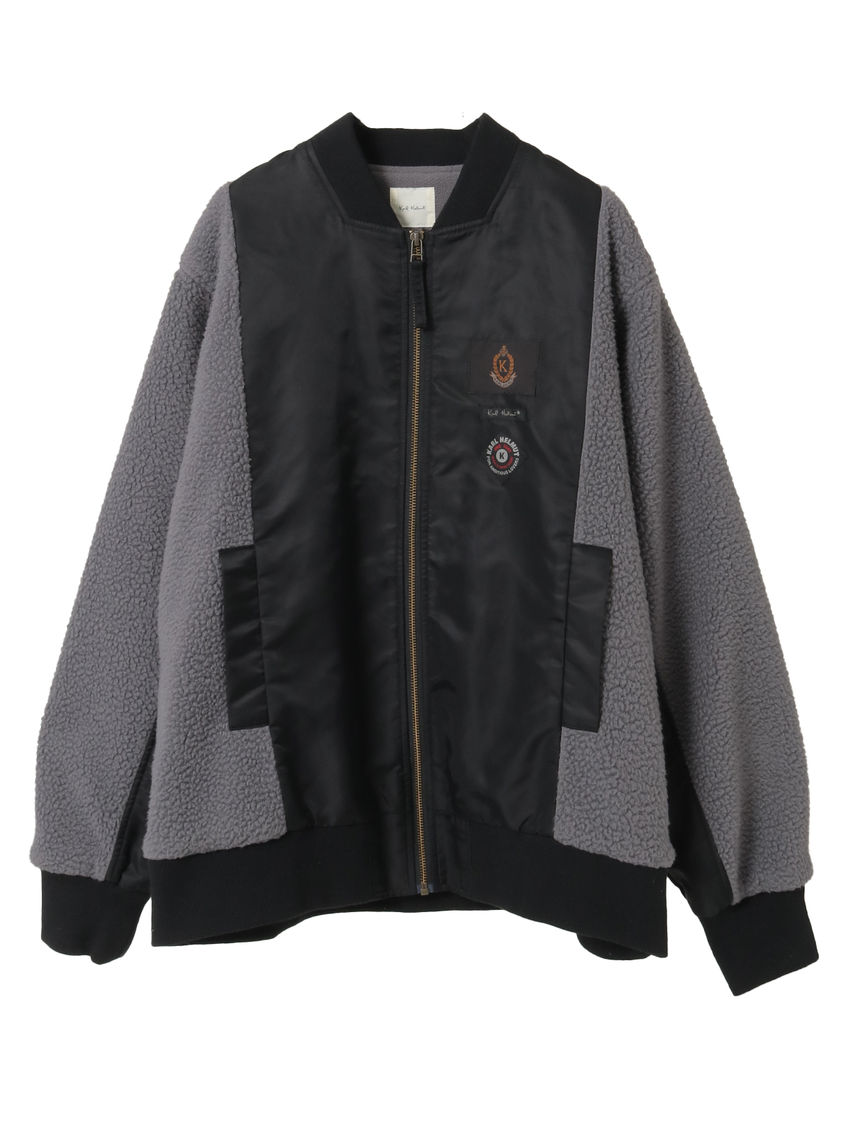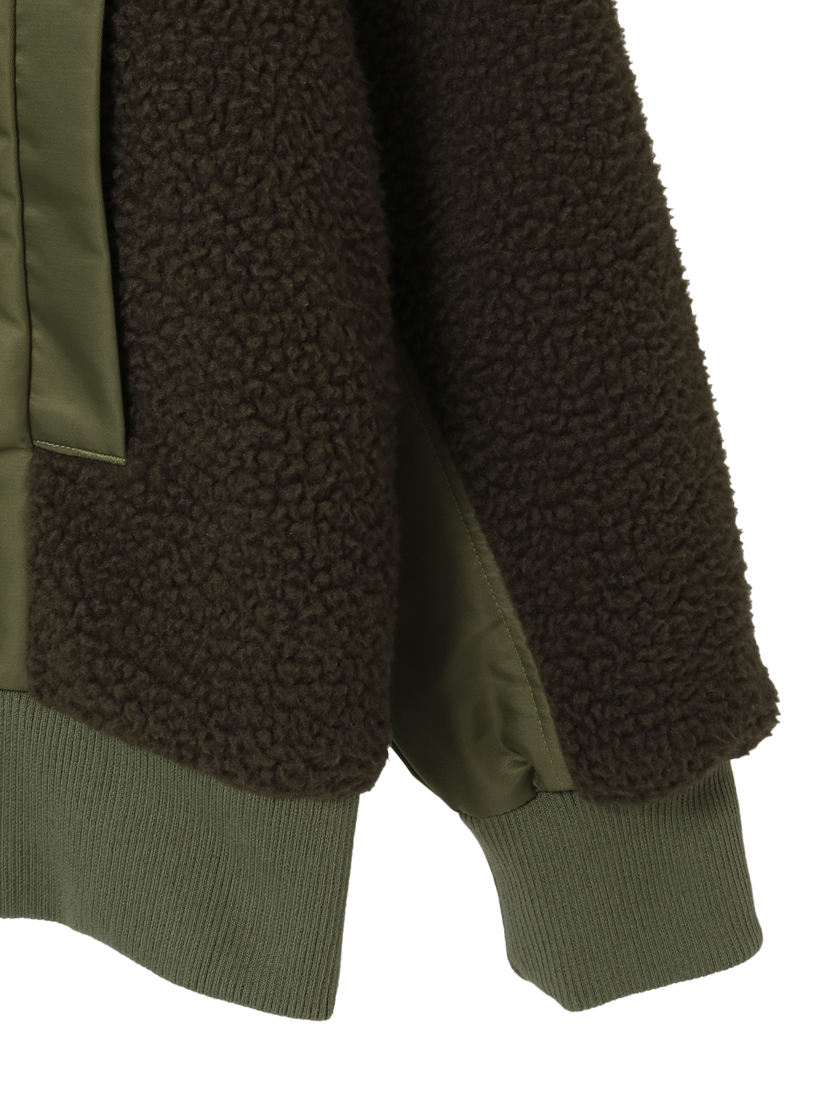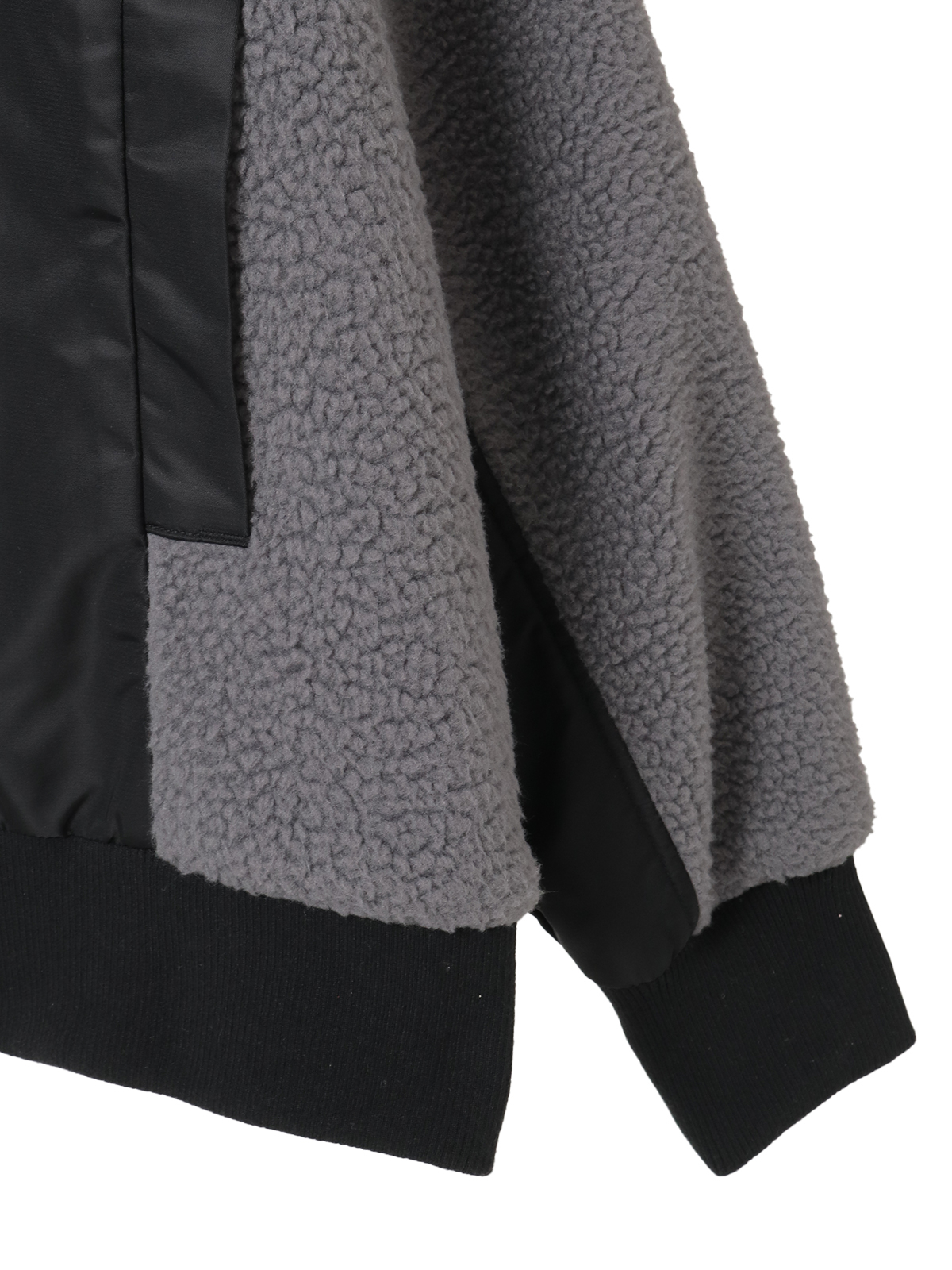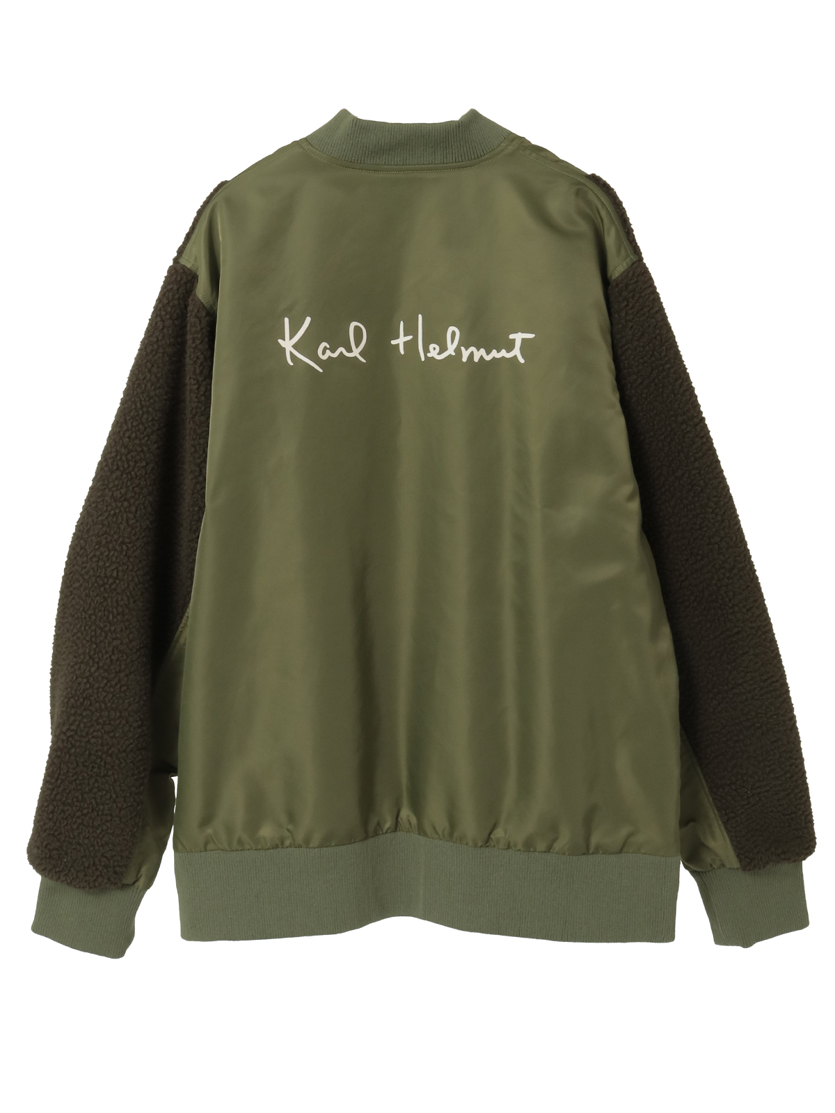身ごろのところには、しっかりとした肉感とハリ感のあるナイロンツイルと、袖のところには、あたたかみのあるふんわりとしたボアを使った異素材ミックス、さらには配色使いが面白みのあるブルゾンは、裏フリースであたたかく、アウターとしてもお使いいただけえる本格派。