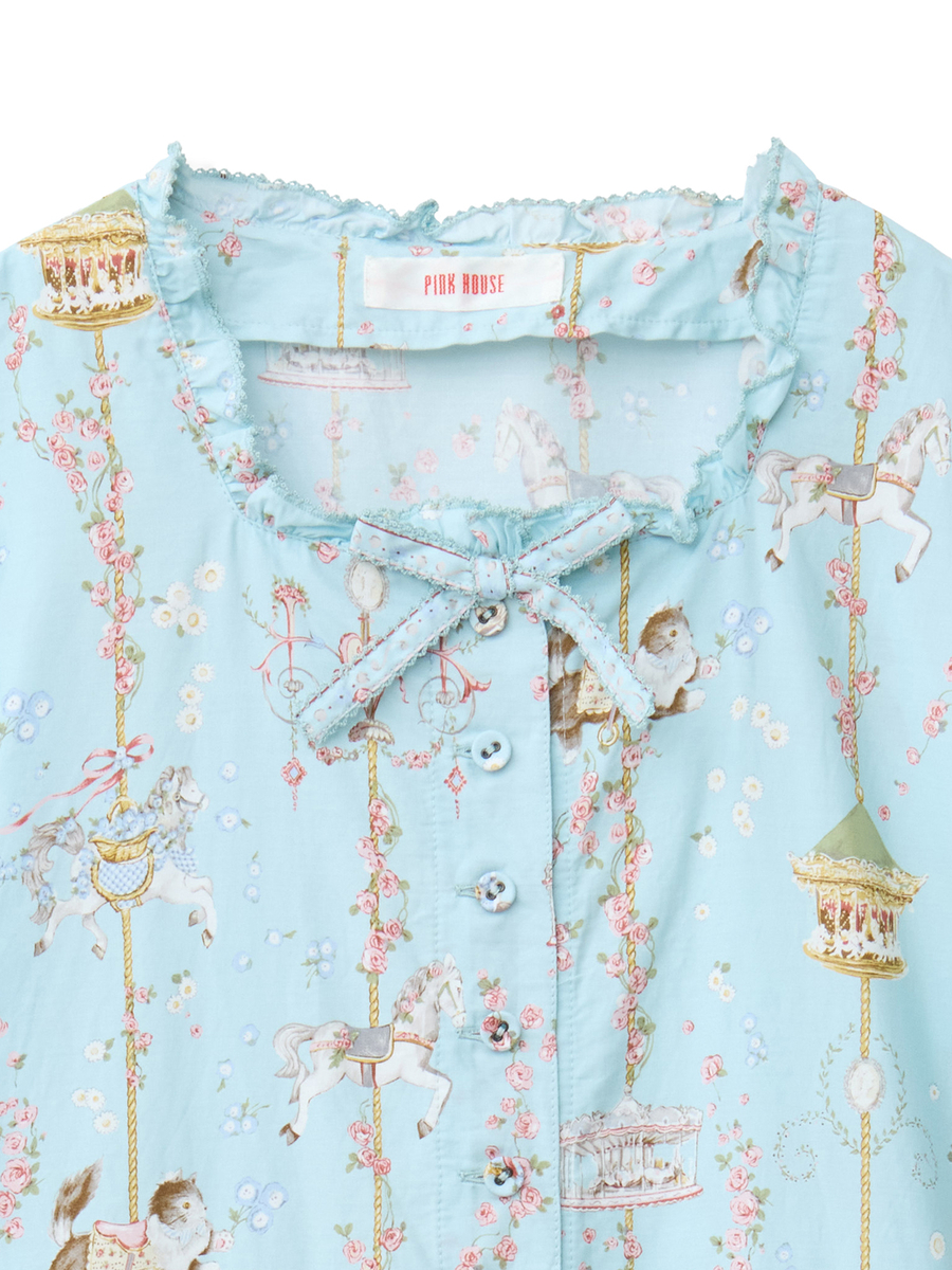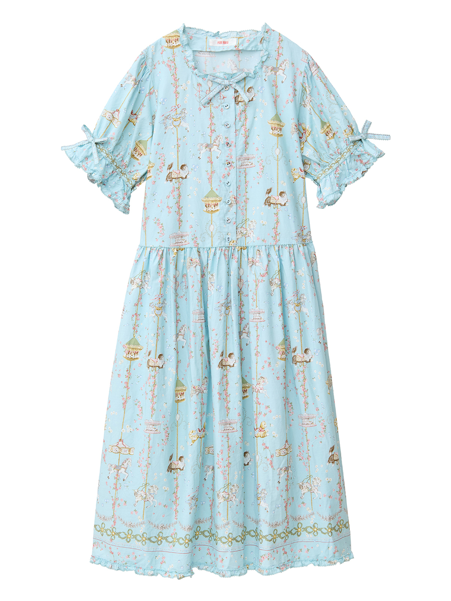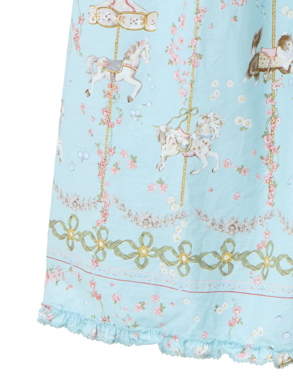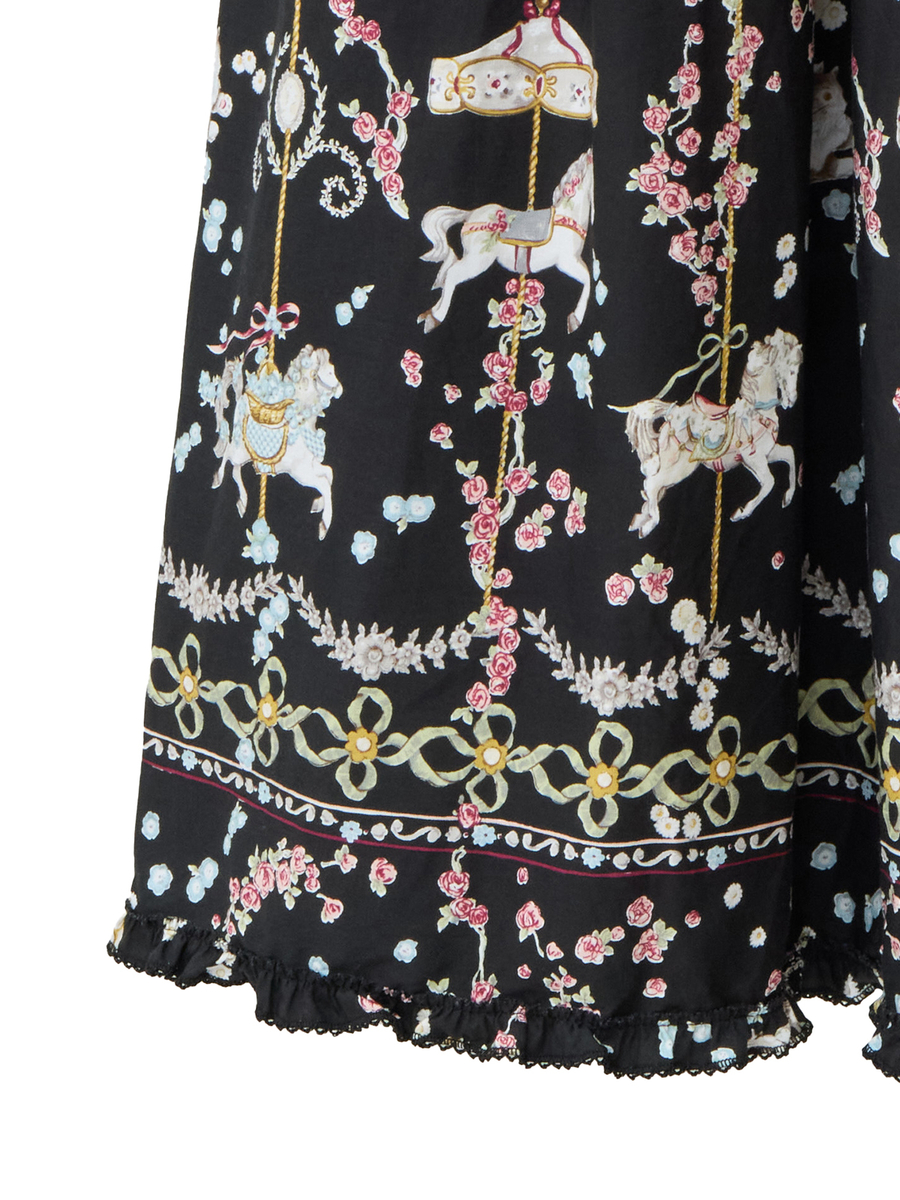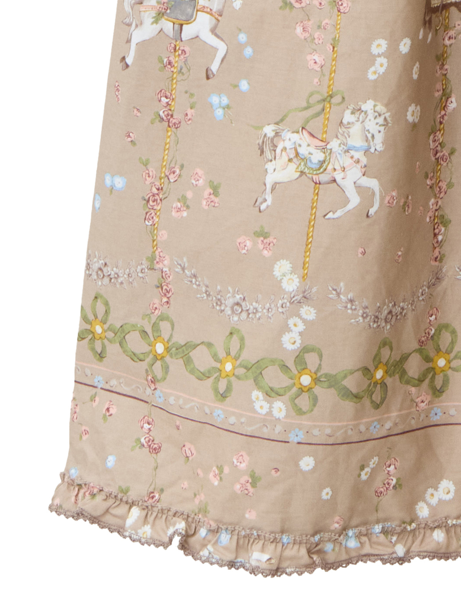 お洋服をメリーゴーランドに見立てたロマンティックでクラシカルなパネルプリント。夢とお花がたっぷりと詰め込まれたメリーゴーラウンド。