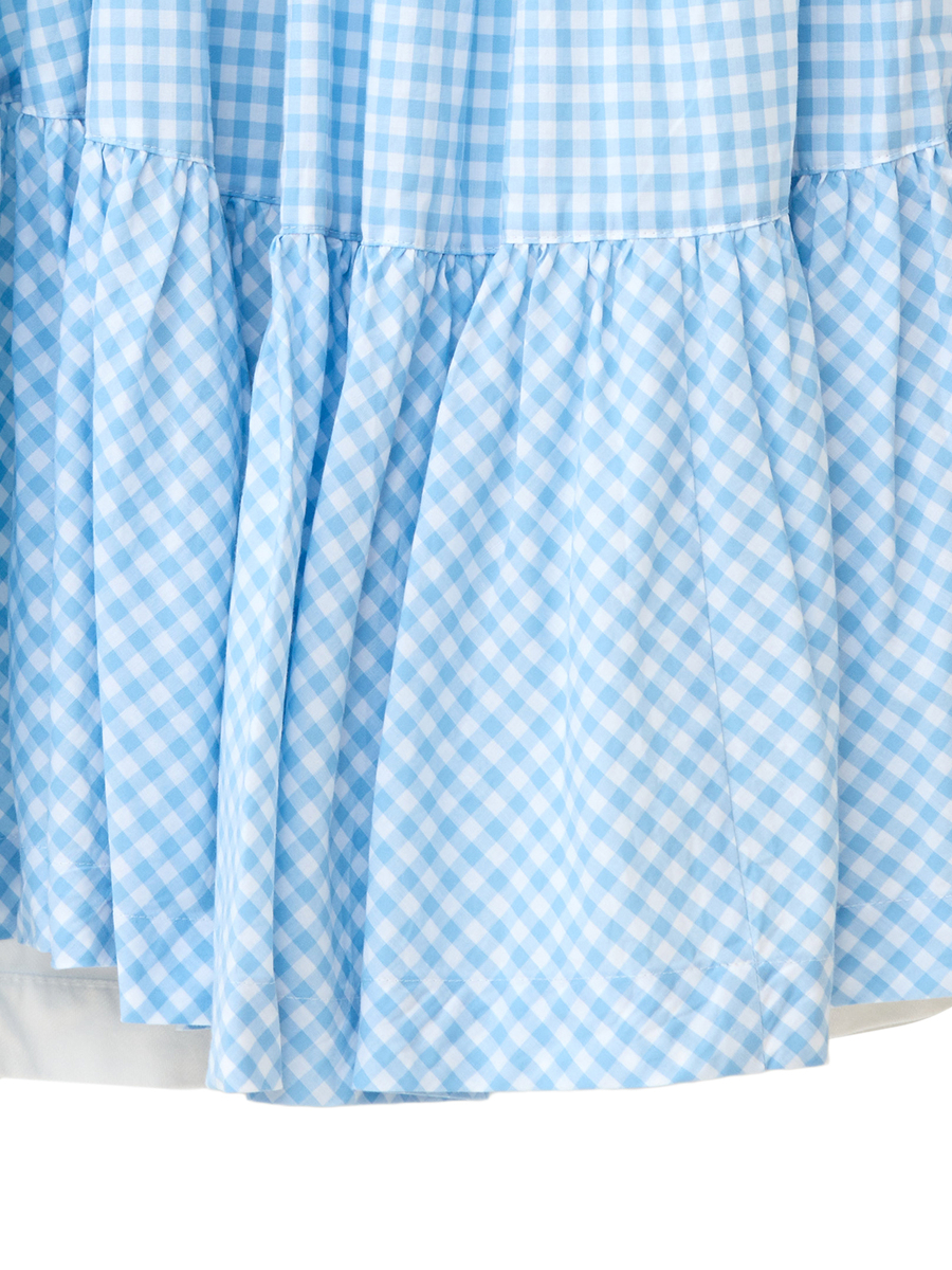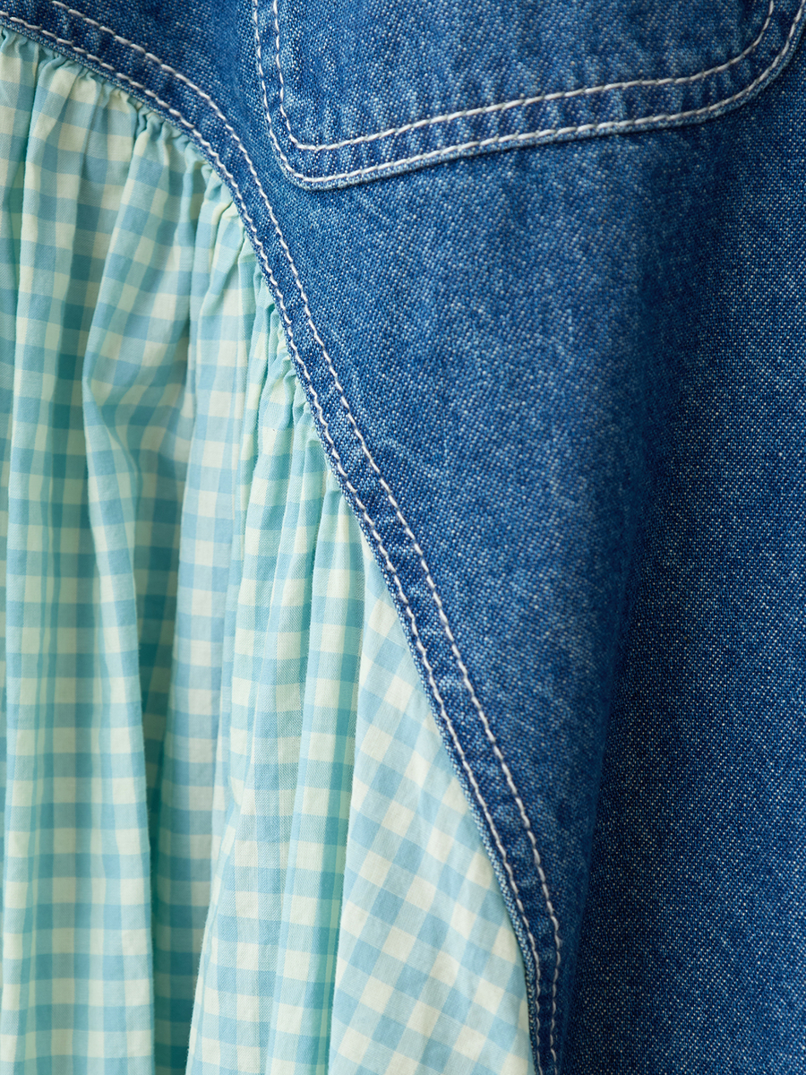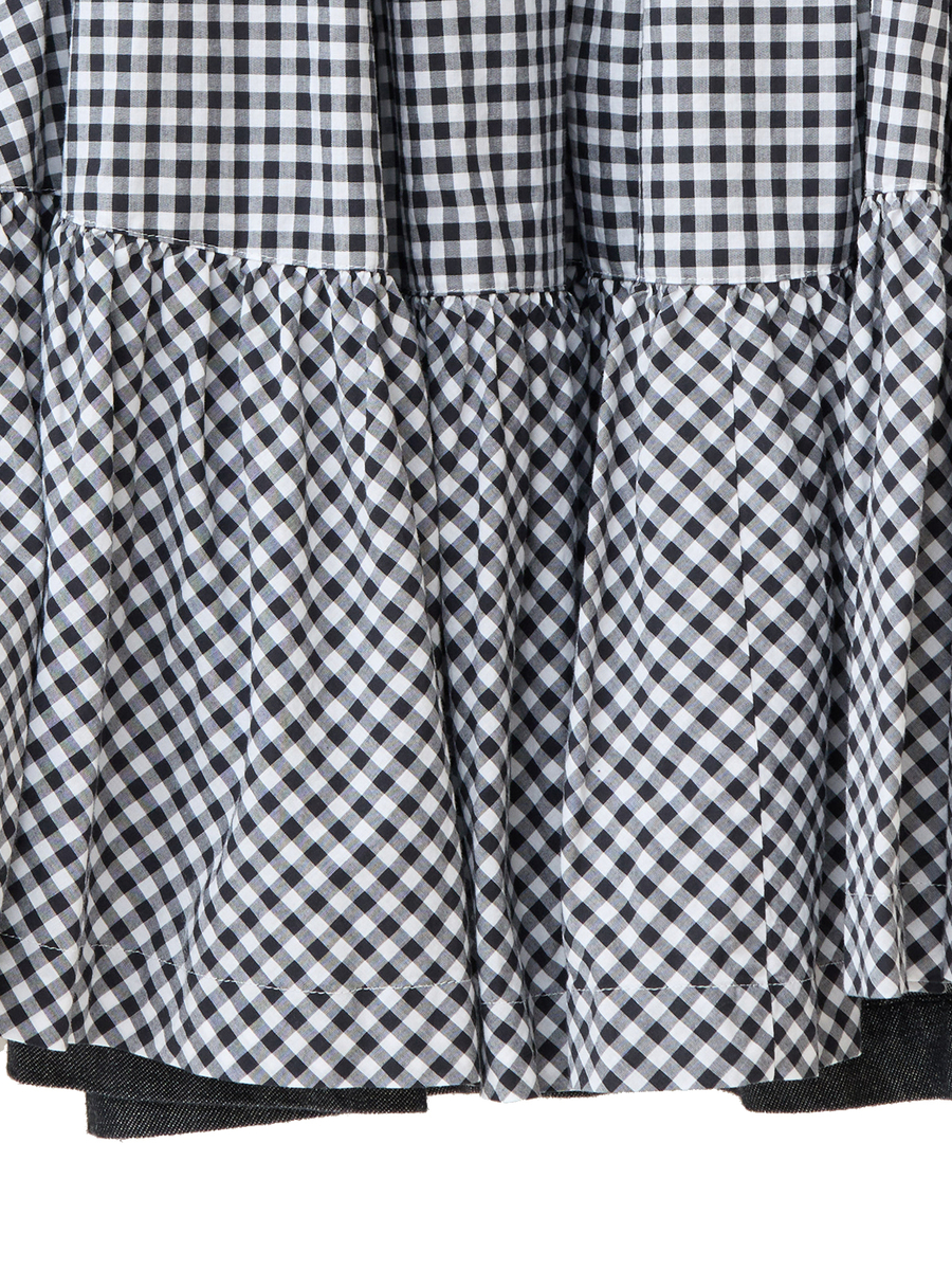 バックスタイルにギンガムチェックを使った切り替えのデザインがとても印象的なデニムスカート。