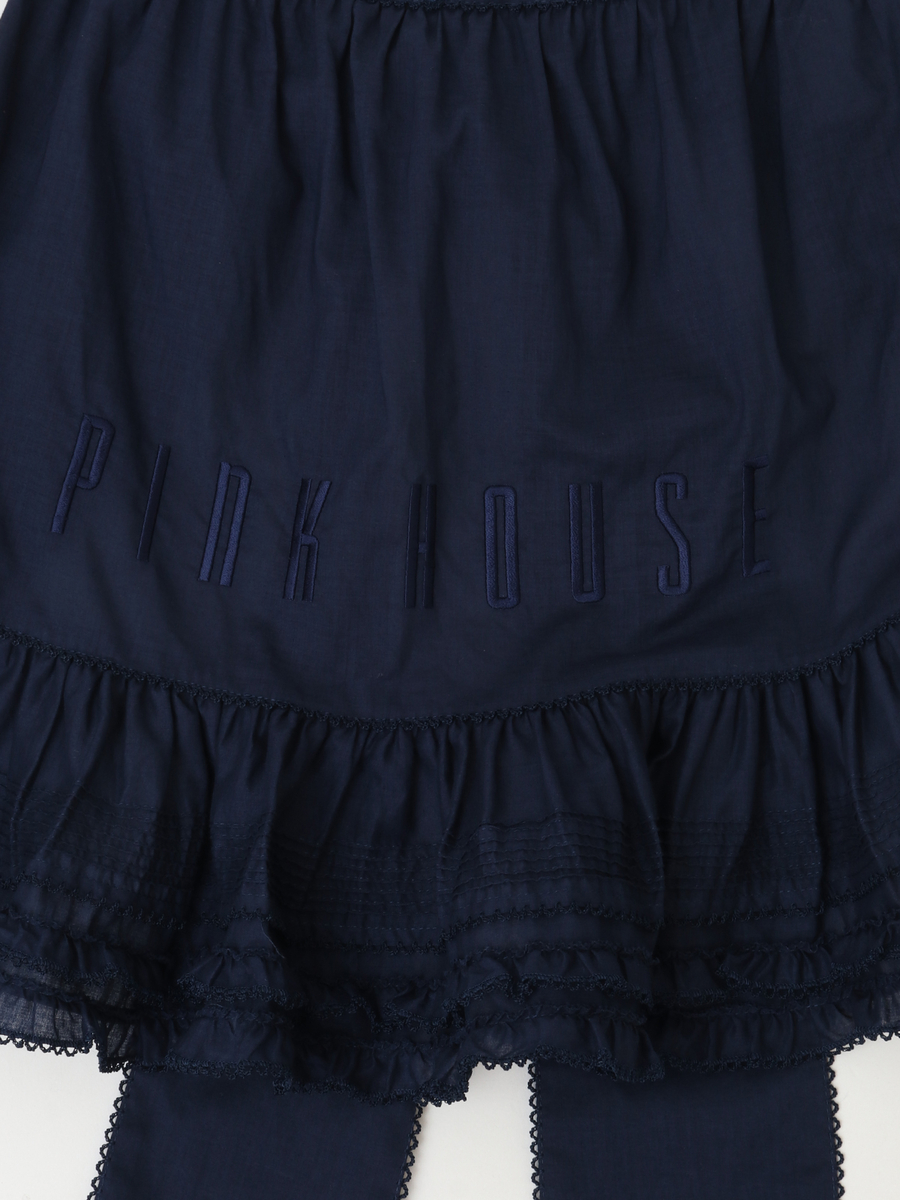 PINK HOUSEのロゴ刺繍がポイントに。刺繍は身生地と同色なので主張しすぎず合わせやすく仕上げています。