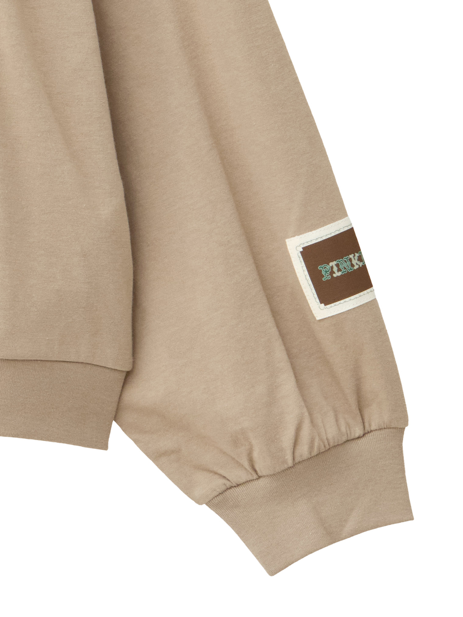 プリントの下にはさりげなくロゴプリントと、左の袖先にはロゴネームワッペンをアクセントに。