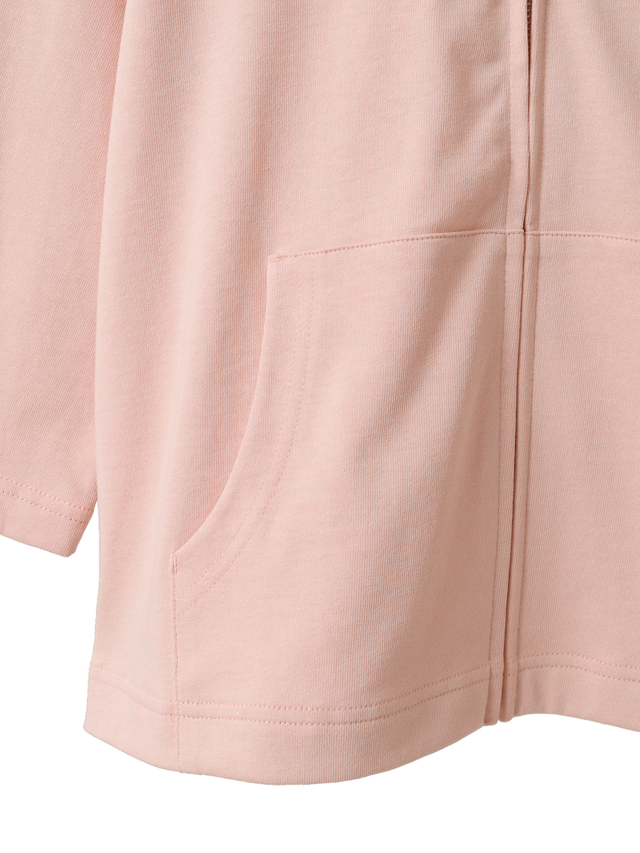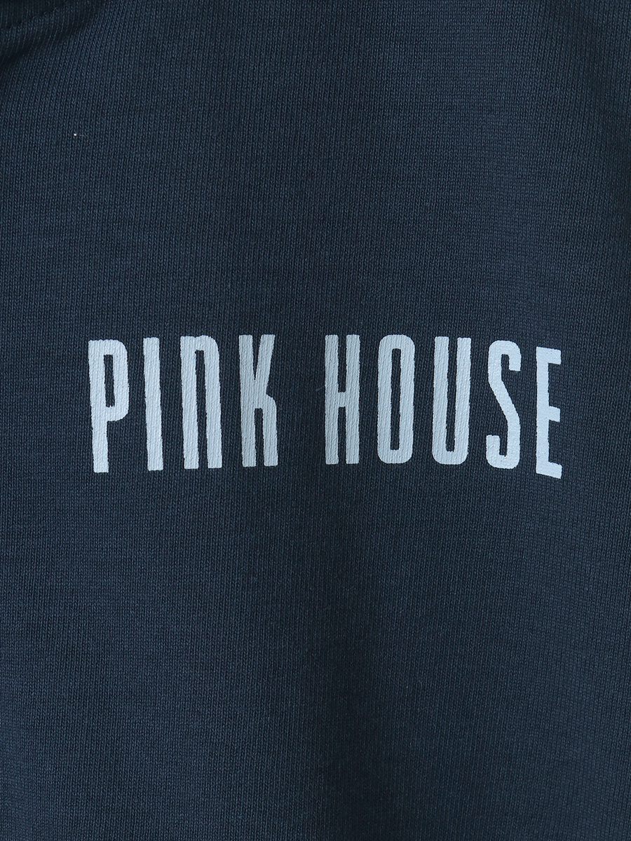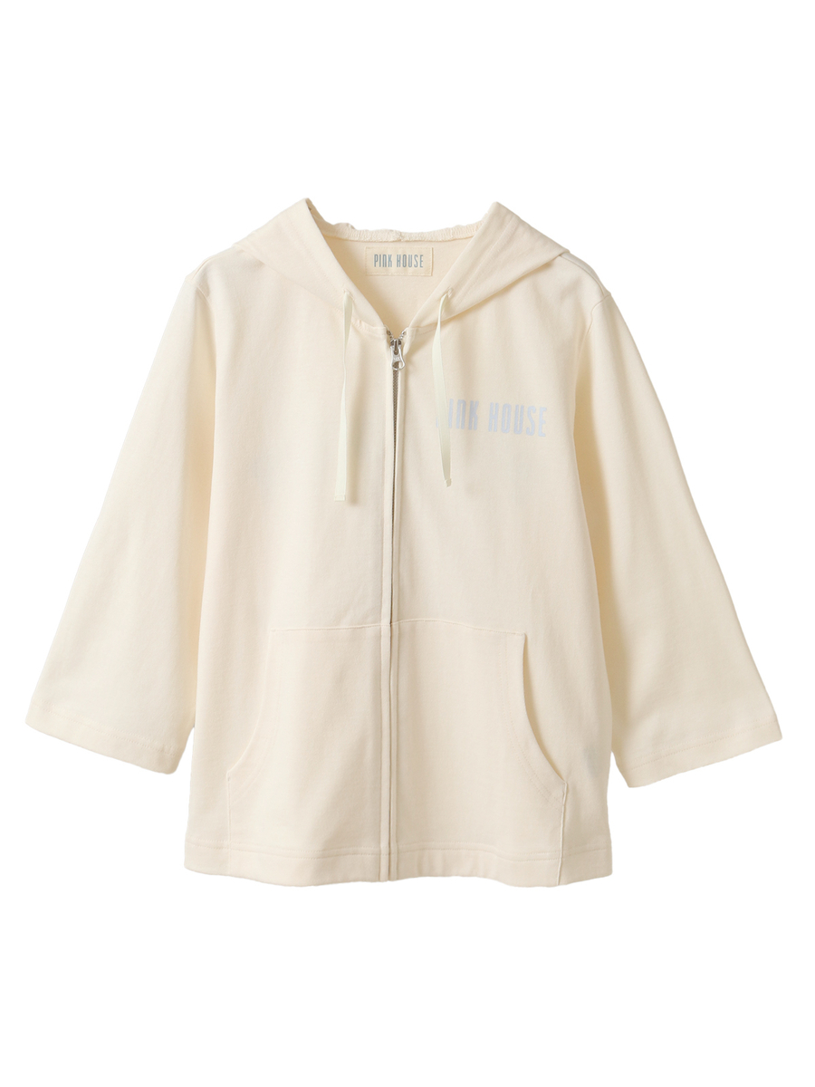 背中にあしらったPINK HOUSEのロゴアップリケがあじさいカラーになっている後ろすがたがとっても可愛いパーカー。