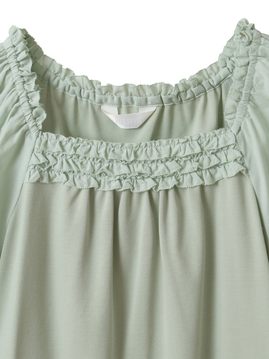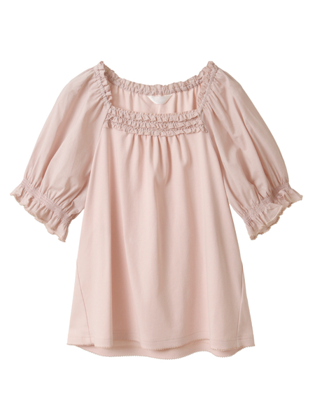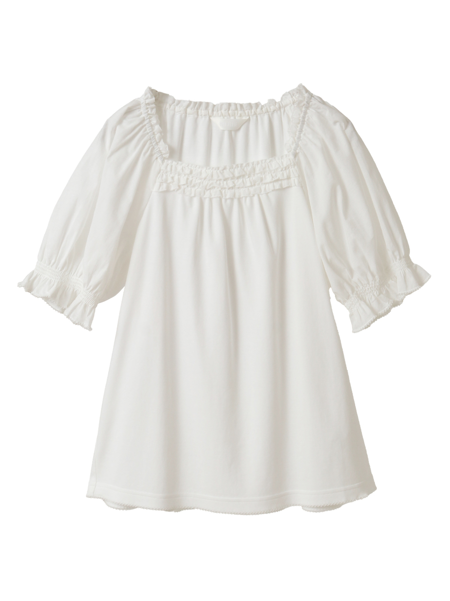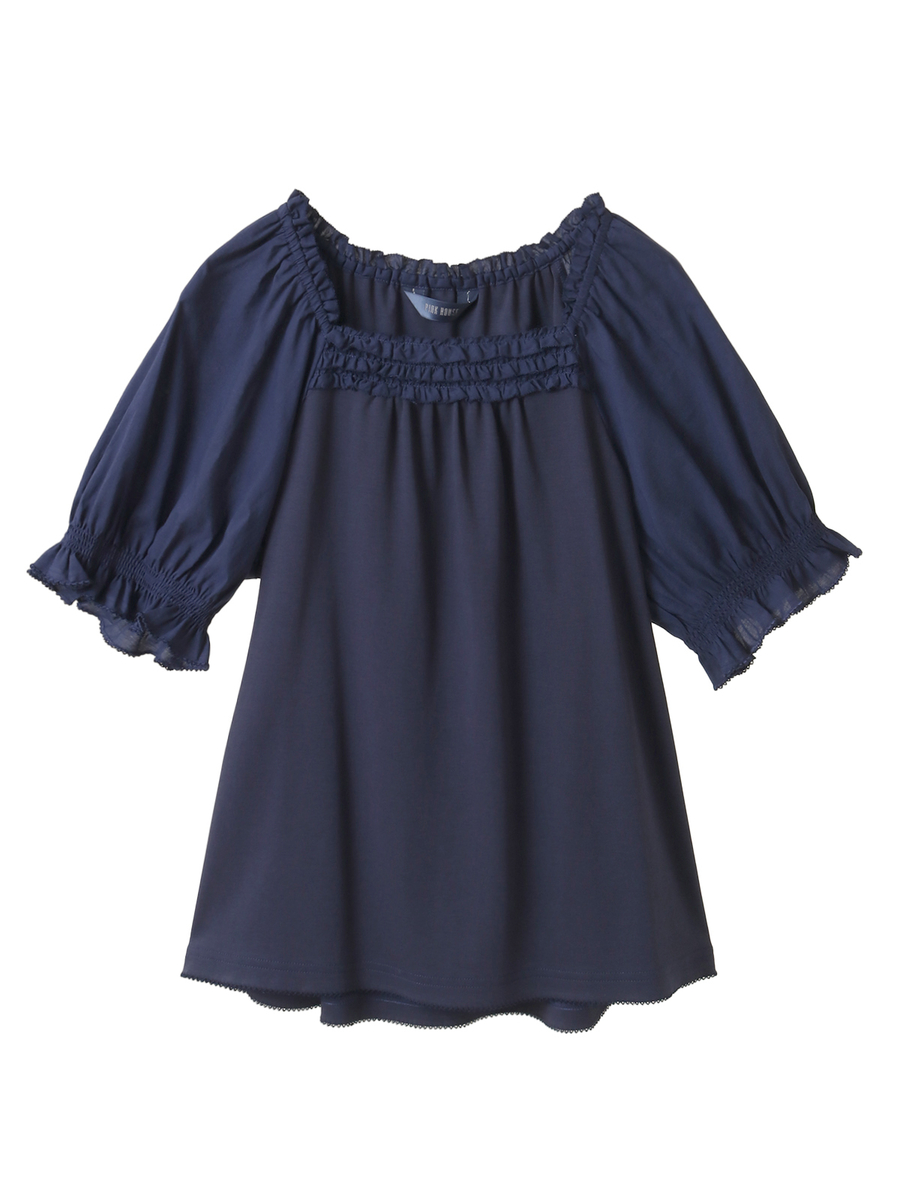パフスリーブのお袖のところには綿ローンを使ったコンビネーションカットソー。