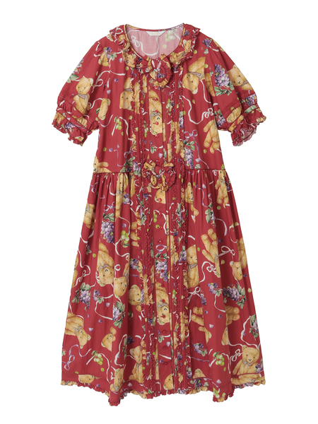 • くま葡萄プリントワンピース