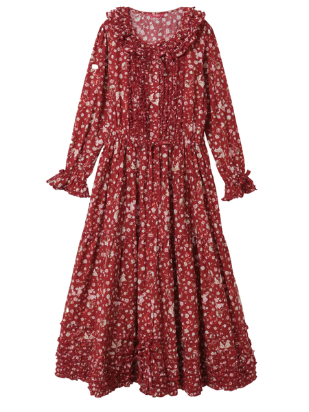 ウエストまわりのところになかにリボン紐が通っているのでフロントで結んでシルエット感を調節できて大人可愛く着られます。