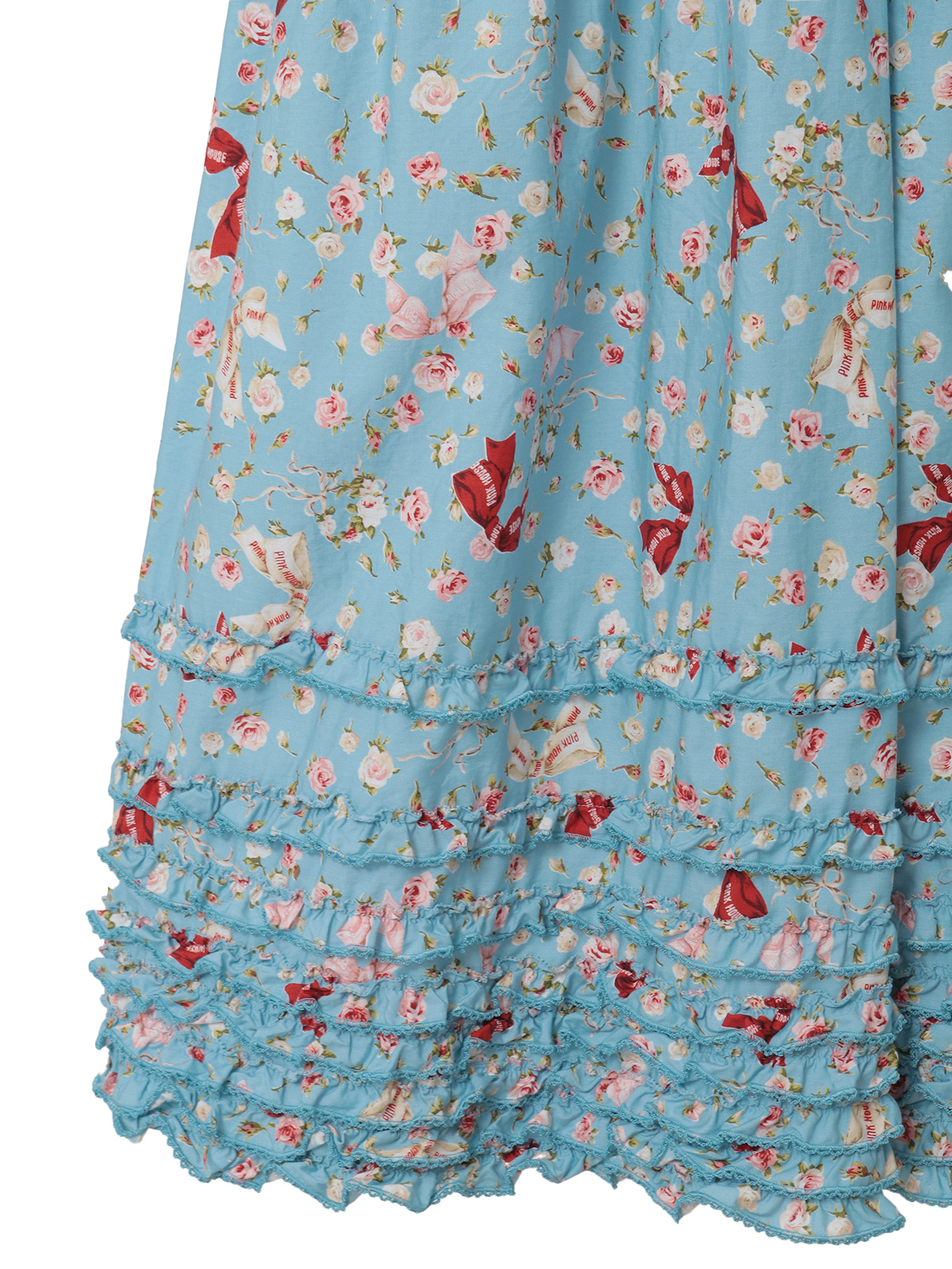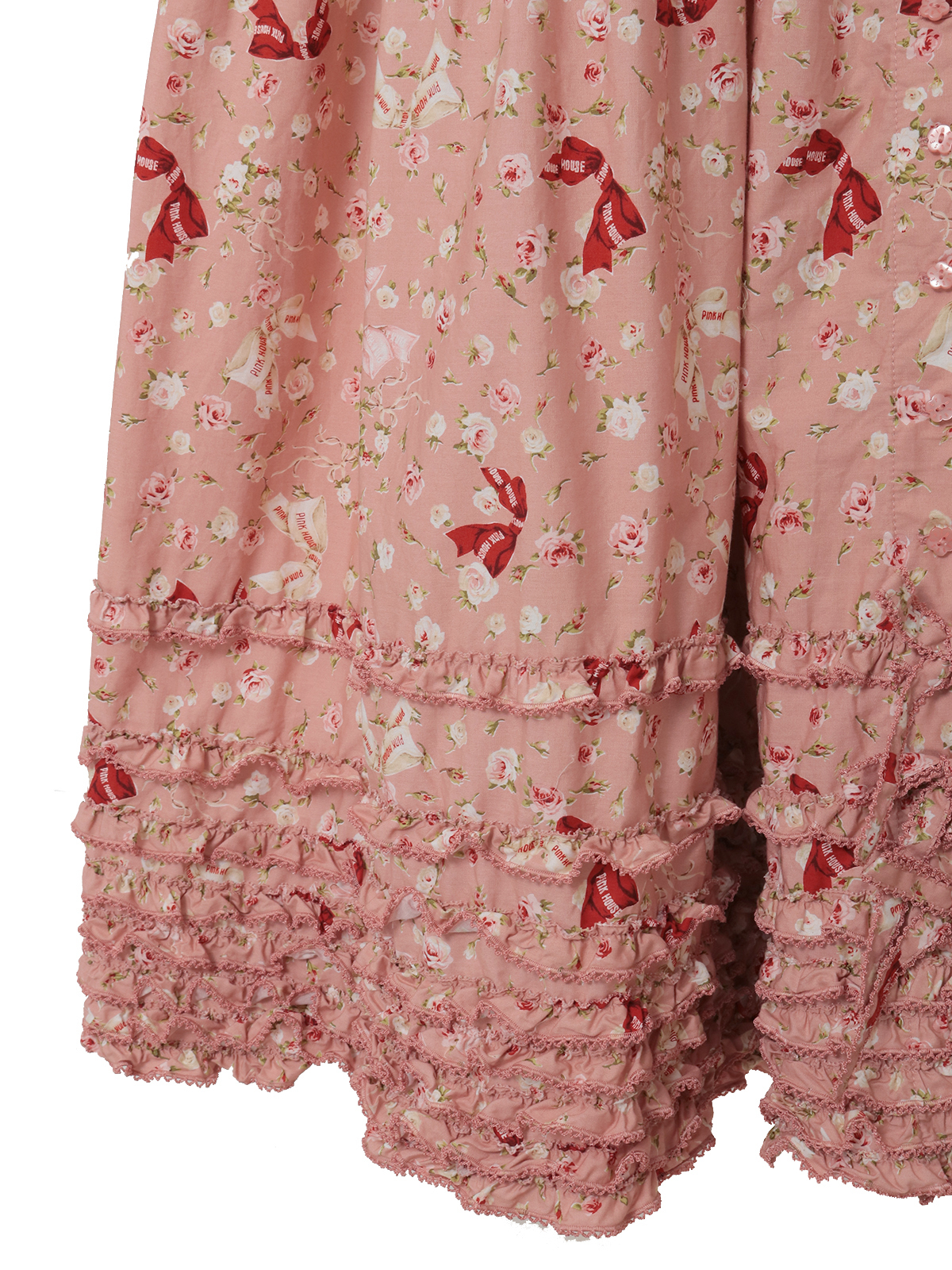 ロゴリボンとちいさなバラの柄が可憐なイメージのプリント。