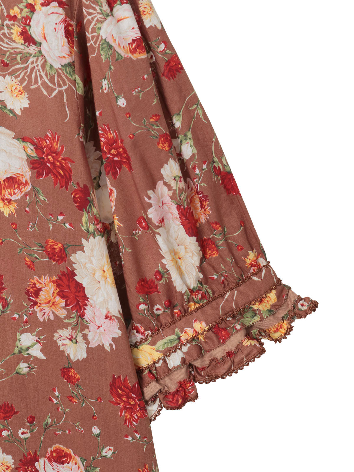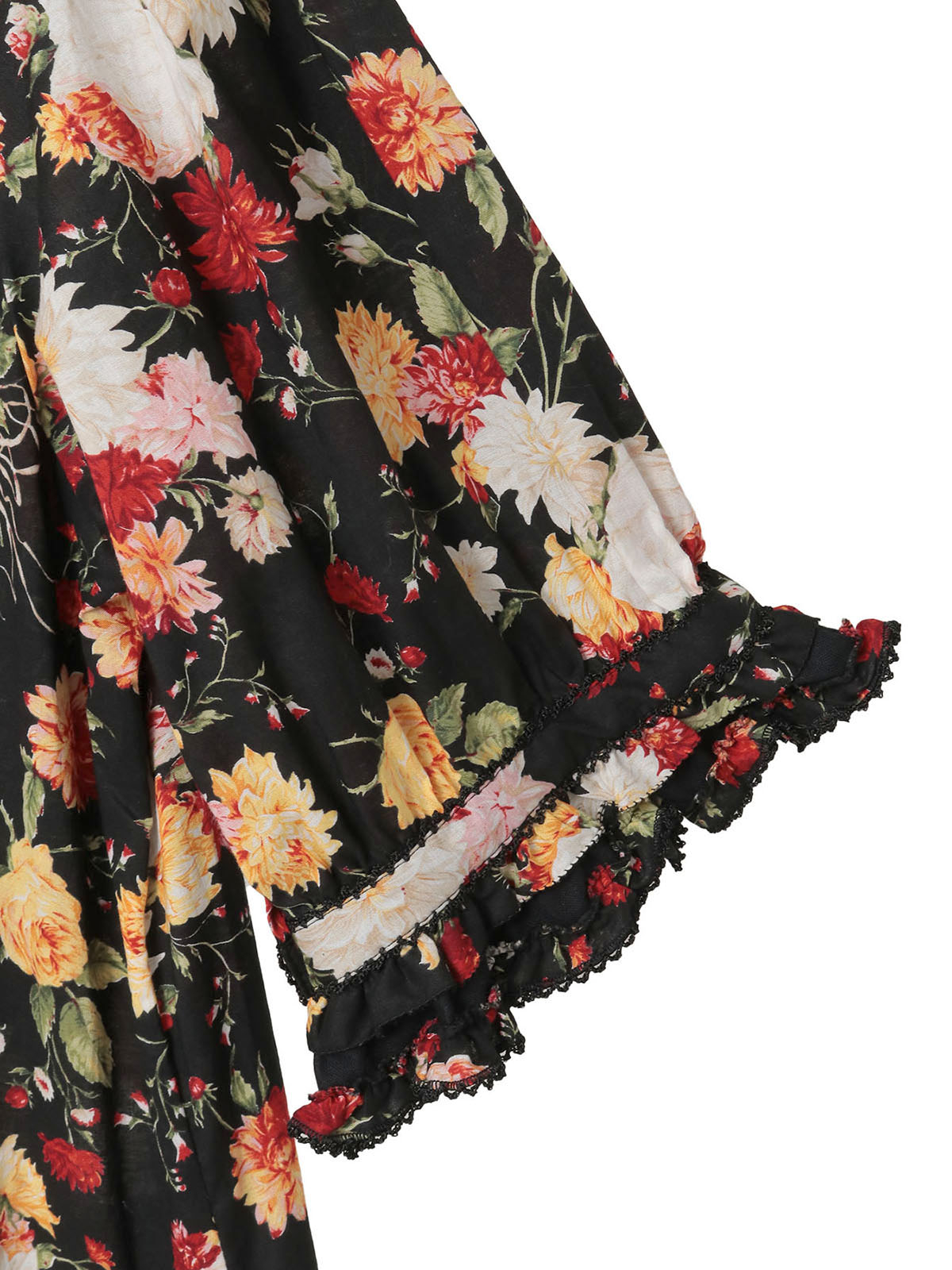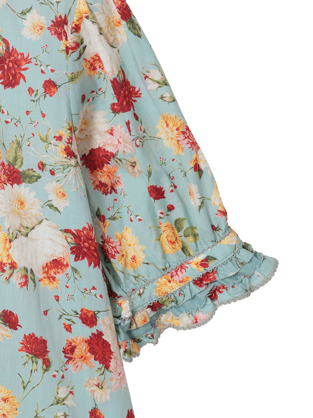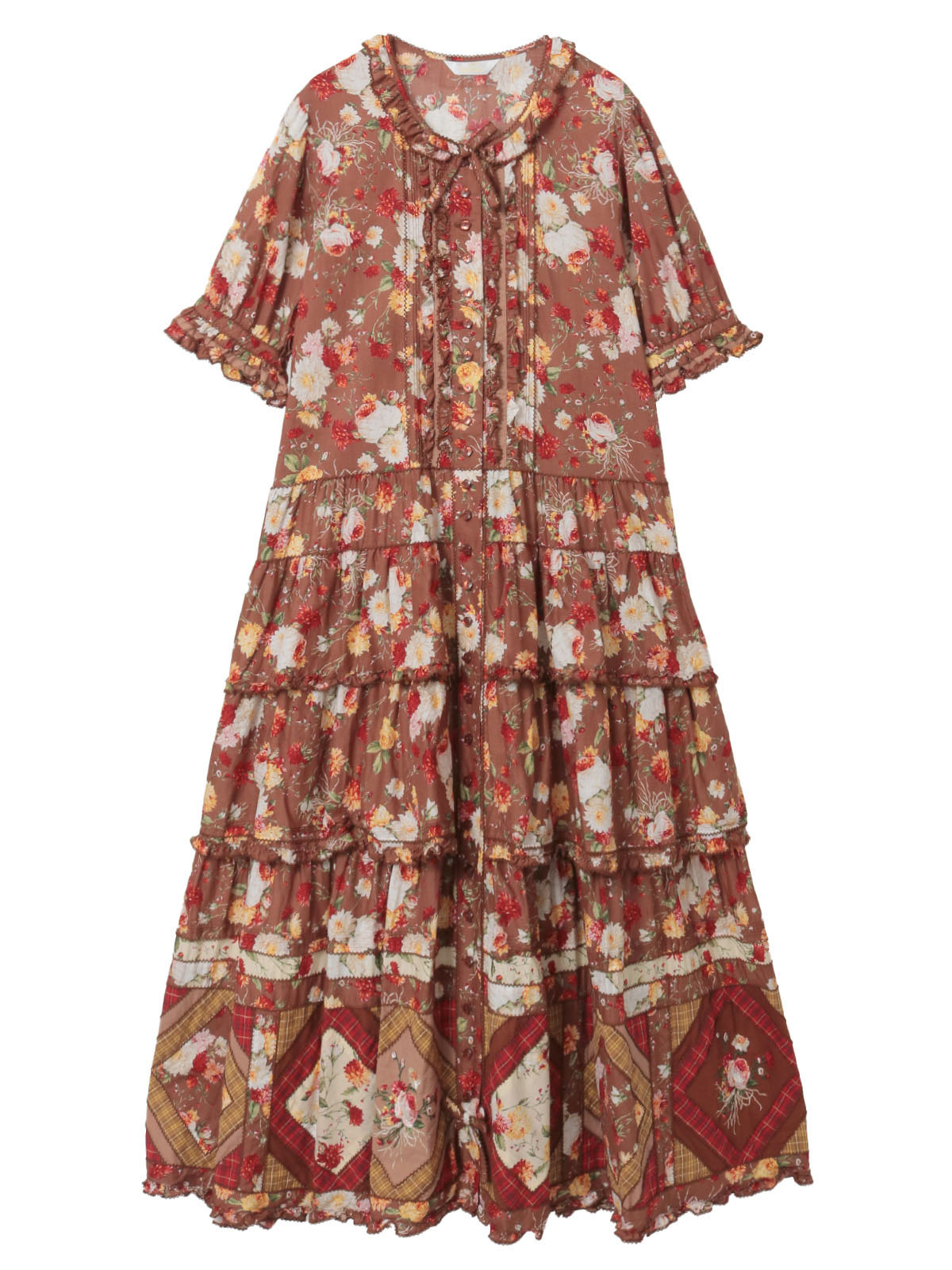 裾まわりには、「ジョセフィ―ヌプリント」をアップリケ風にしてコードチェックと無地ローンを組み合わせたパッチワーク風のデザインがとても華やか。