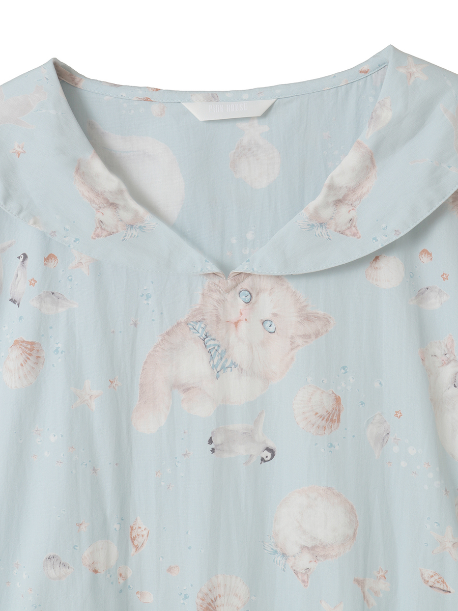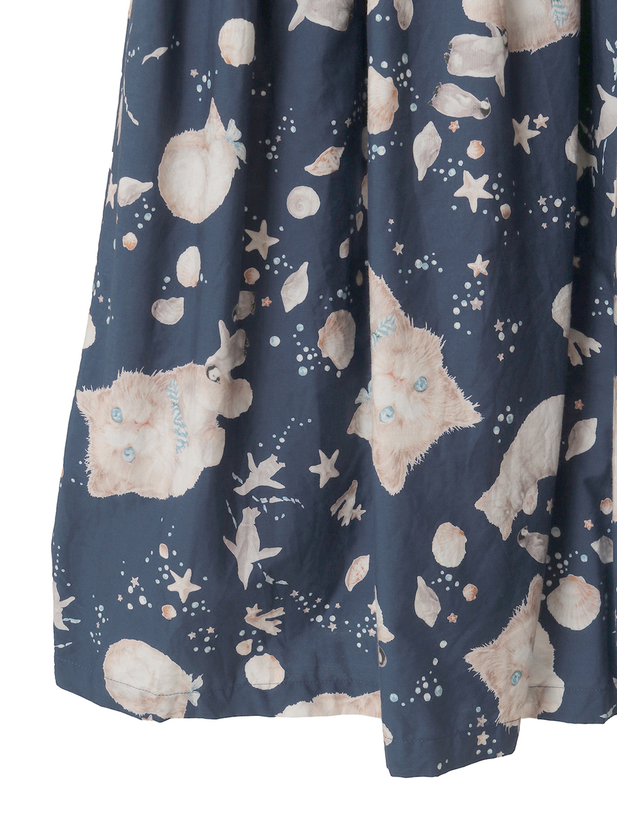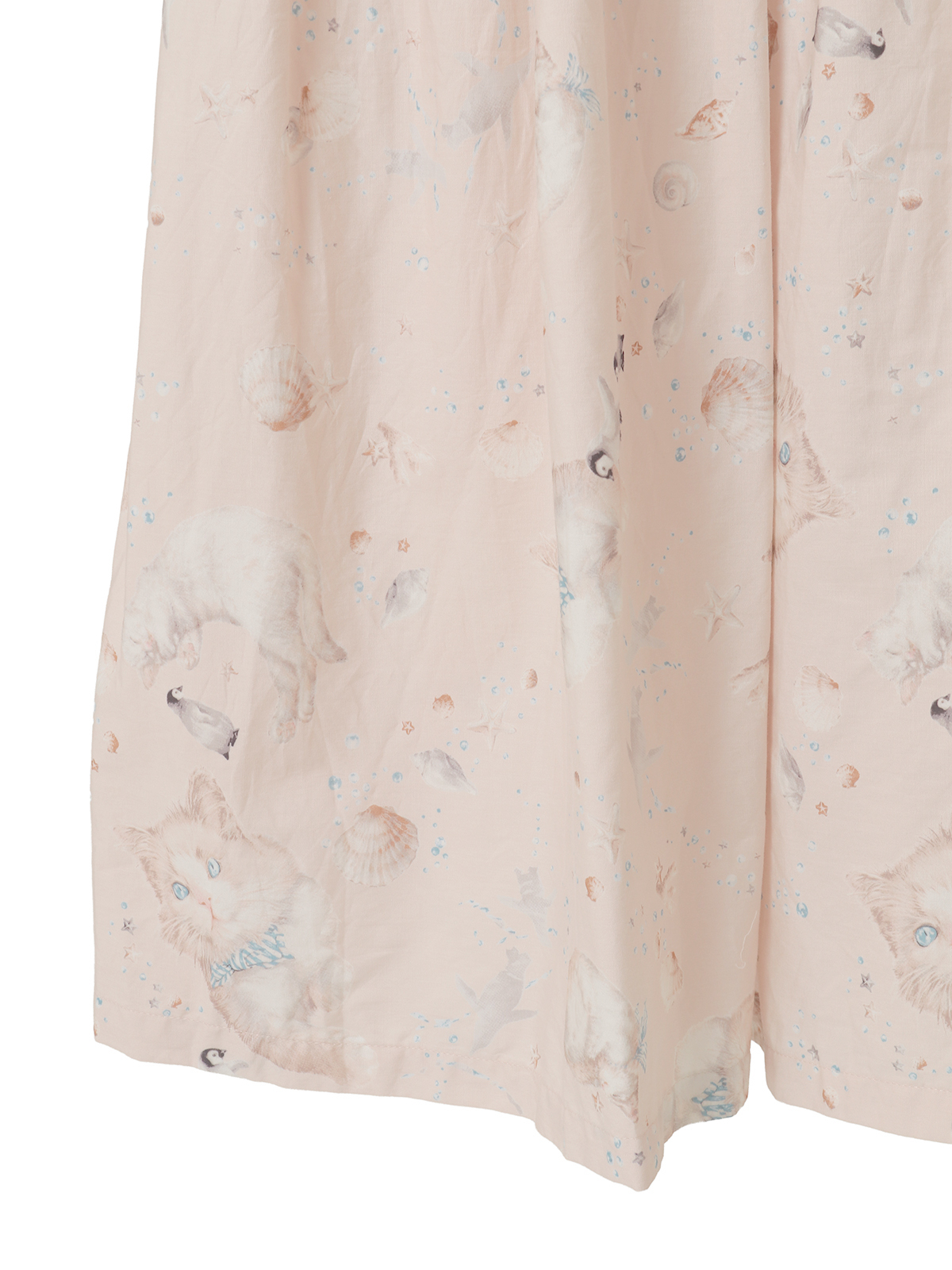 柔らかな猫たちと貝がらのすこし不思議なプリントに。