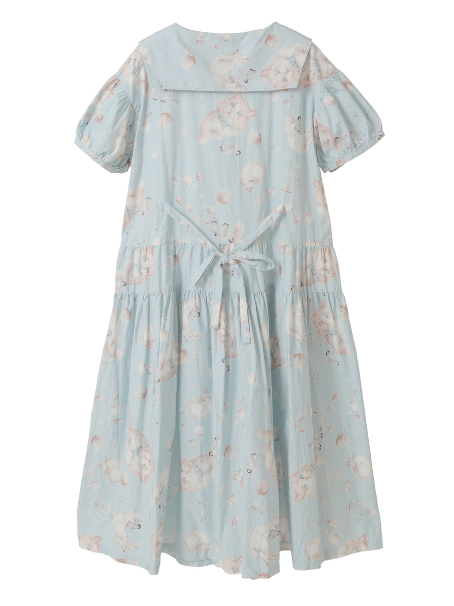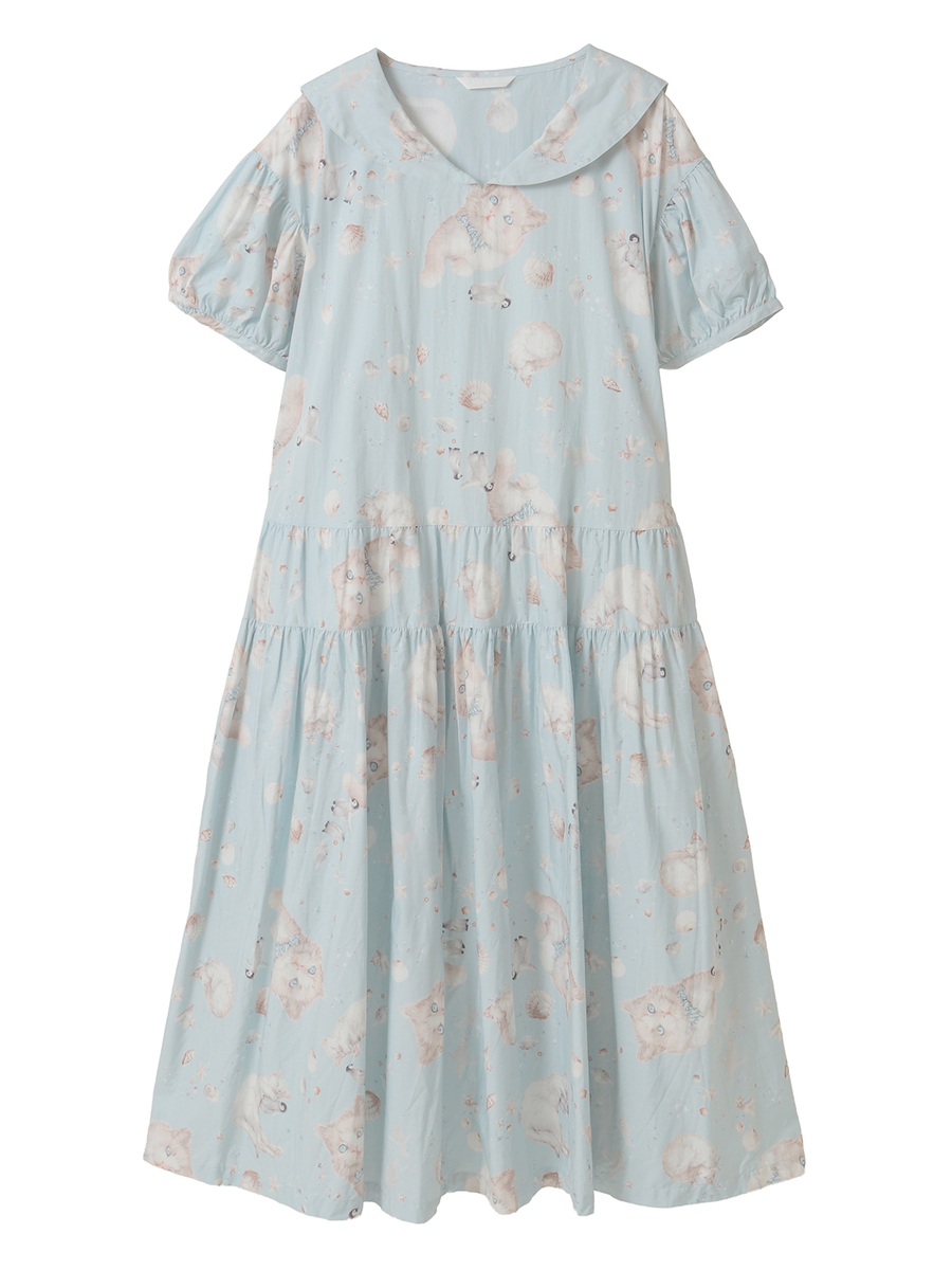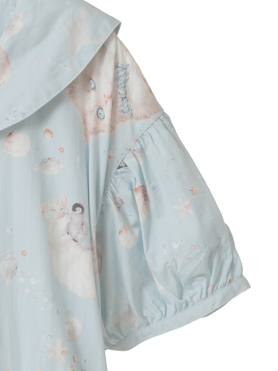 柔らかな猫たちと貝がらのすこし不思議なプリントに。