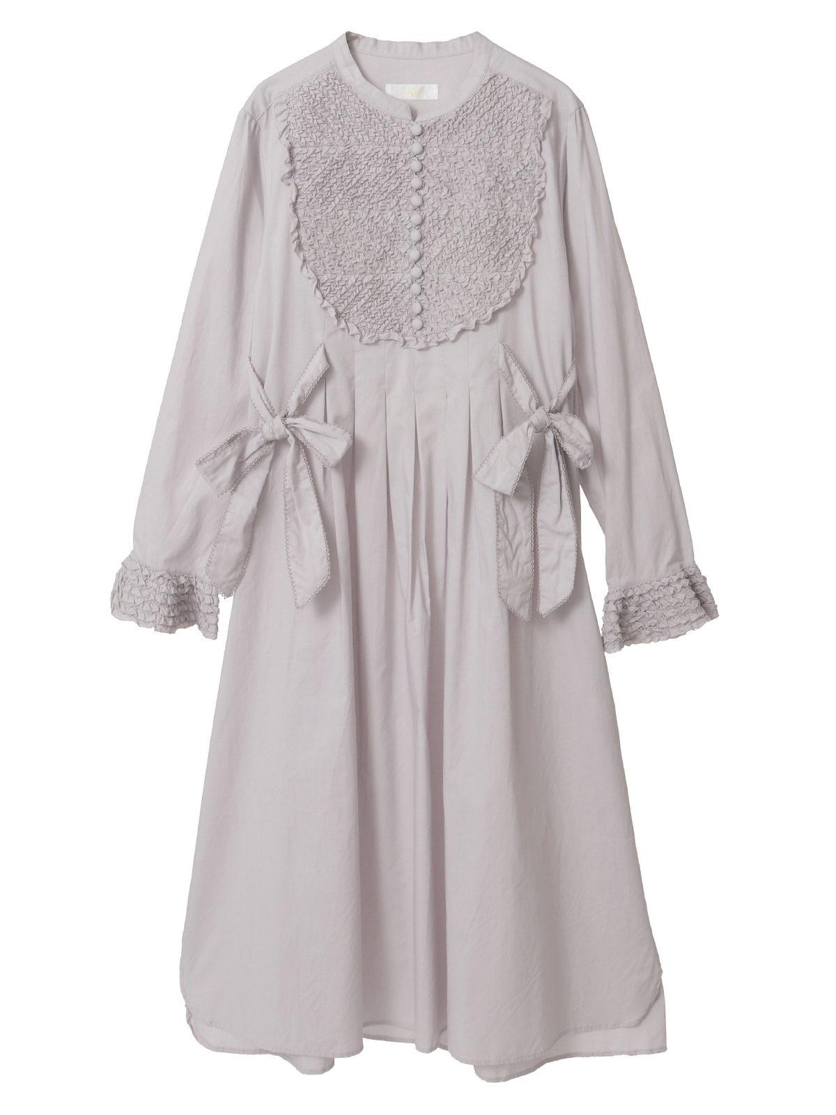 フロントのヨークの部分にあしらったフリルのデザインがとても華やかなワンピース。