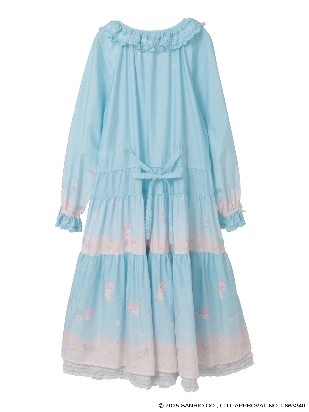 リトルツインスターズ(キキ&ララ)50周年のお祝いの気持ちを込めて、ピンクハウスのお洋服の柄として新たに描き起こしレイアウトしたテキスタイル。