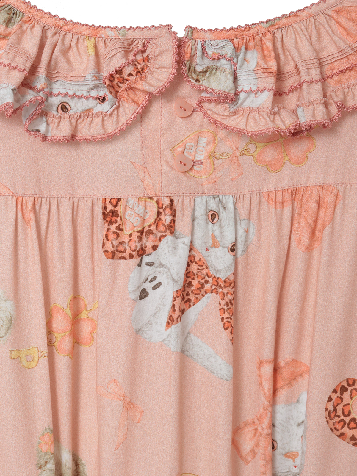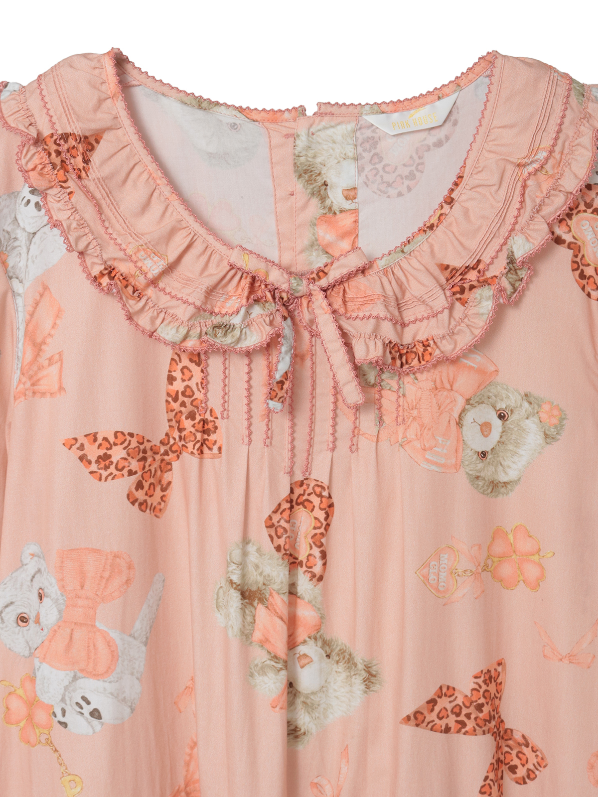 ピンクハウスらしいテディと、愛猫家のメンバーからネコをそれぞれモチーフに、メンバーに見たててコラージュした「ももクロベアプリント」