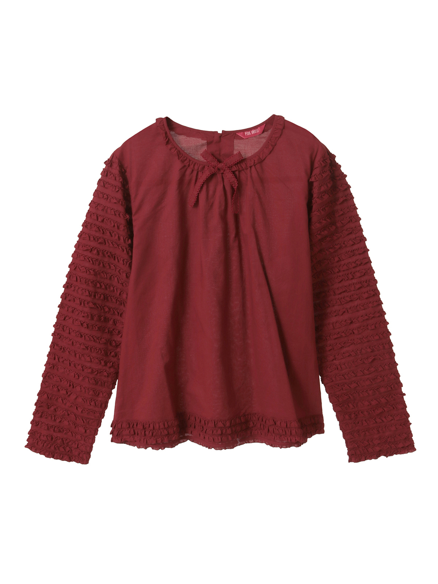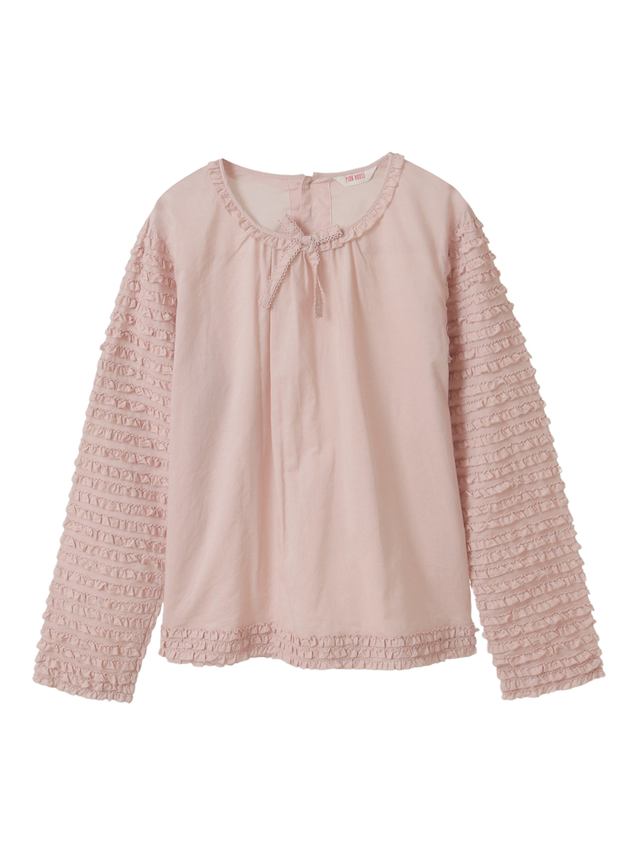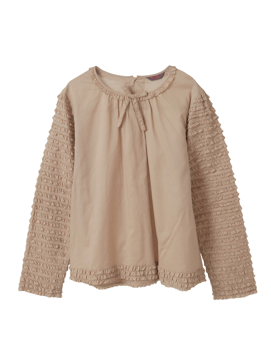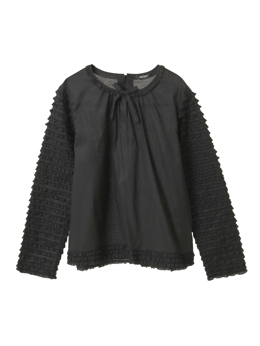 これから秋にかけて重宝しそうな袖フリル使いの綿ローンのブラウス。