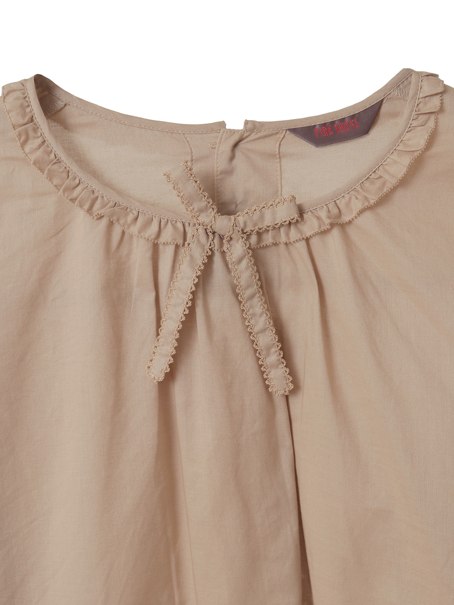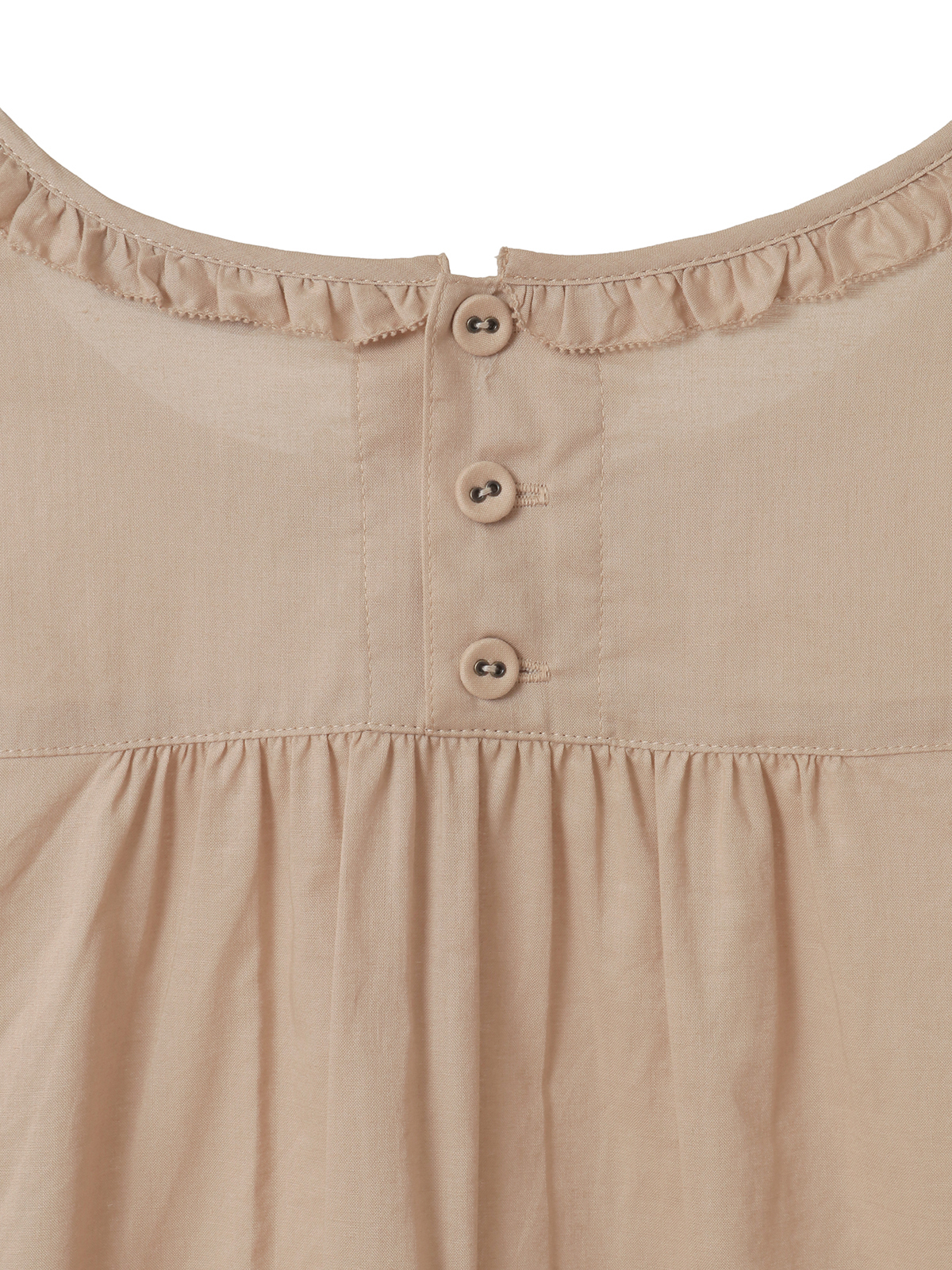 首まわりも裾まわりも軽くフリルをあしらっているので、重ねたときにも可愛く決まります。