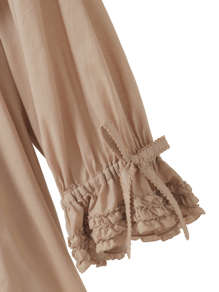 ゆったりとしたラグランスリーブで着やすく、フリル感たっぷりの可愛らしいお袖も肘が隠れる長さで着合わせもしやすいです。