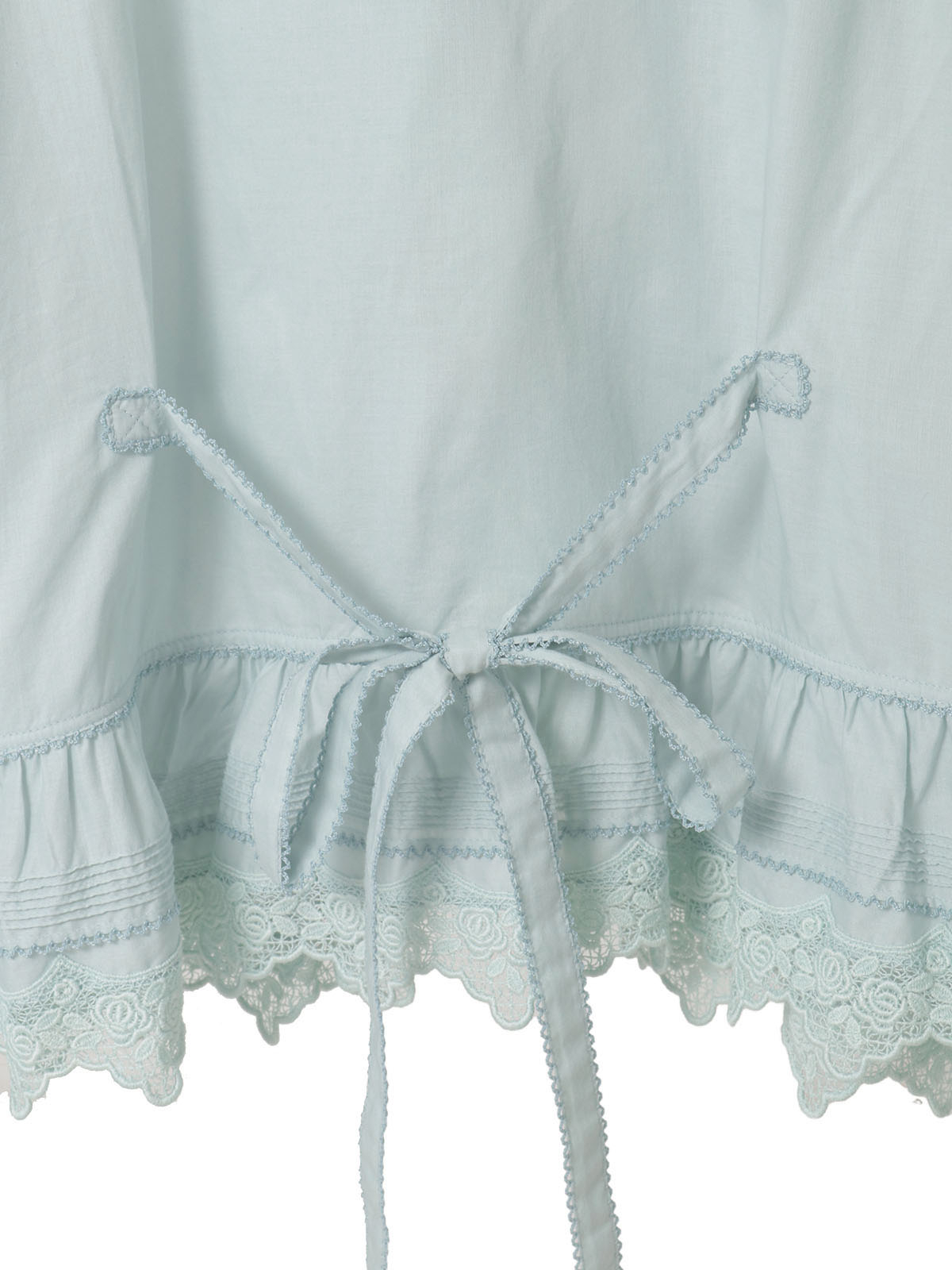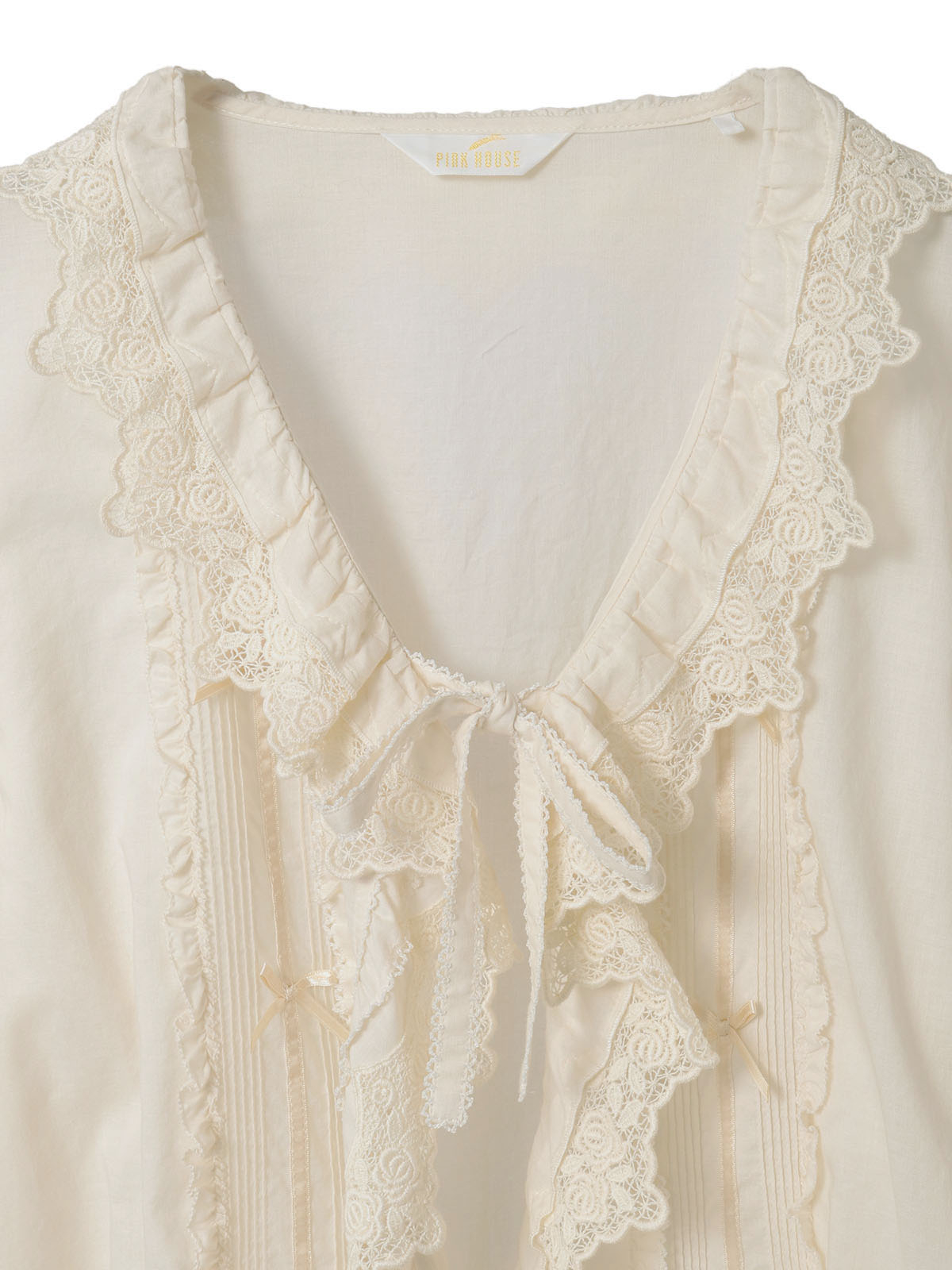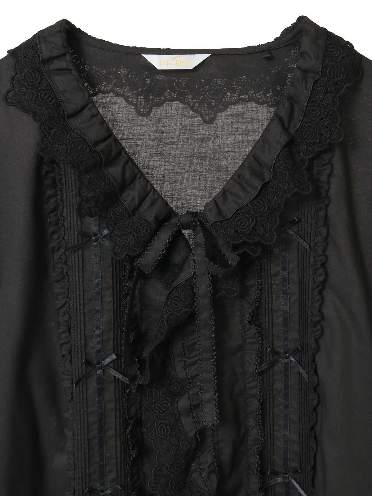 ローズの刺繍を施したケミカルレースを贅沢にあしらった綿ローンのブラウス。