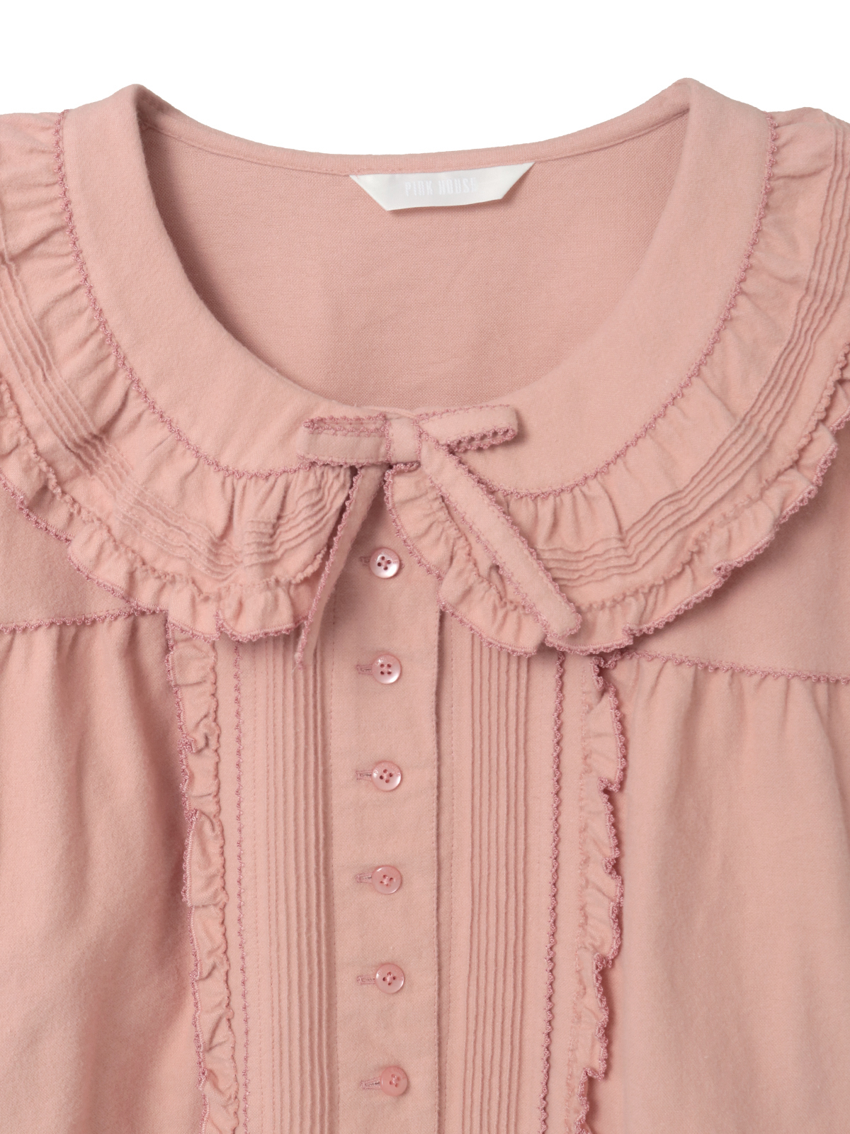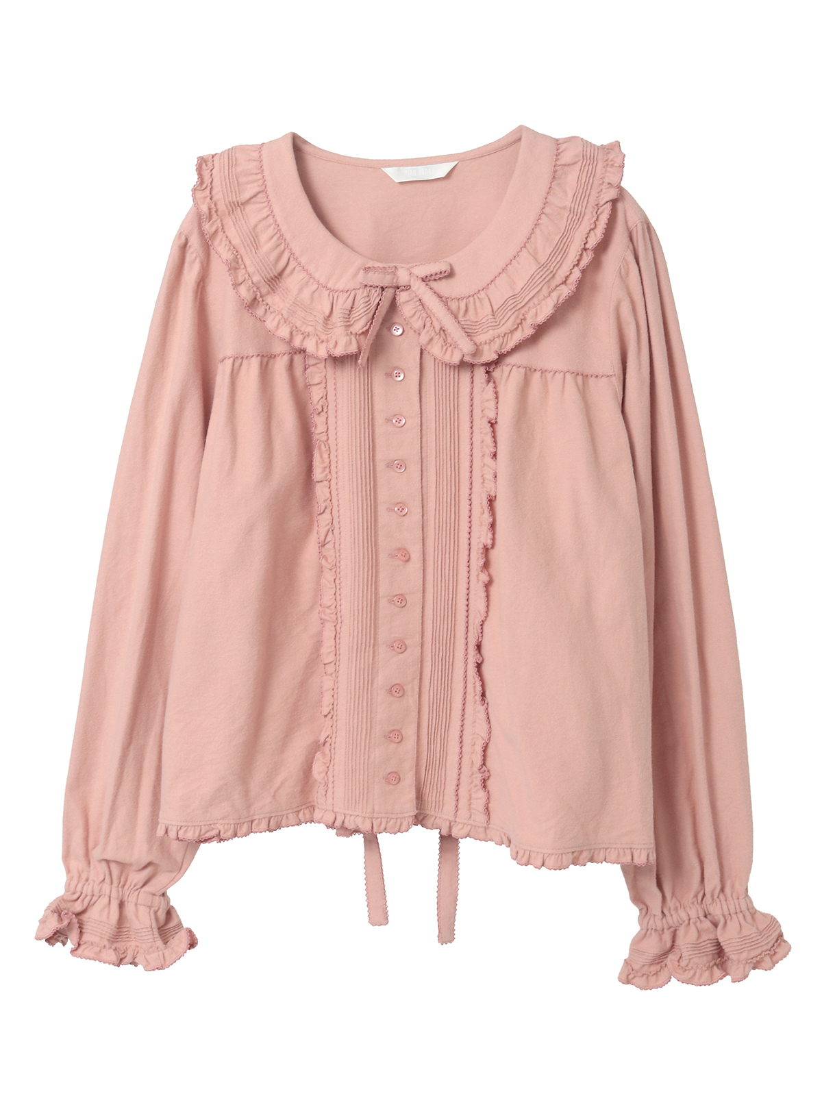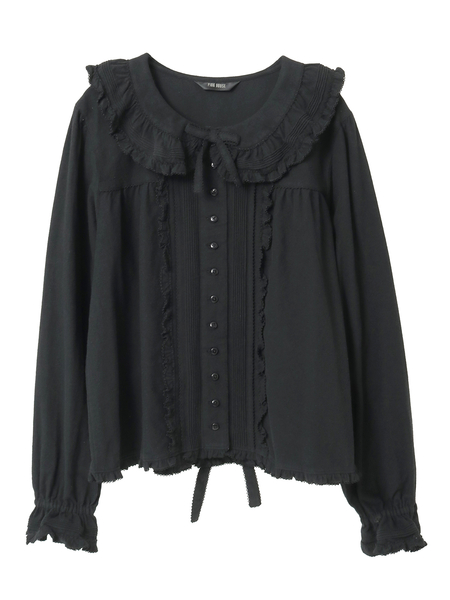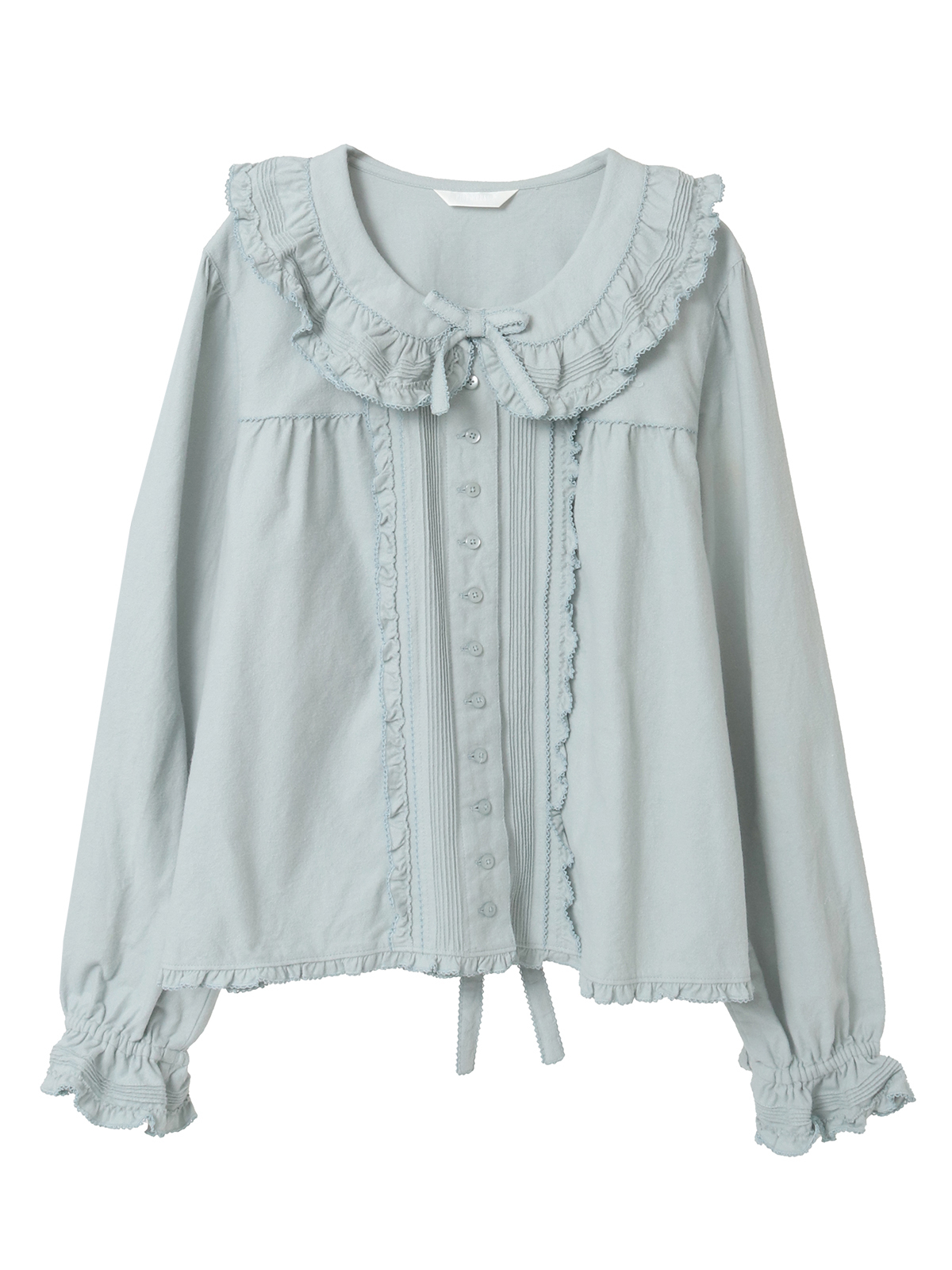 丸みを帯びたフリル襟が可愛らしいブラウス。