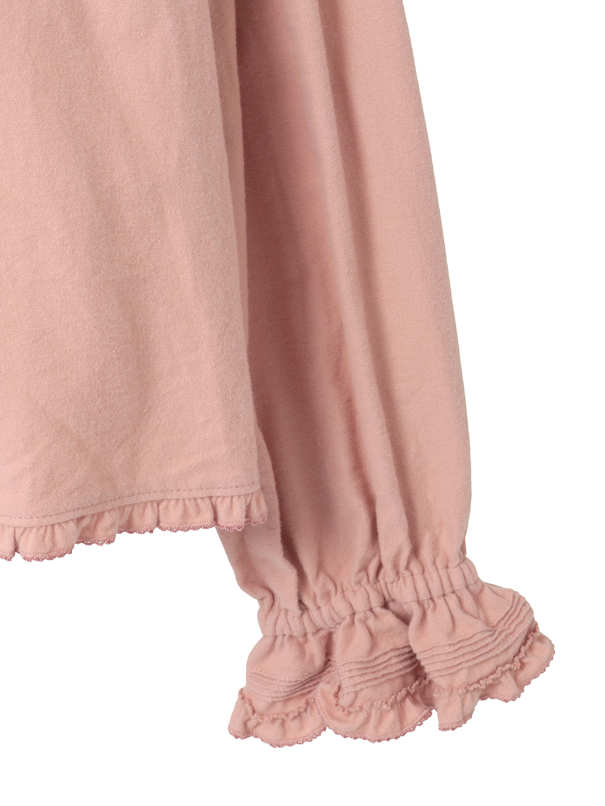 フロント部分にはタックとフリルを重ね合わせた比較的シンプルめなブラウスで着合わせがしやすいタイプ。