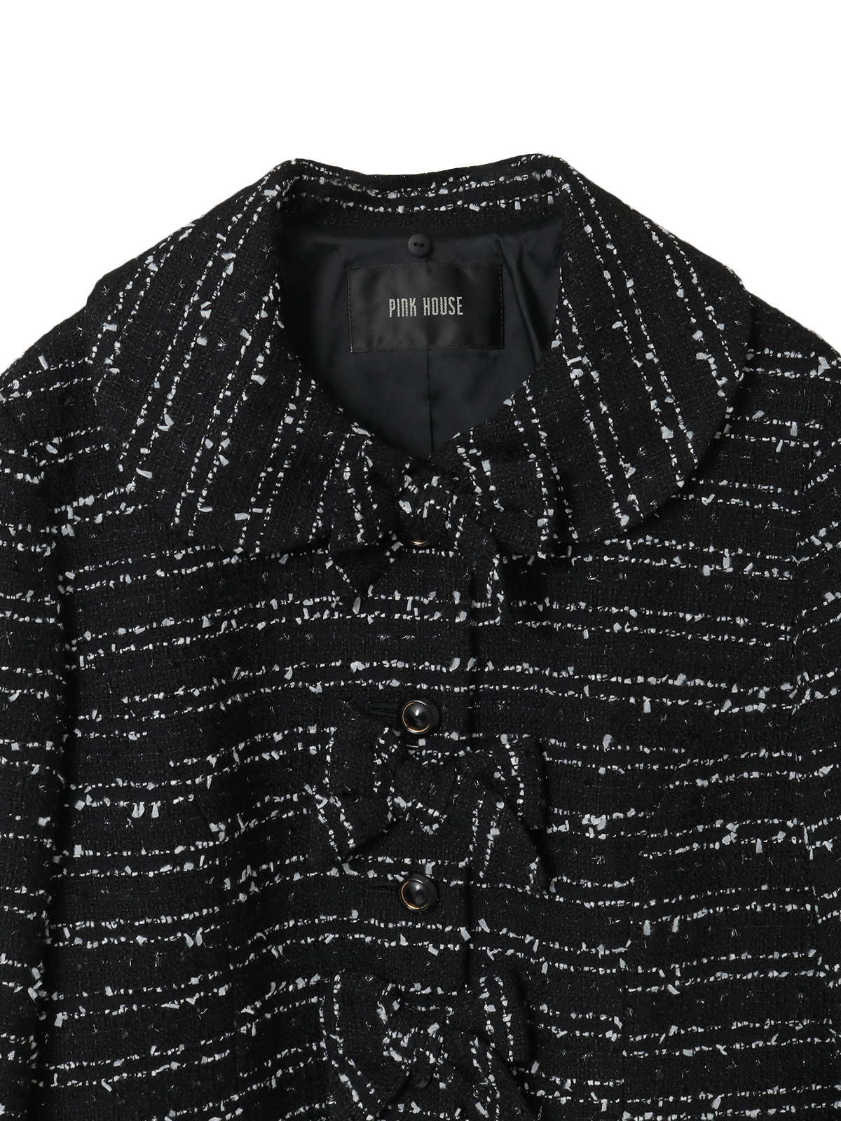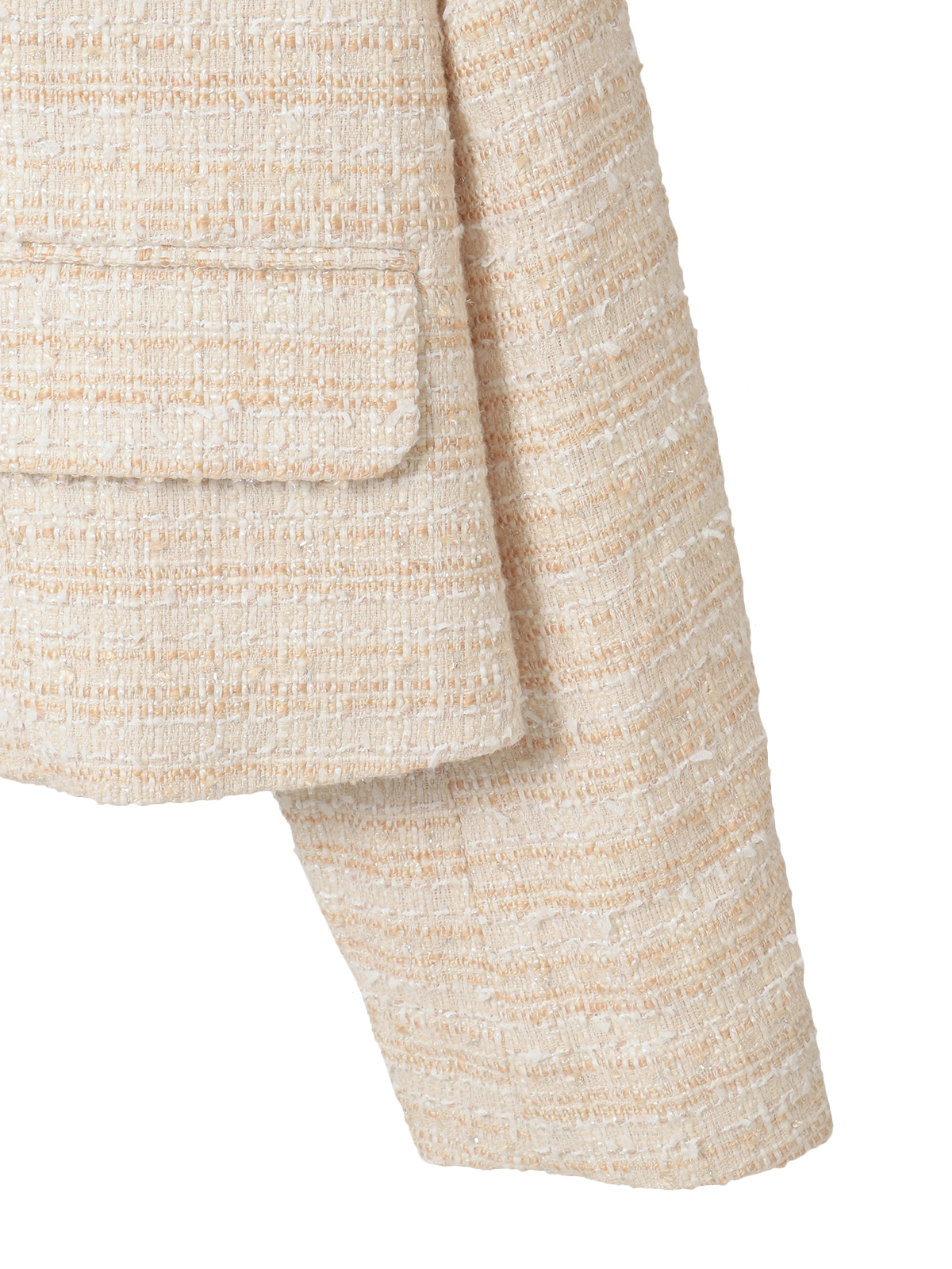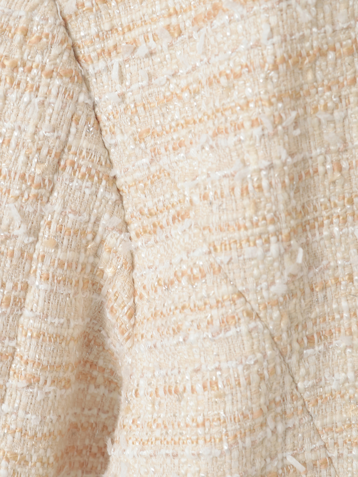 繊細な色合いの織りが上品にキラリと光るちいさな星のようなラメがポイントのファンシーツイードのジャケット。
