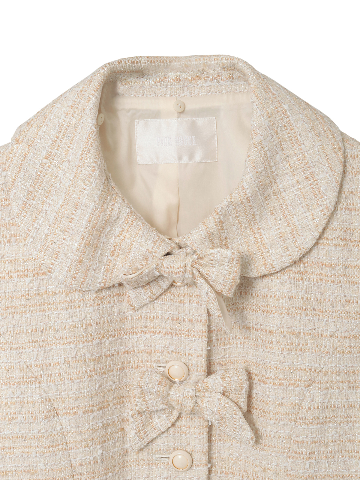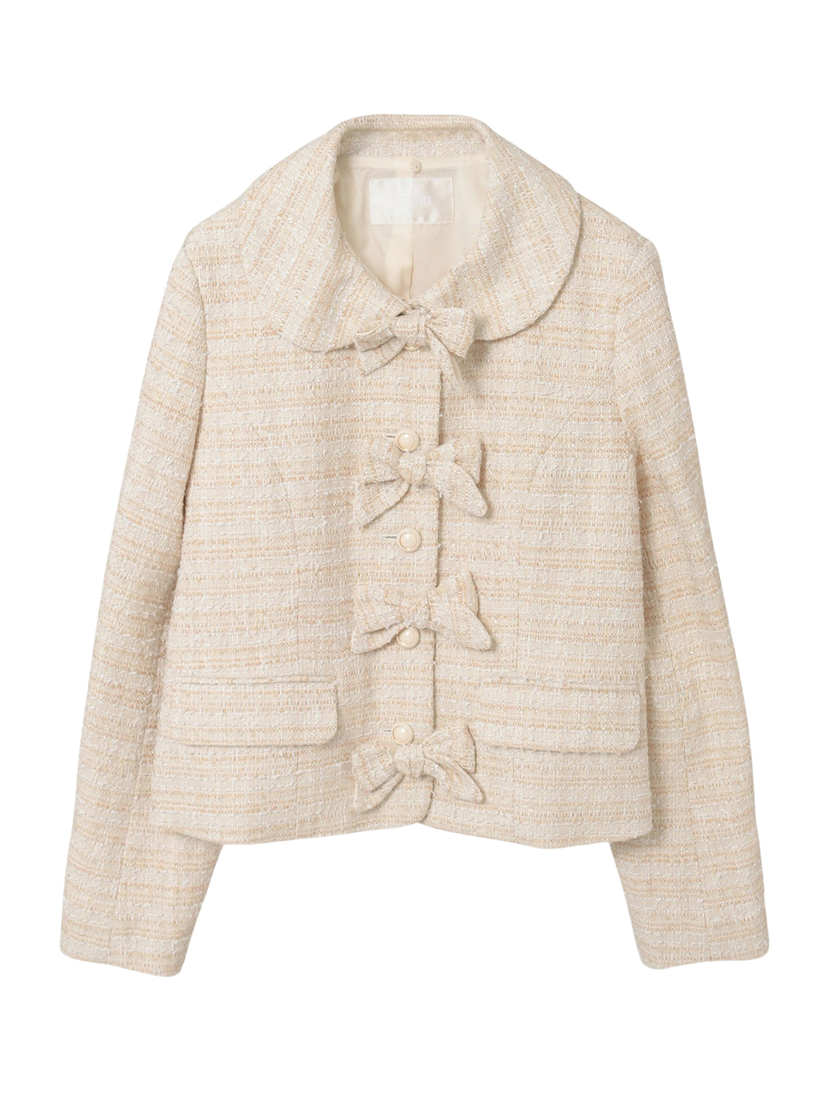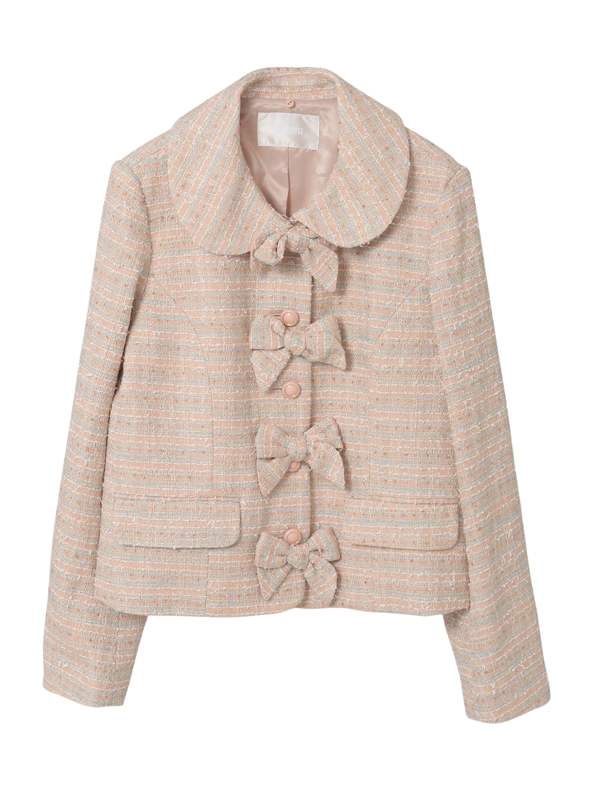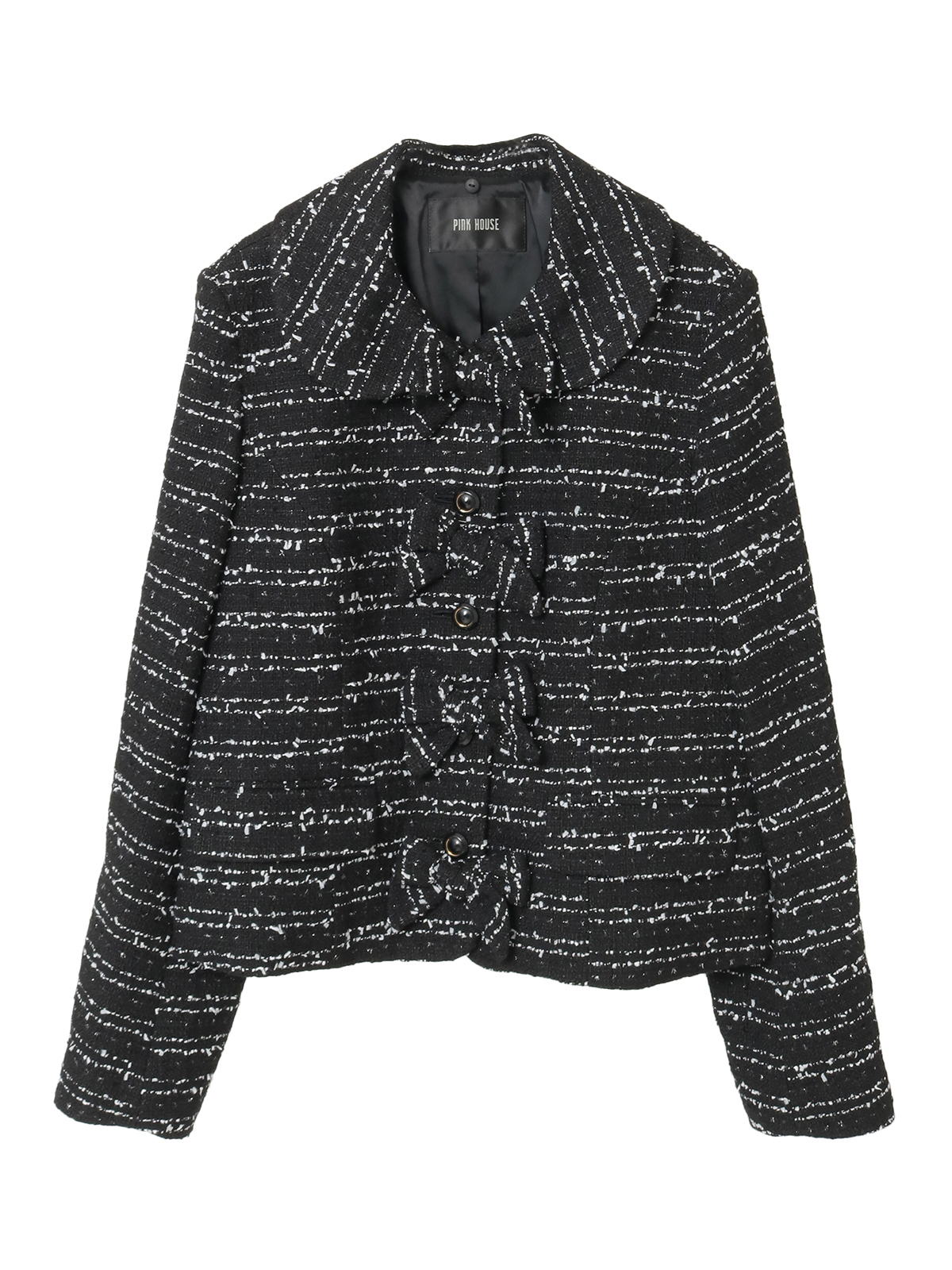 繊細な色合いの織りが上品にキラリと光るちいさな星のようなラメがポイントのファンシーツイードのジャケット。