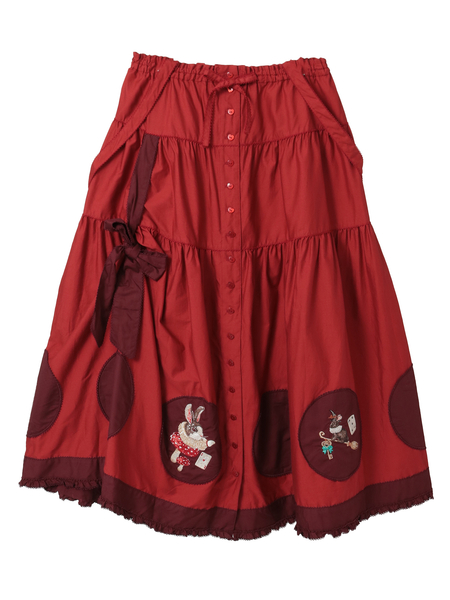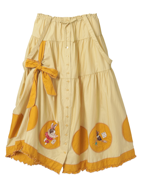 裾まわりには、大きな円を描くサークル型の”Rabbit holeワッペン”をぐるりとあしらったパッチワーク風のデザインが可愛らしい。