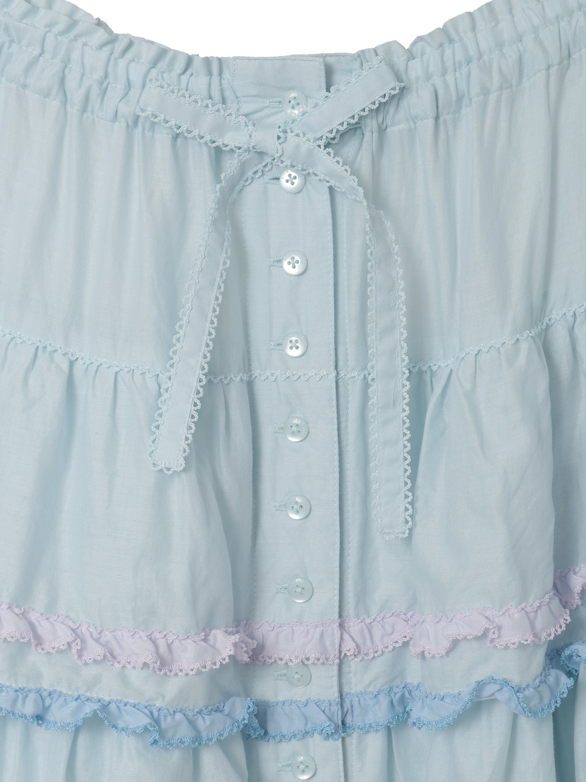 さらにそれぞれの段々フリルにも配色フリルをあしらった豪華で華やかなフリルスカートに。