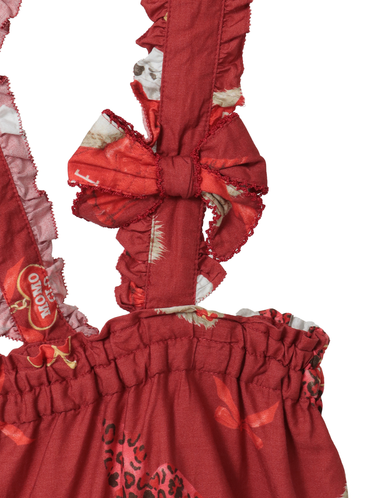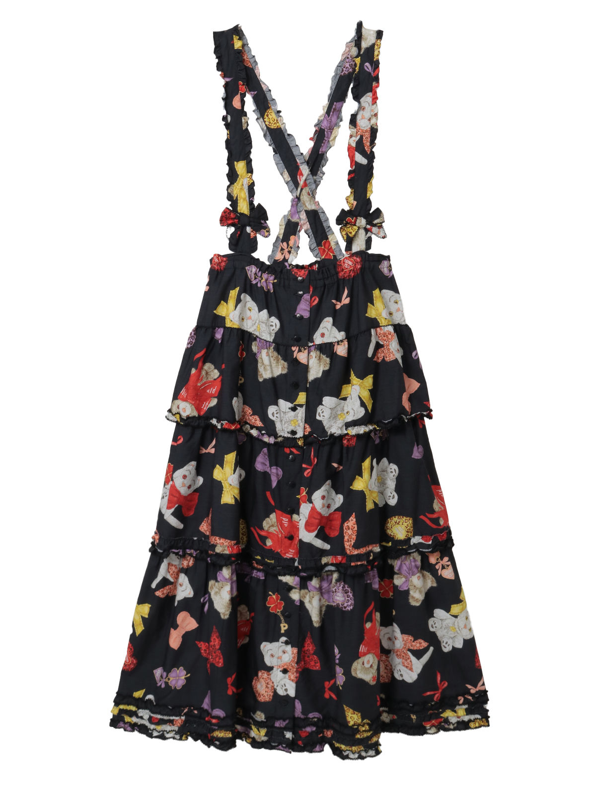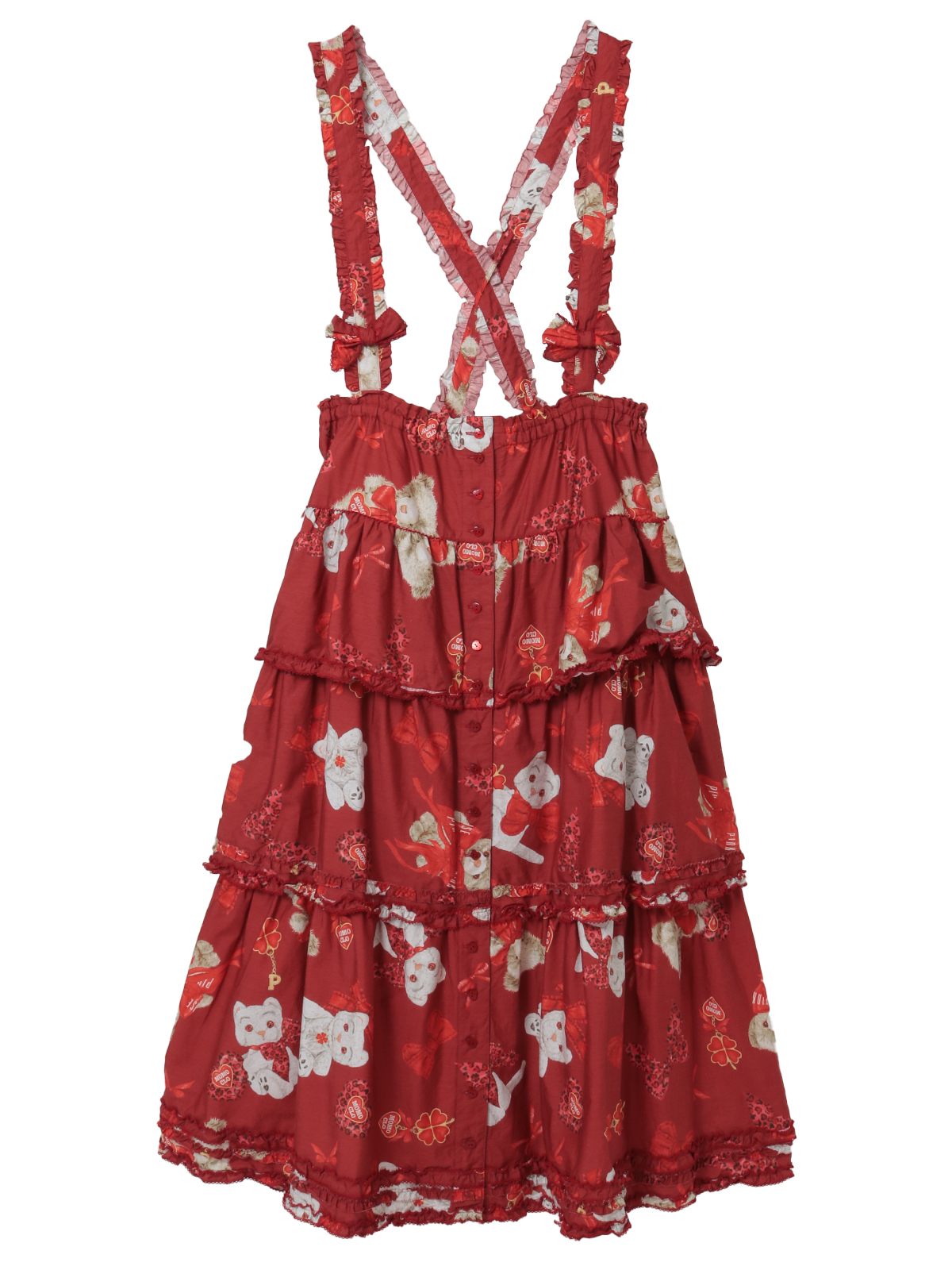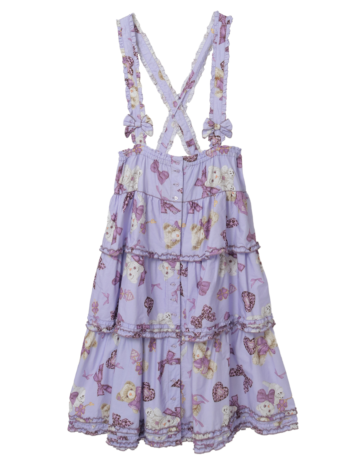 吊り紐が付いていて吊りスカートとしてもお楽しみいただけます。紐の先にはリボンモチーフをあしらって可愛らしく。