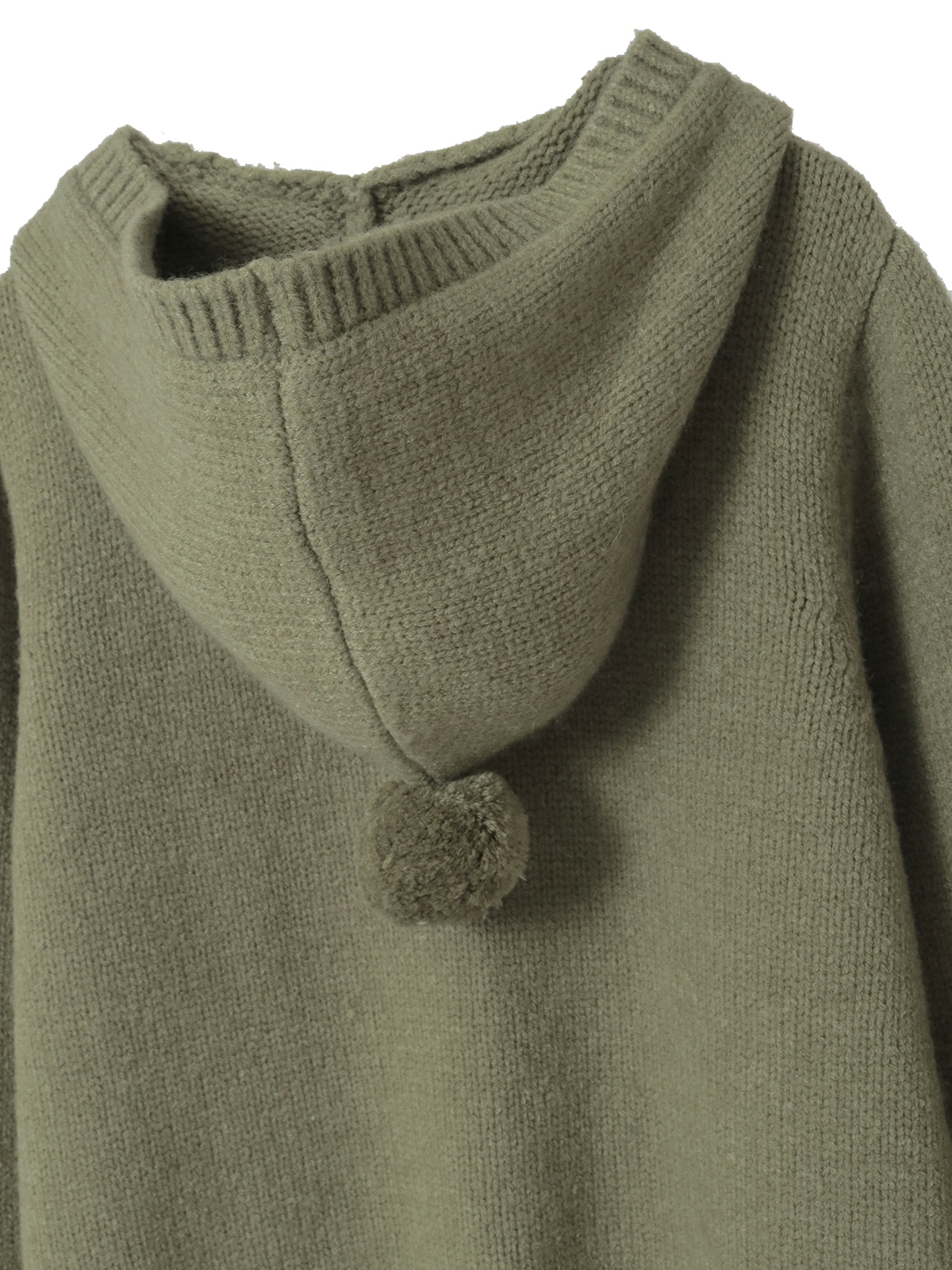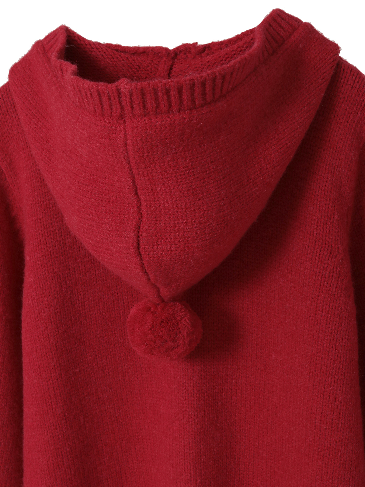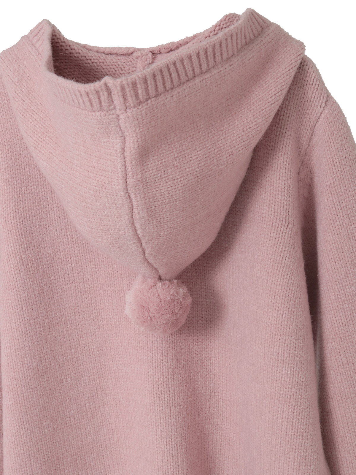 フードの先には身ごろと同じ色のポンポンが付いて可愛らしく。