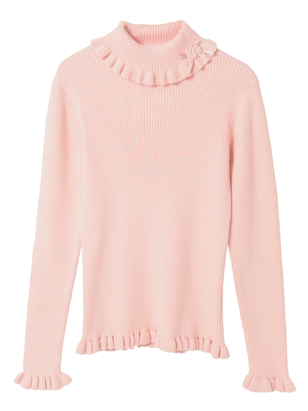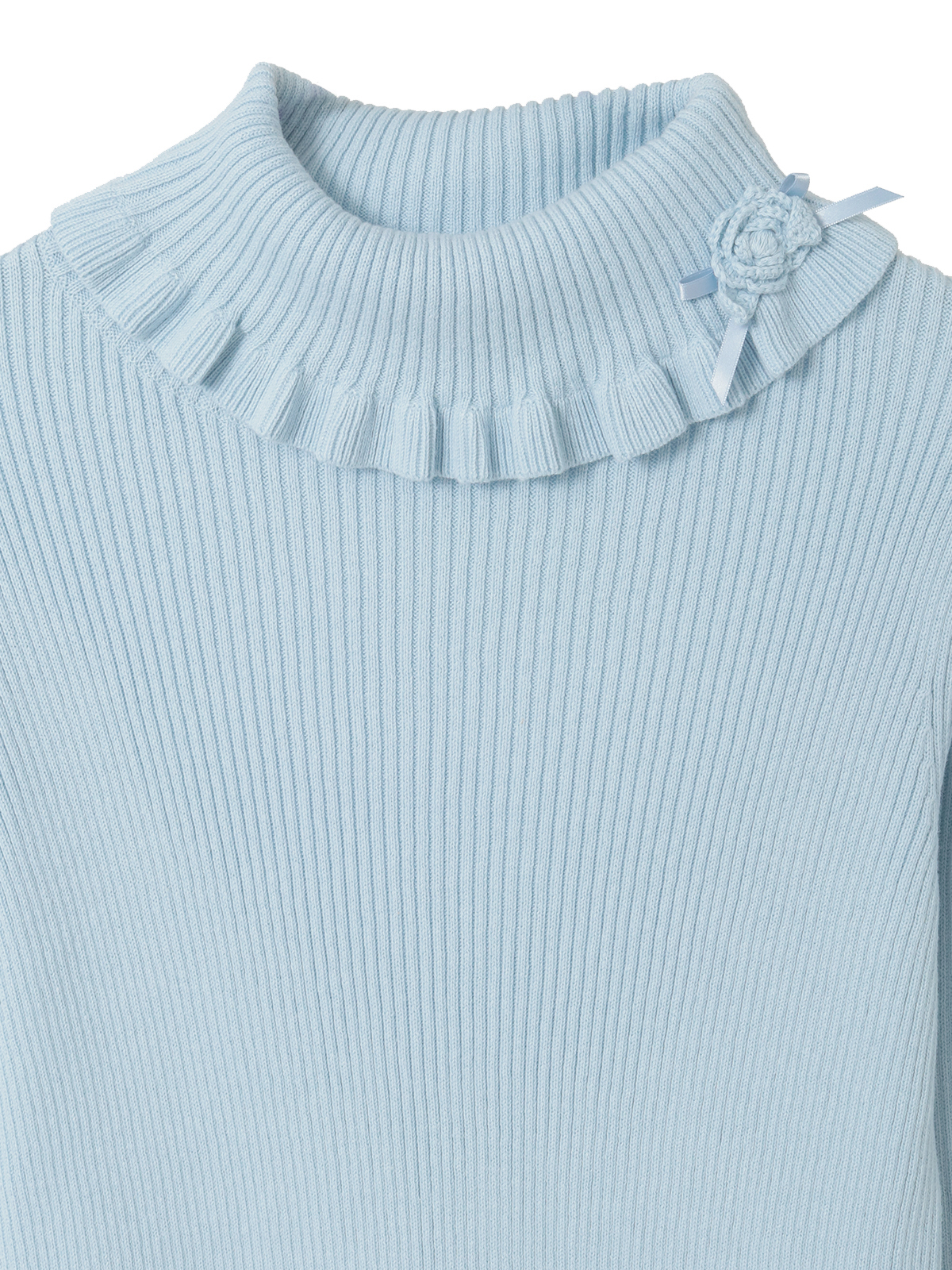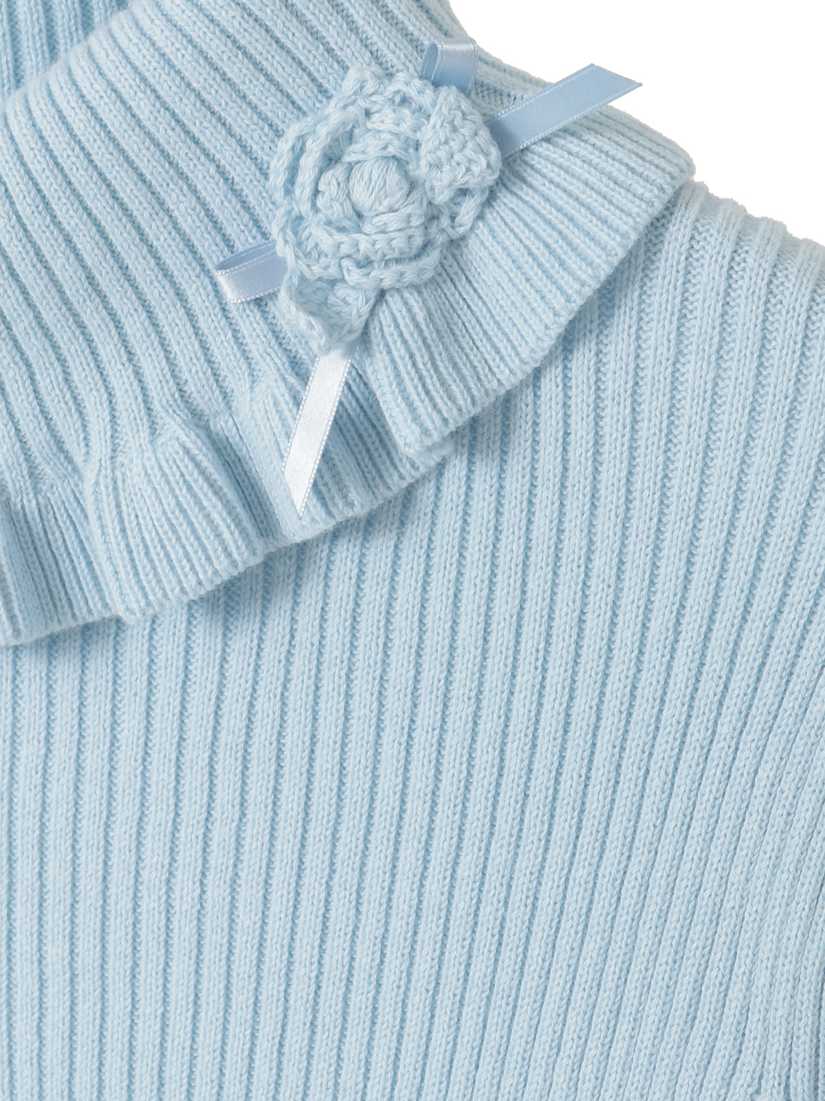 首もとのところには、お花のニットモチーフにリボンを添えて可愛らしくアクセントに。