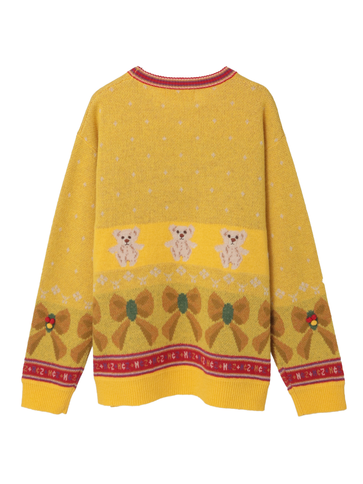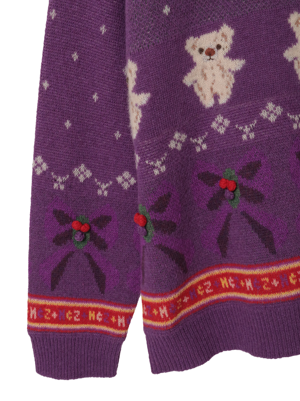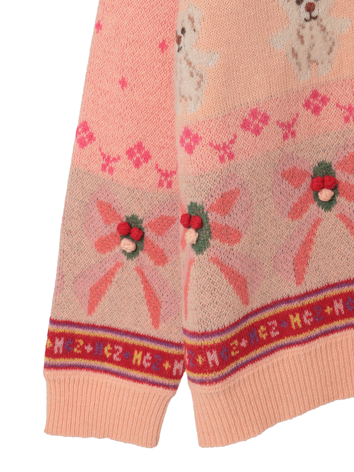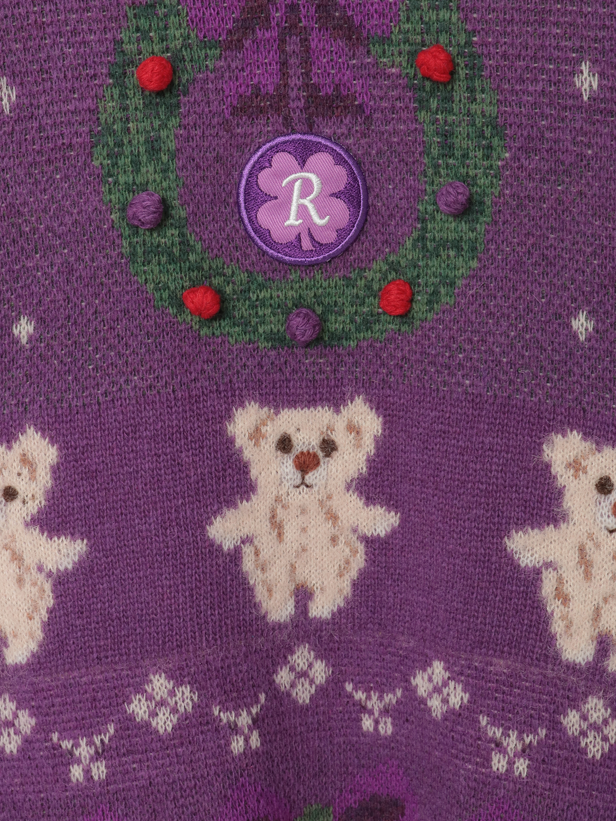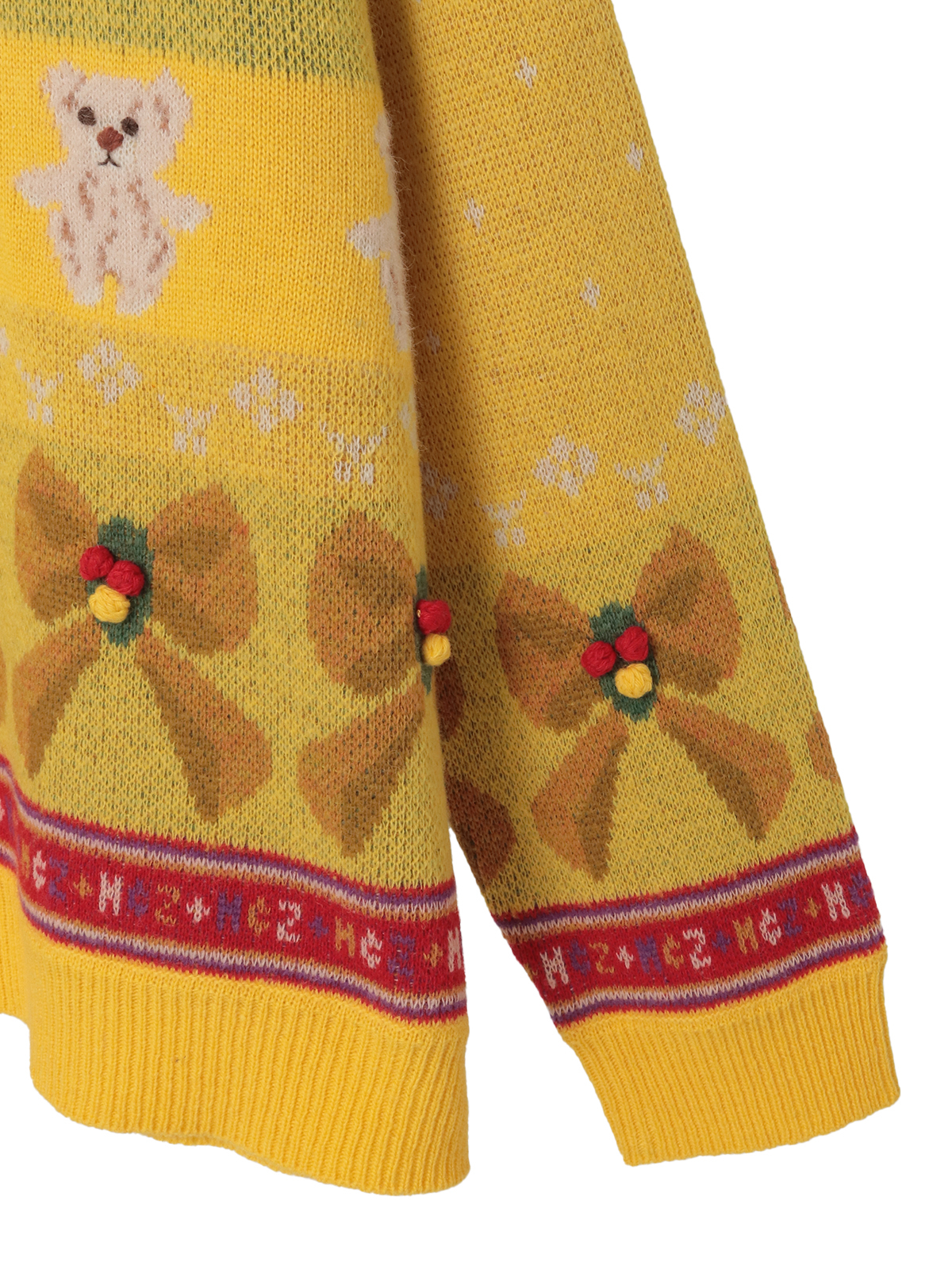 リースやリボンの飾りなど、これからのホリデーシーズンにピッタリなニット。