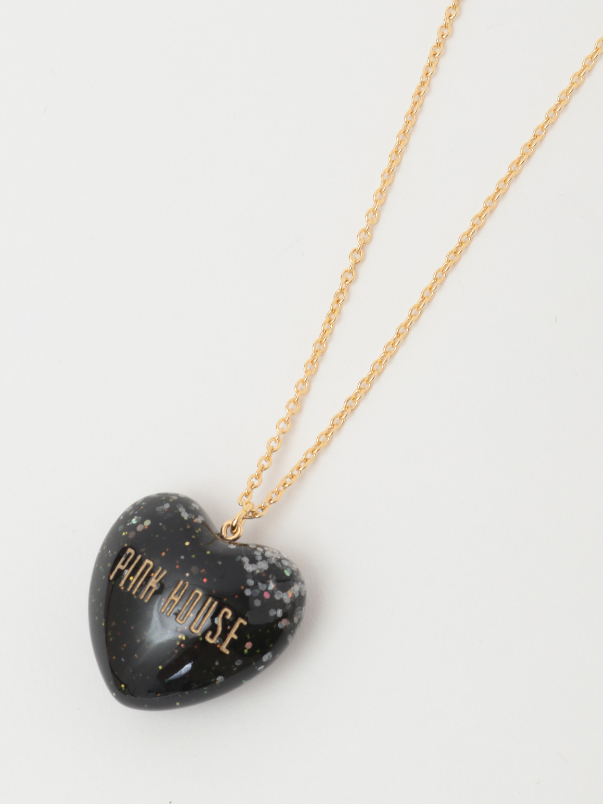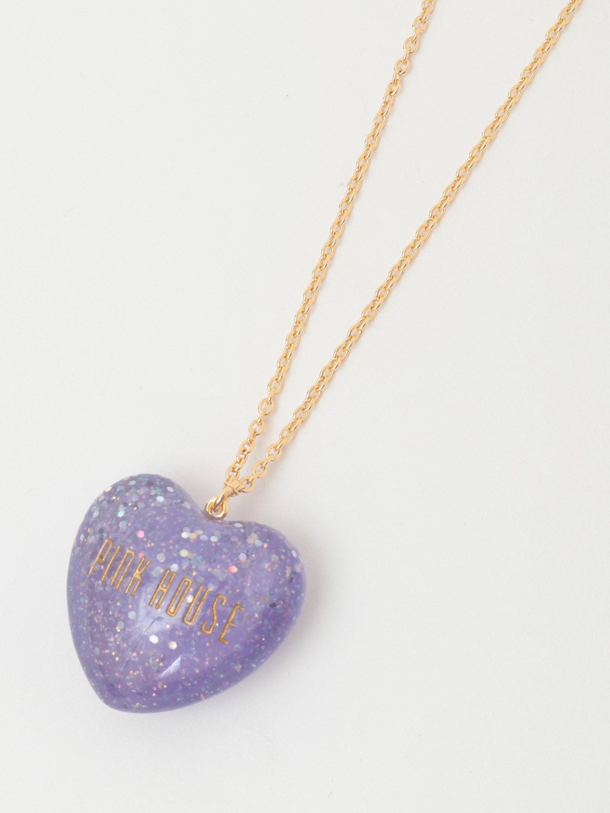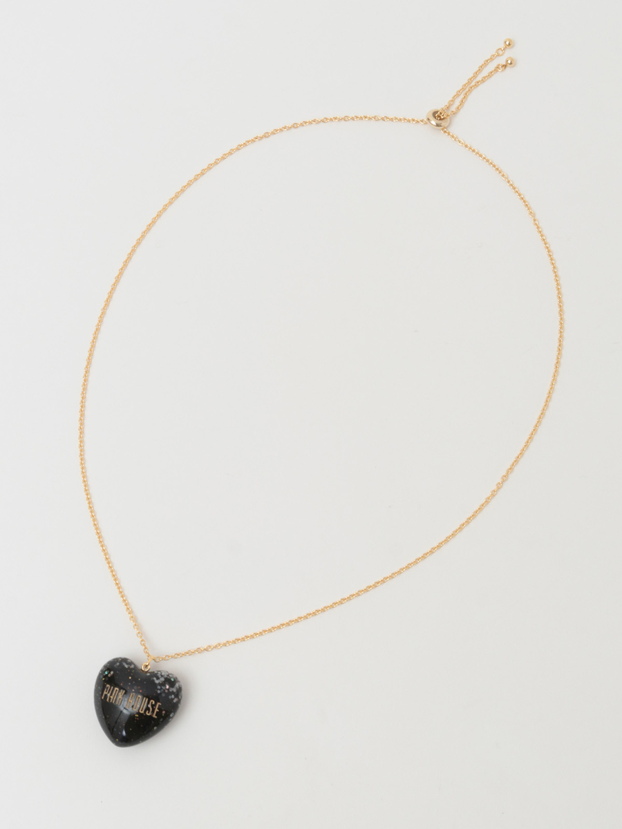 ころんとした立体的なハートモチーフはクリアな透明感があって、さらにキラキラと光るオーロララメ入りでインパクトたっぷりな仕上がりに。PINK HOUSEのロゴもしっかり刻まれています。