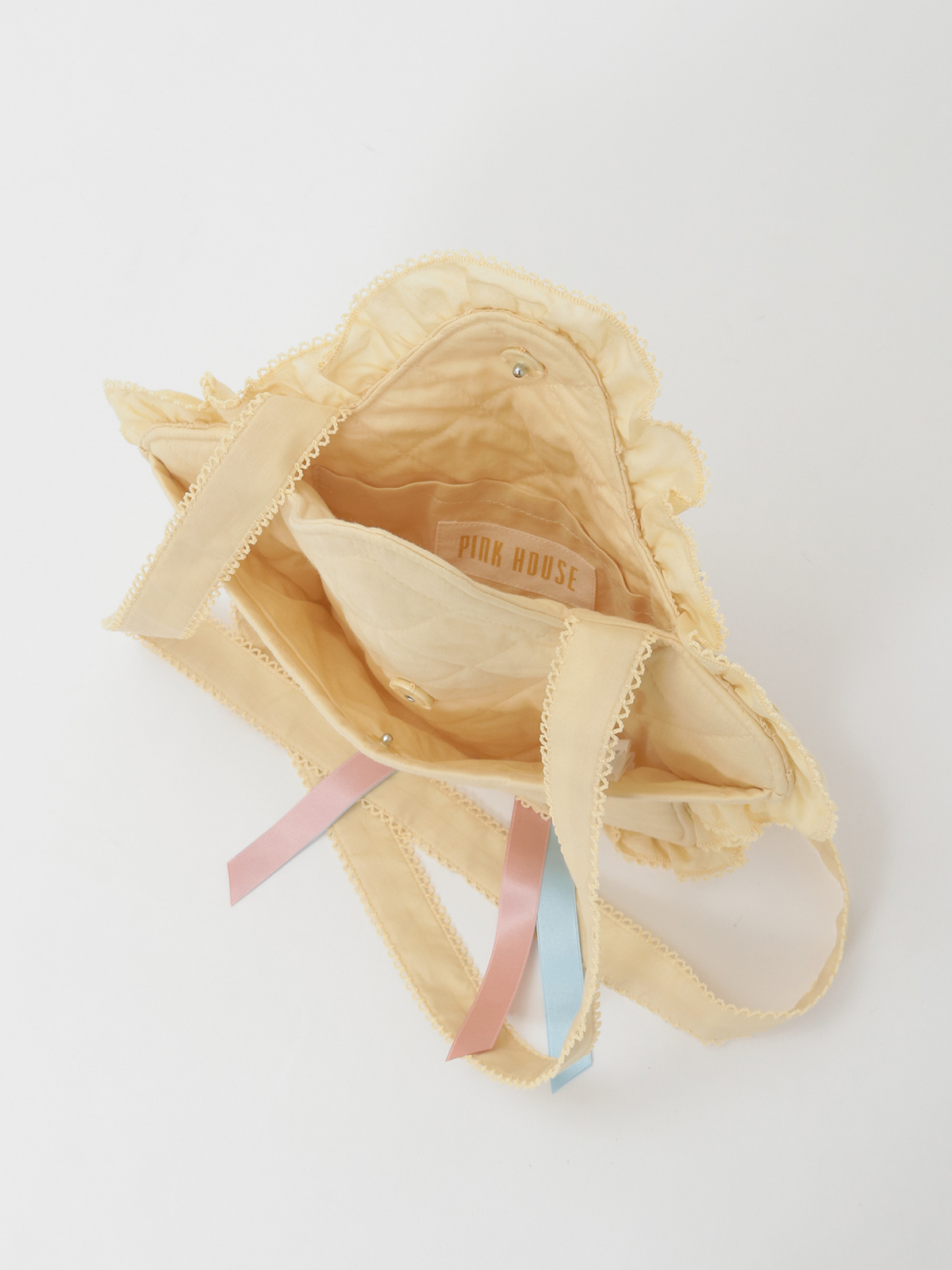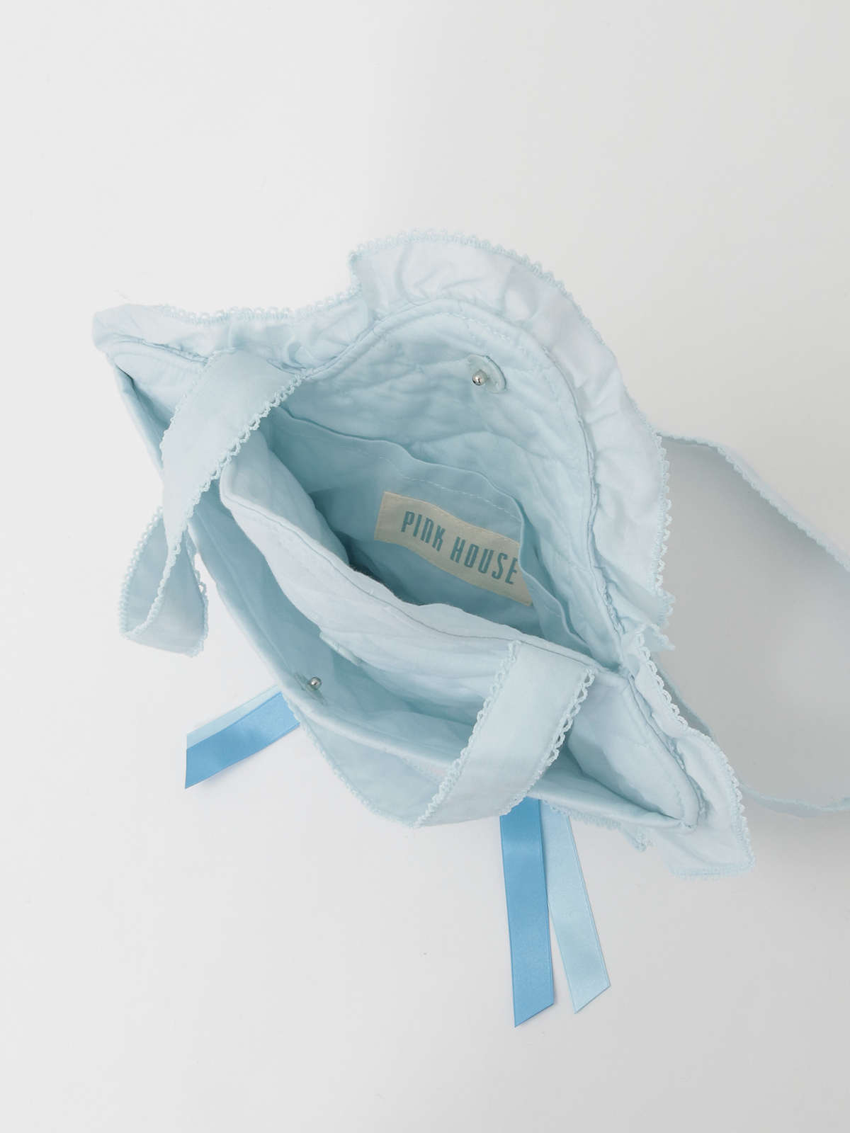 裾まわりにはそれぞれのカラーに合わせた2色のロゴ入りサテンリボンを結んでアクセントに。
