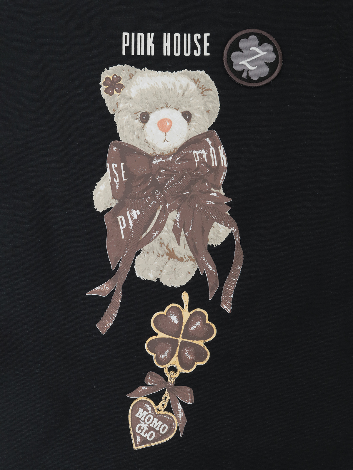 クローバーにメンバーのイニシャルを刺繍したワッペンとPINK HOUSEのロゴプリントがポイントに。