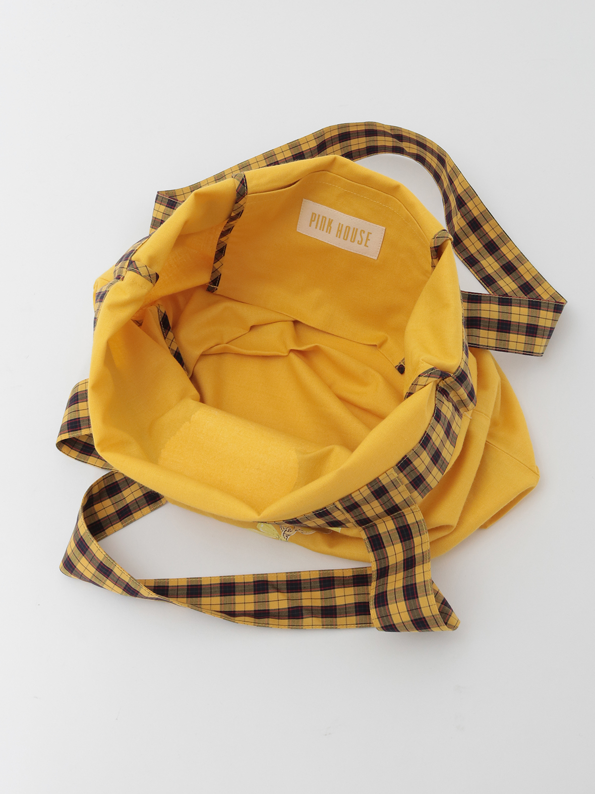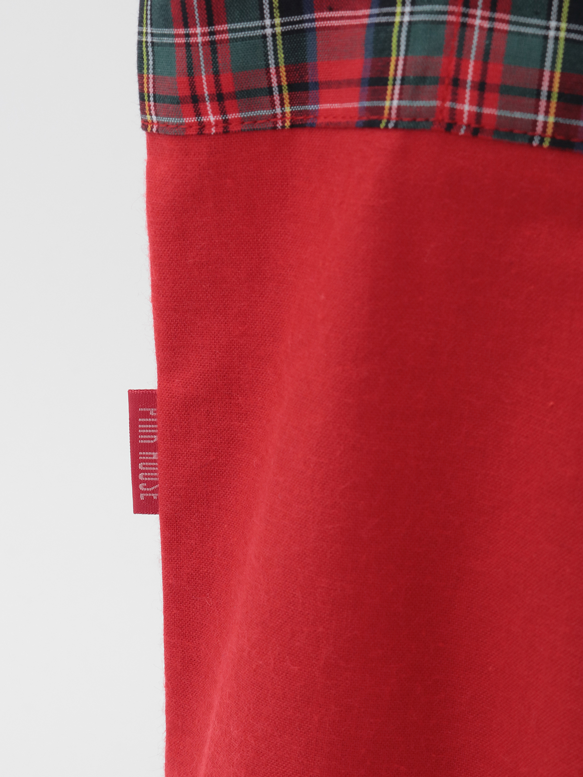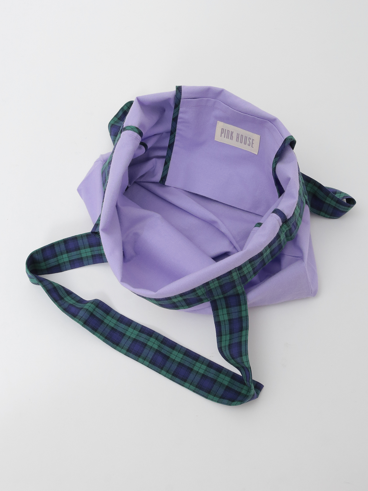 持ち手の部分と入りぐちのところには、タータンチェックのパイピングをあしらってアクセント使いにしています。